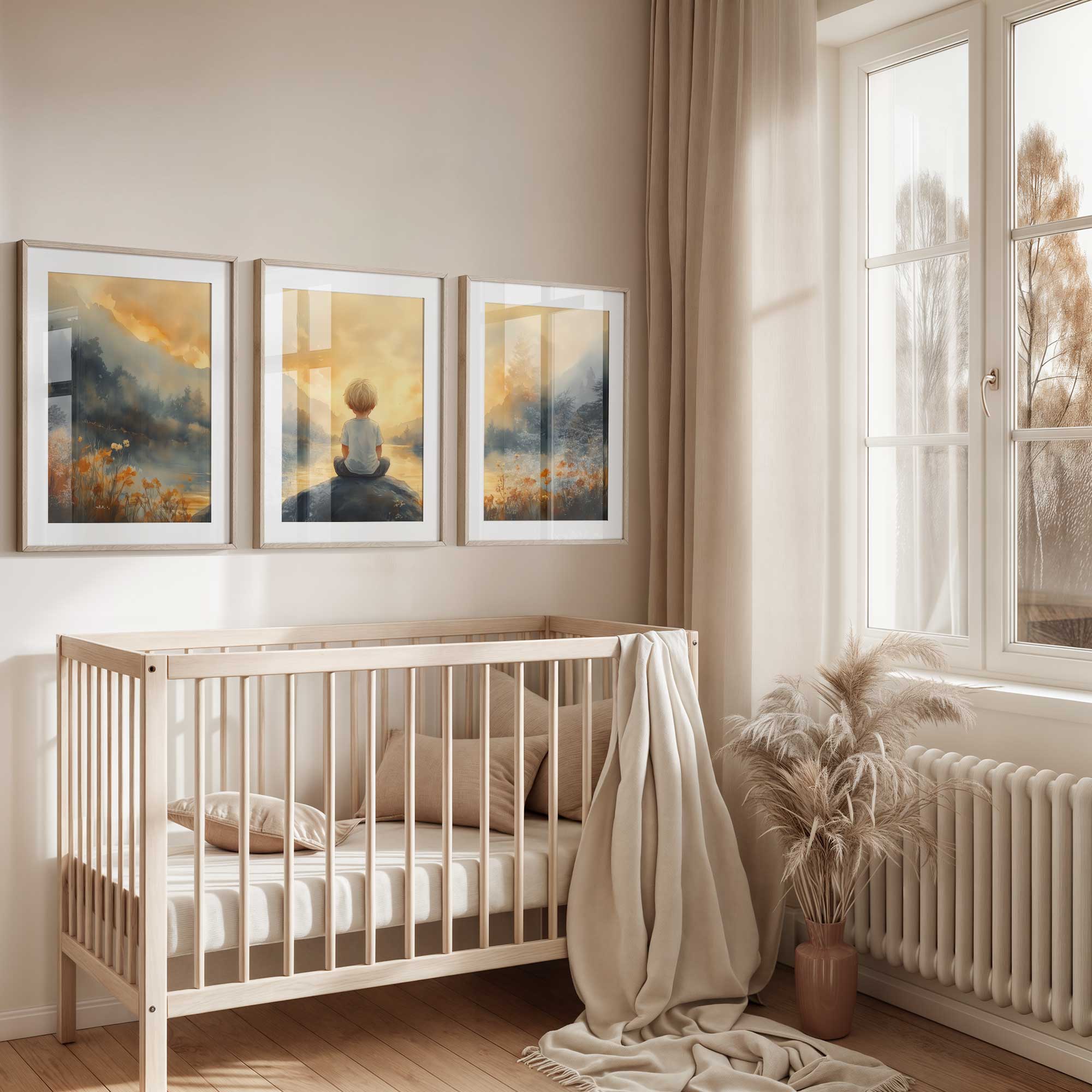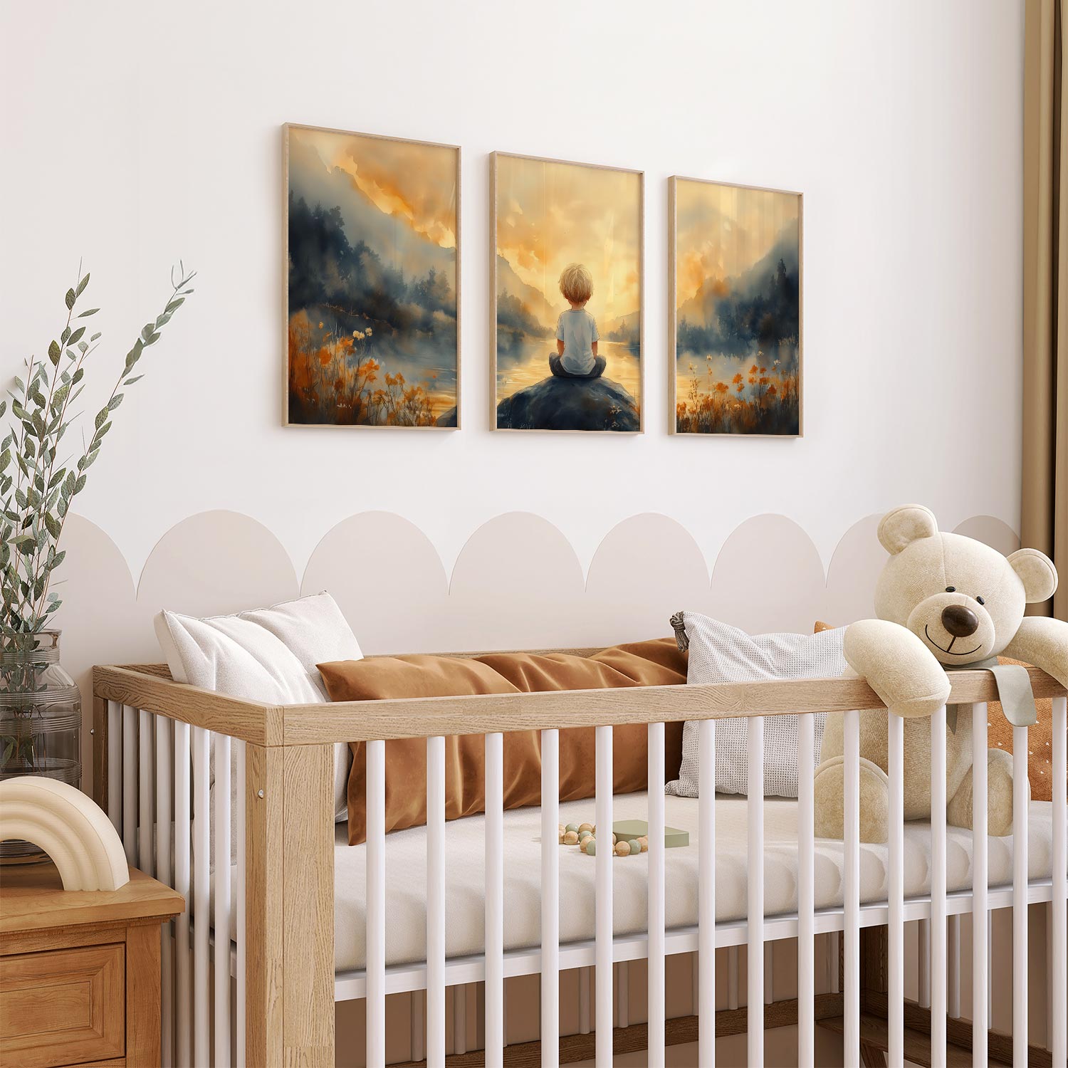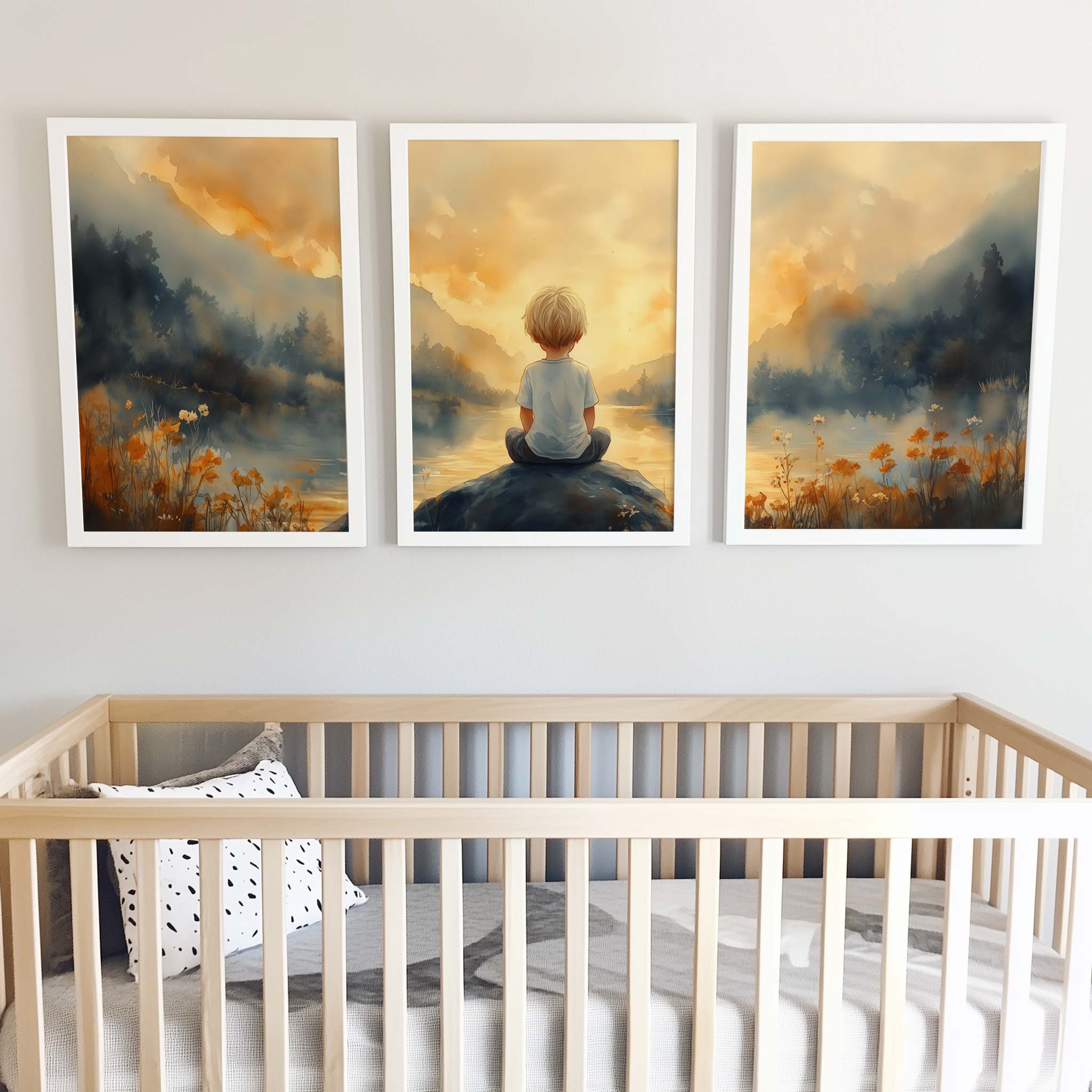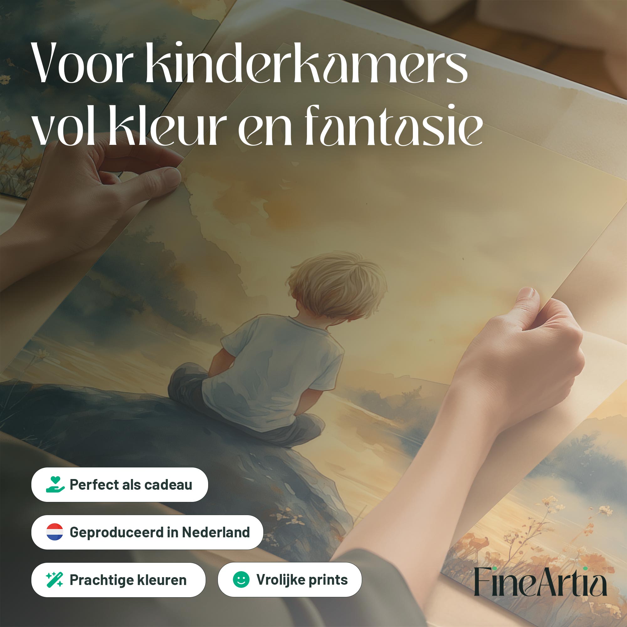 Jongen op rots bij water – warme, speelse sfeer