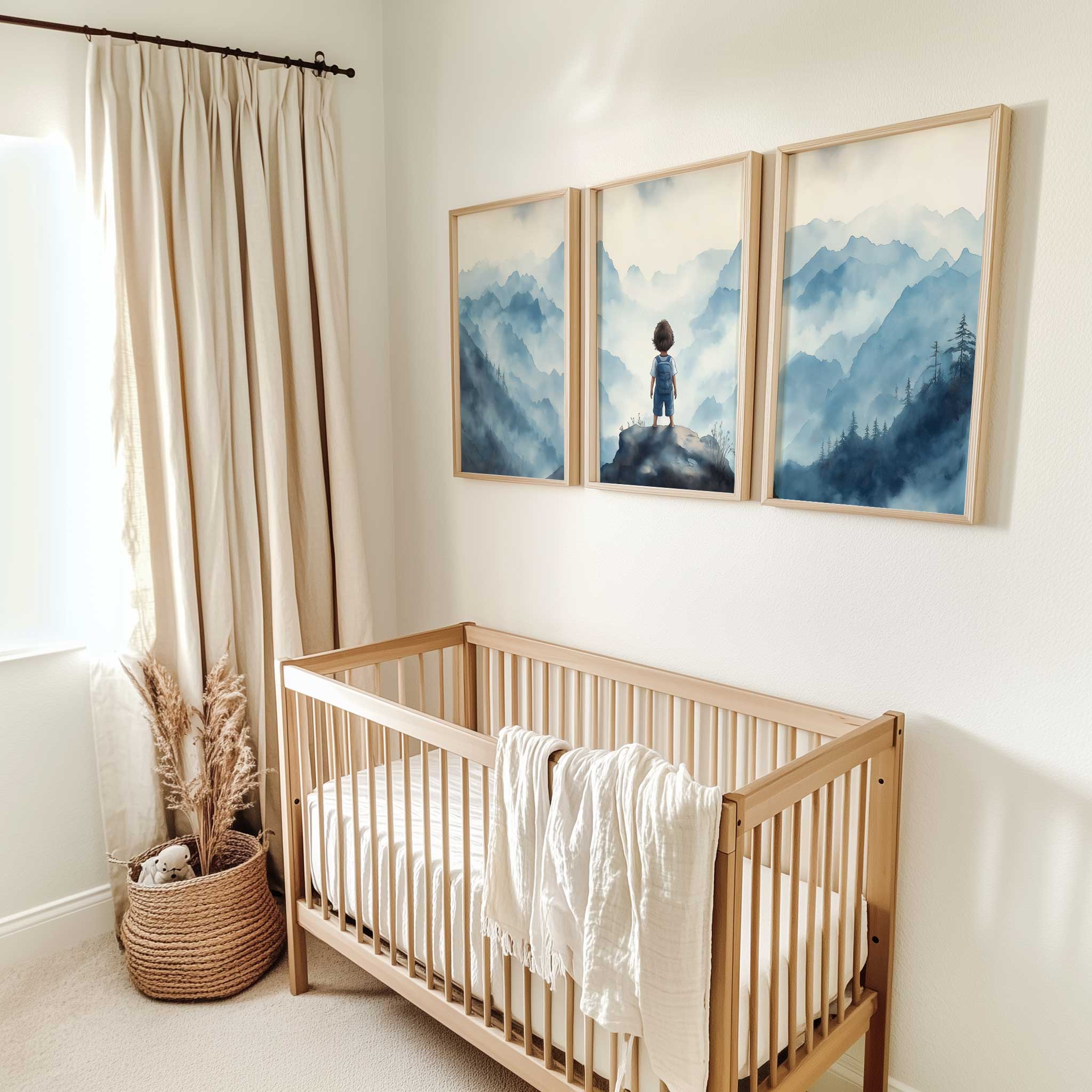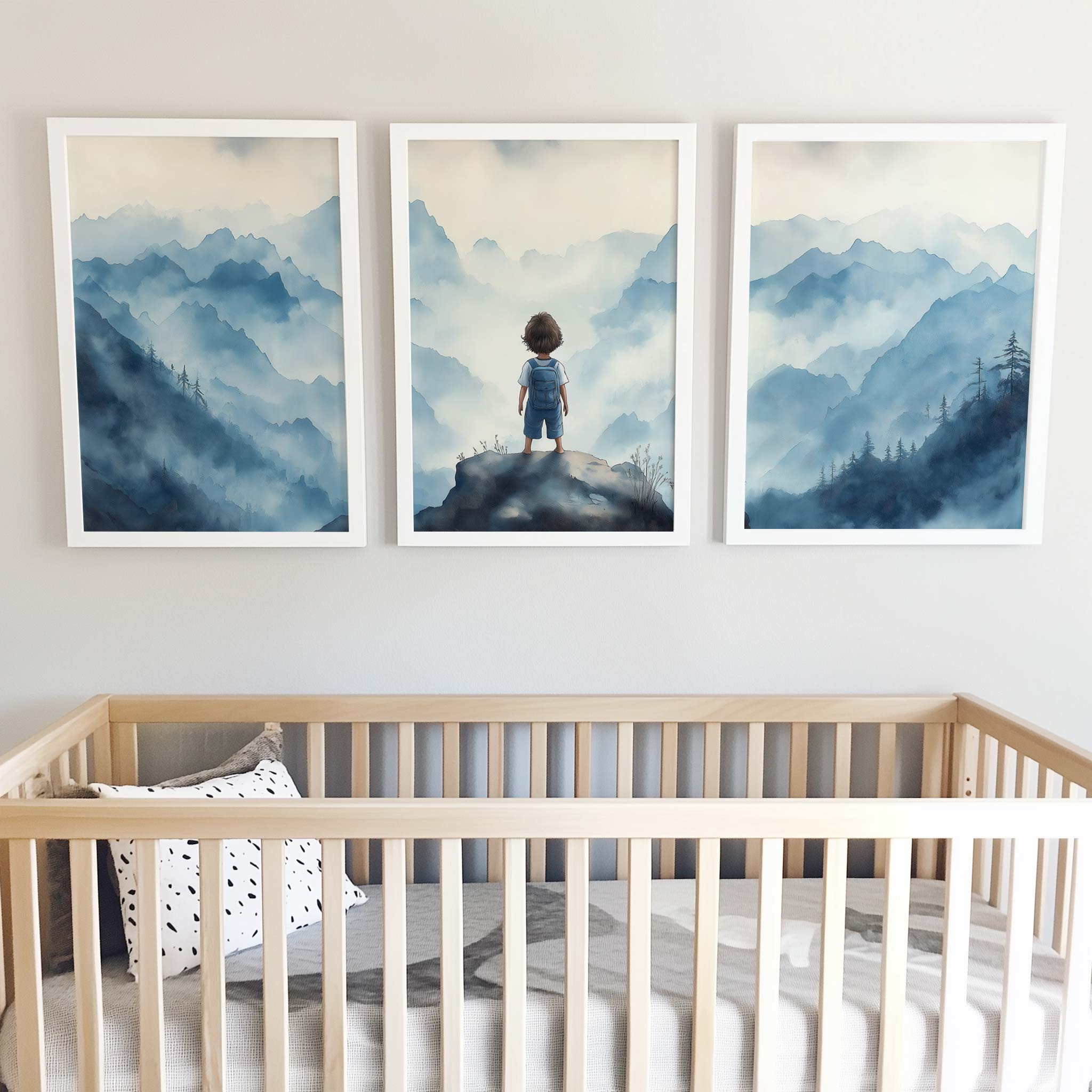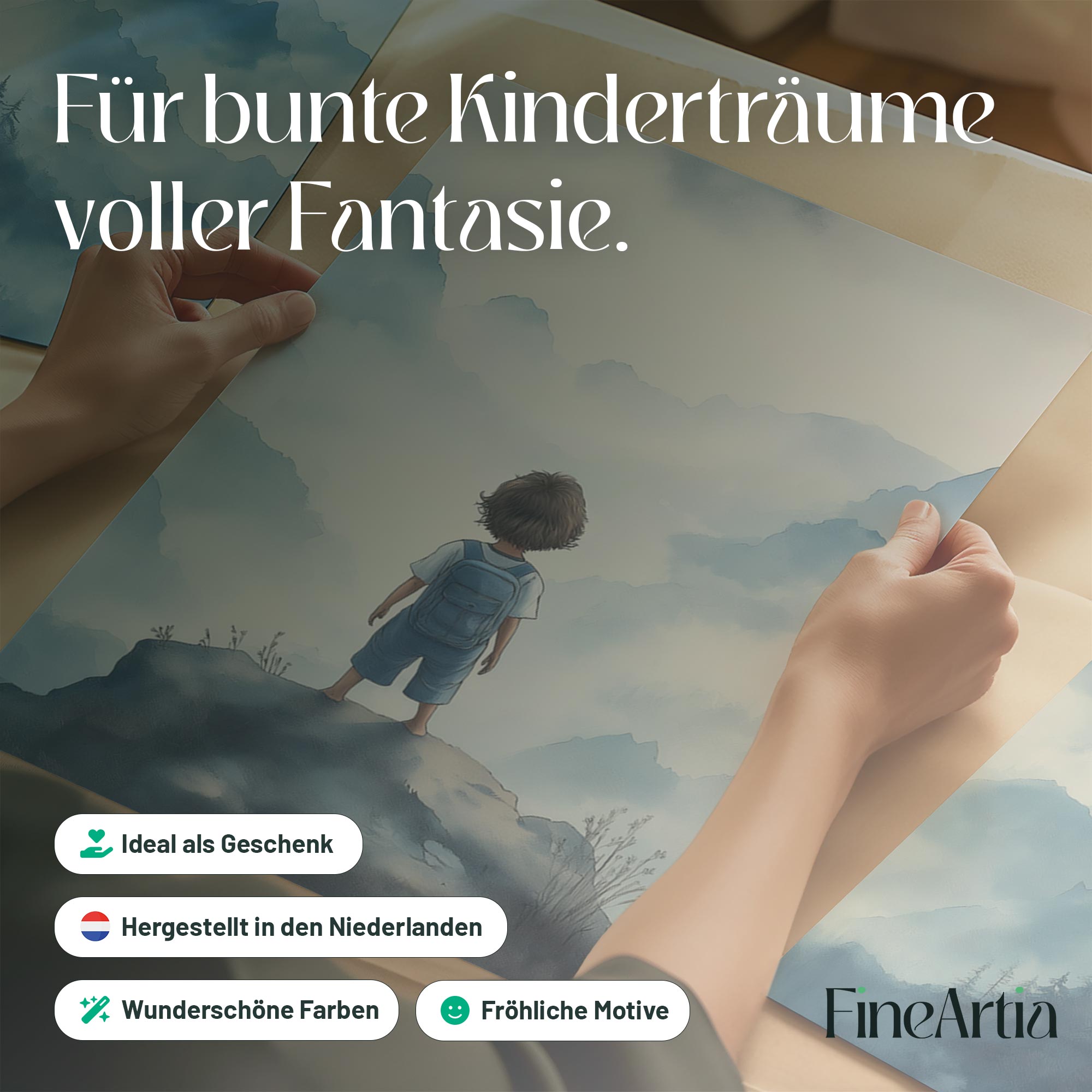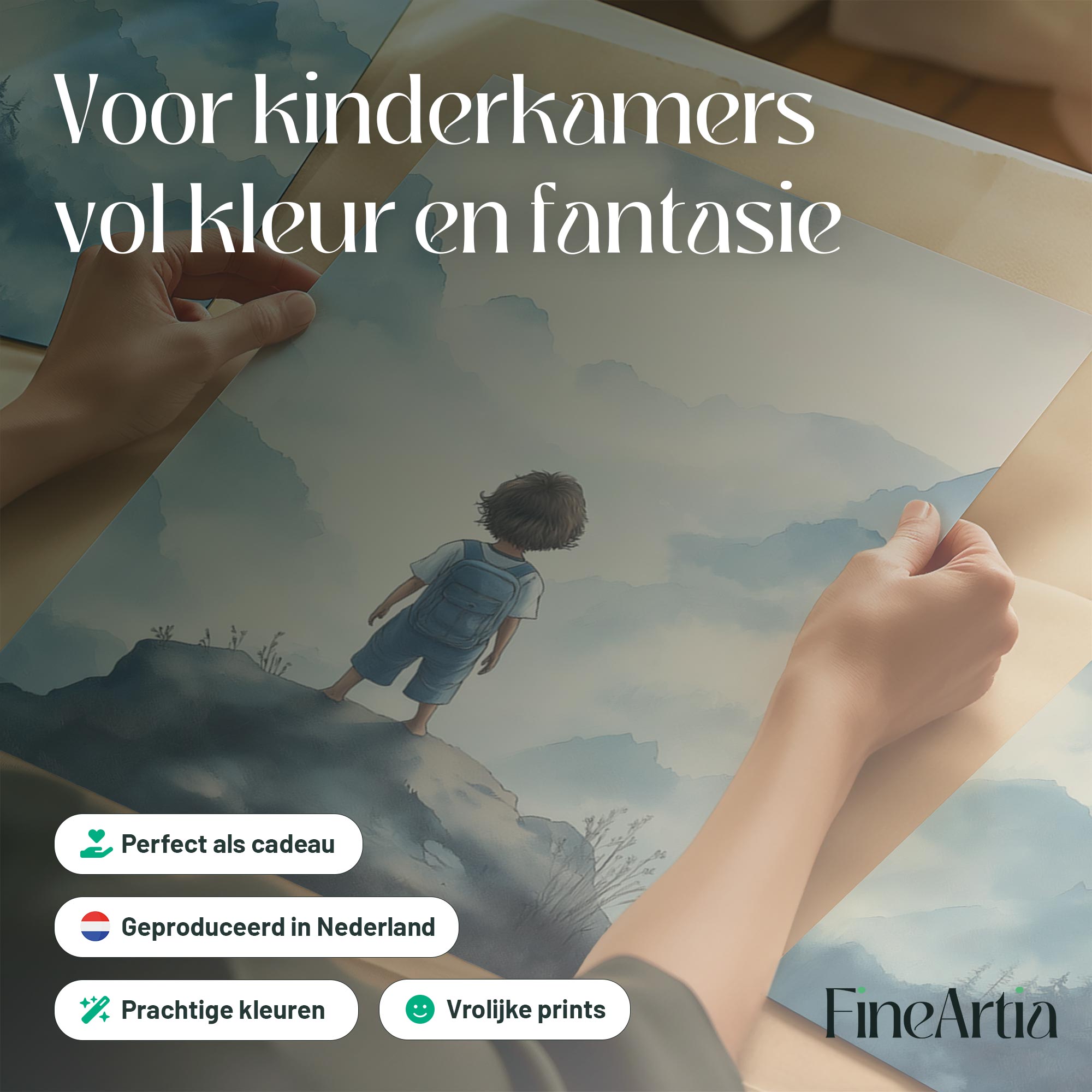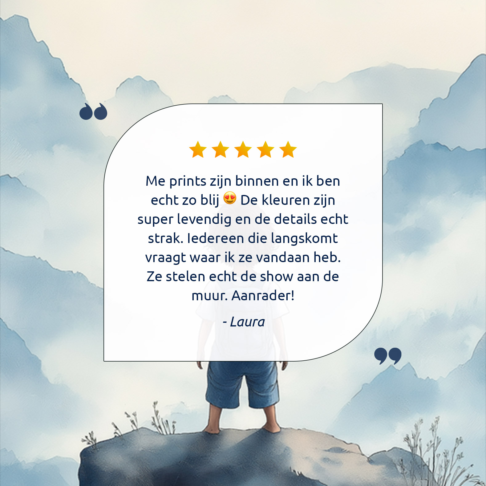 Jongen op rots – Dromerig berglandschap in waterverf