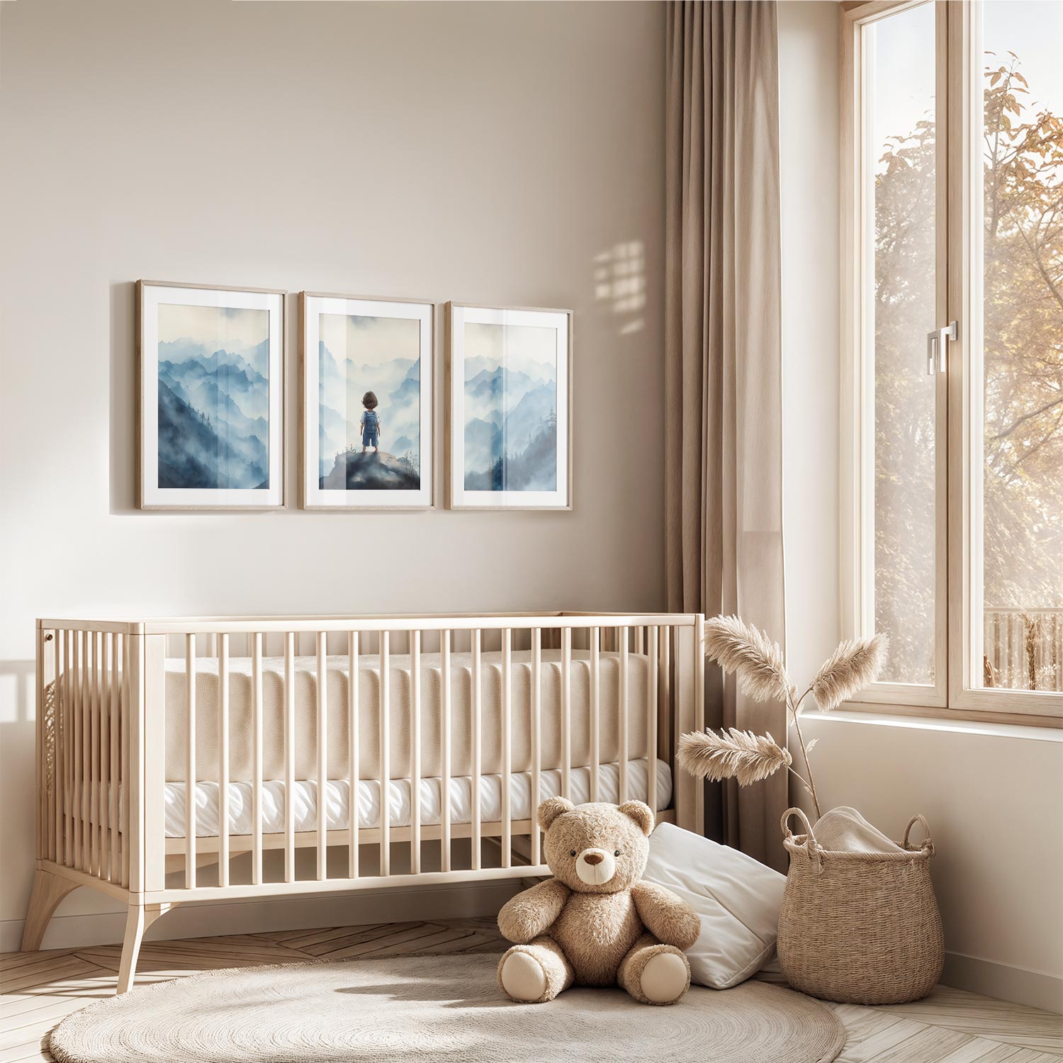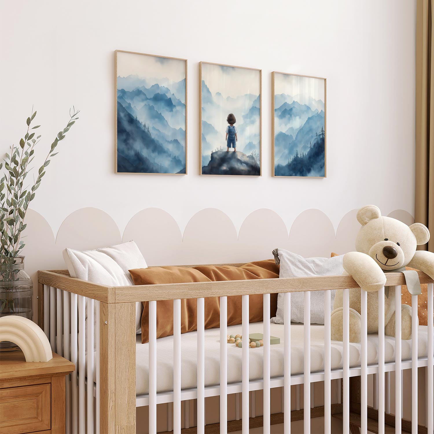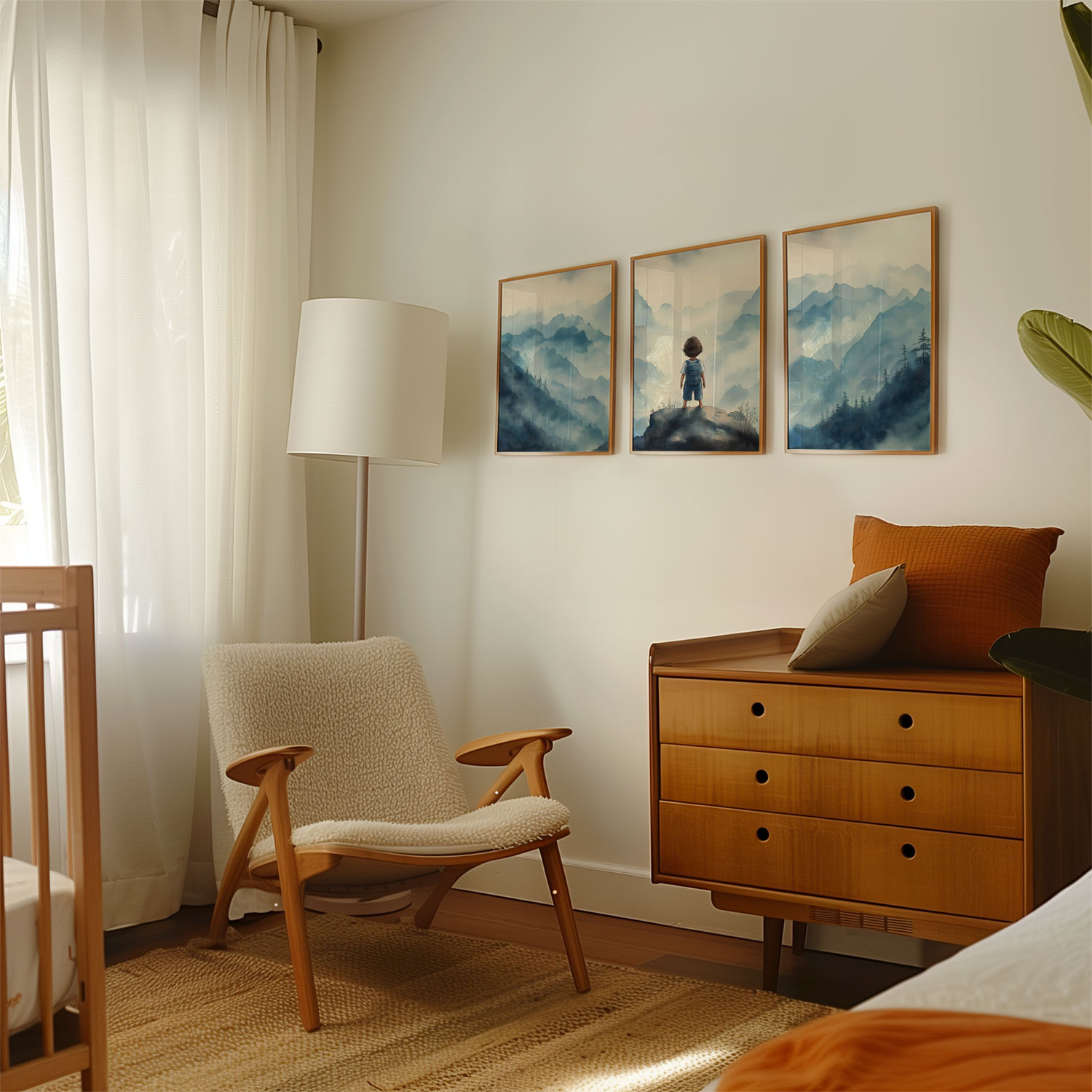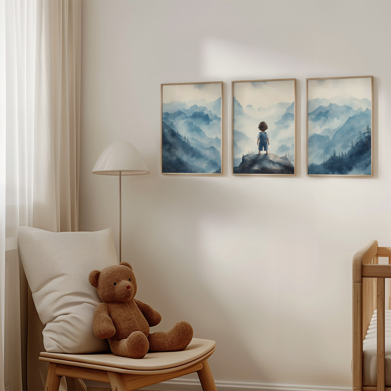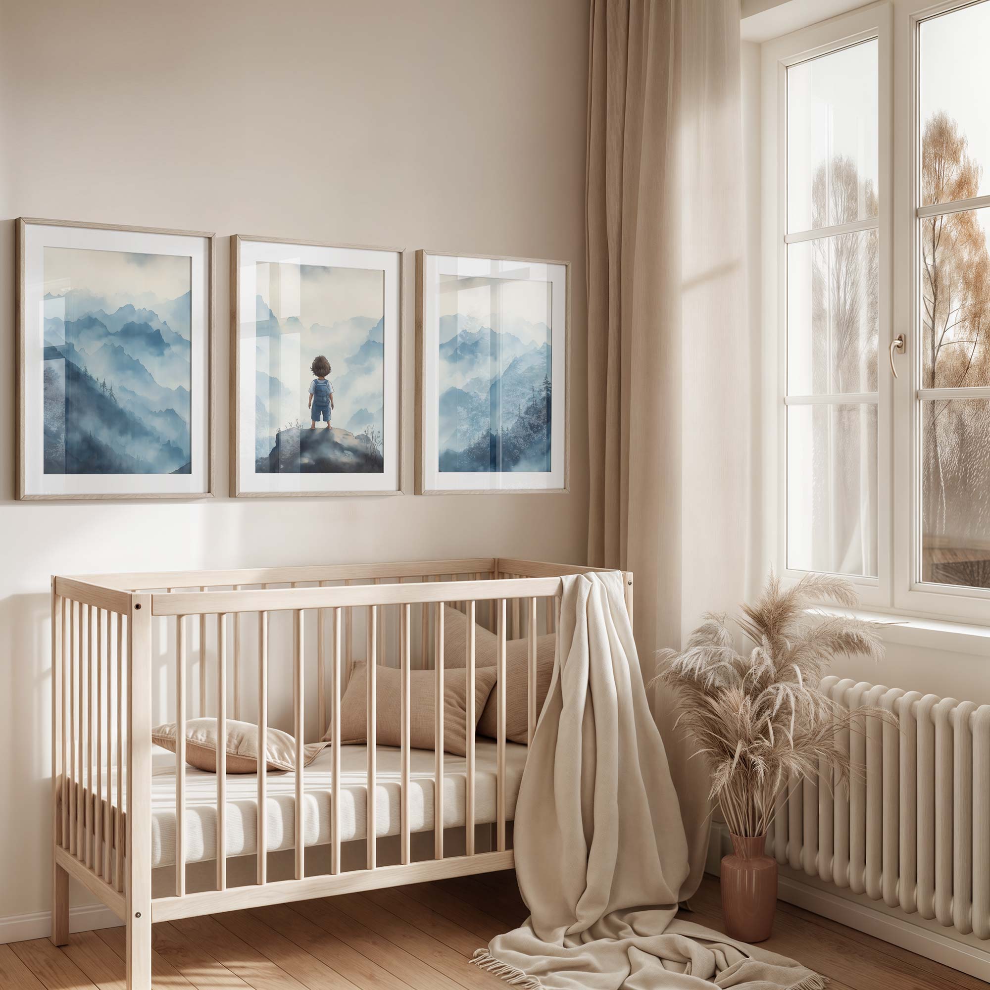 Jongen op rots – Dromerig berglandschap in waterverf