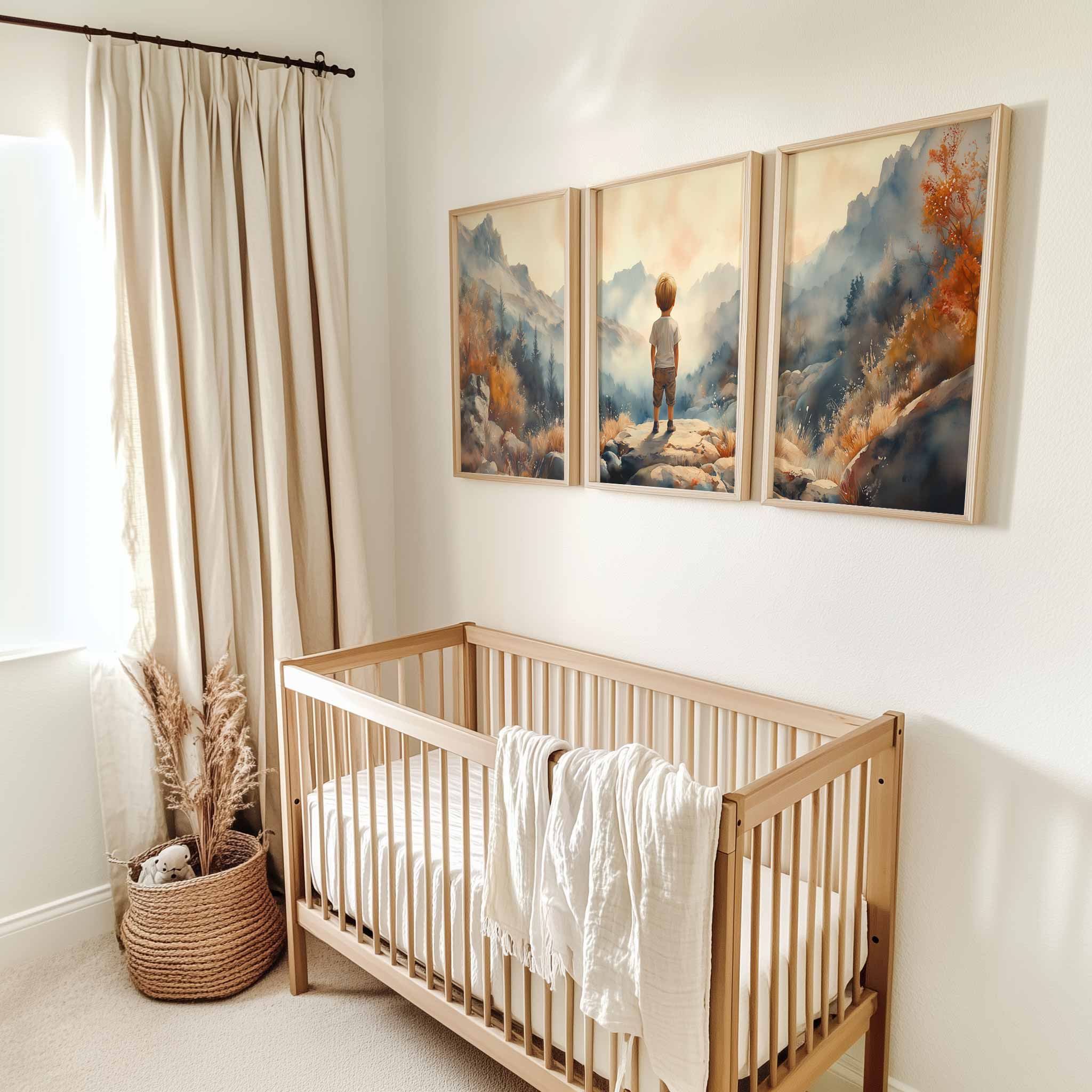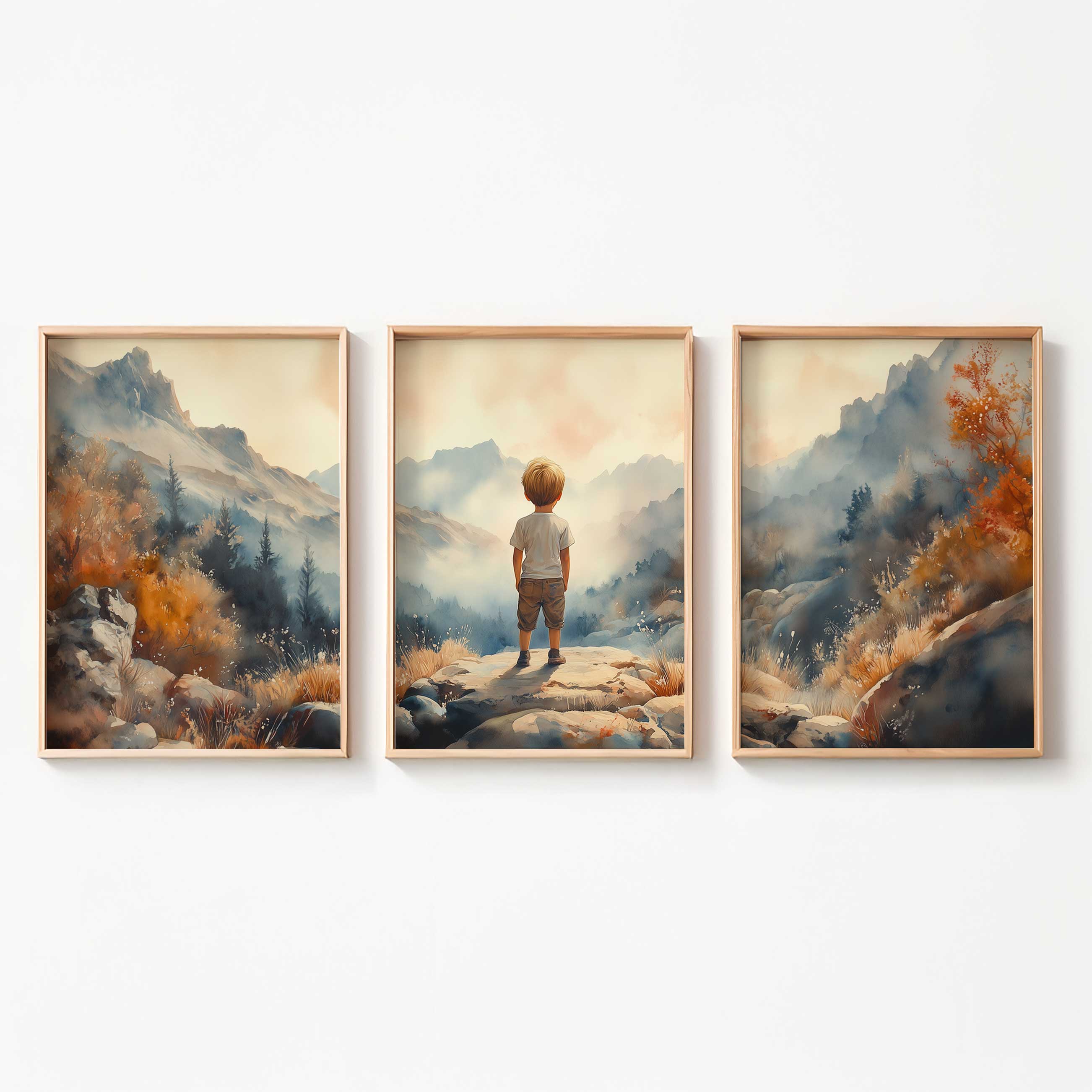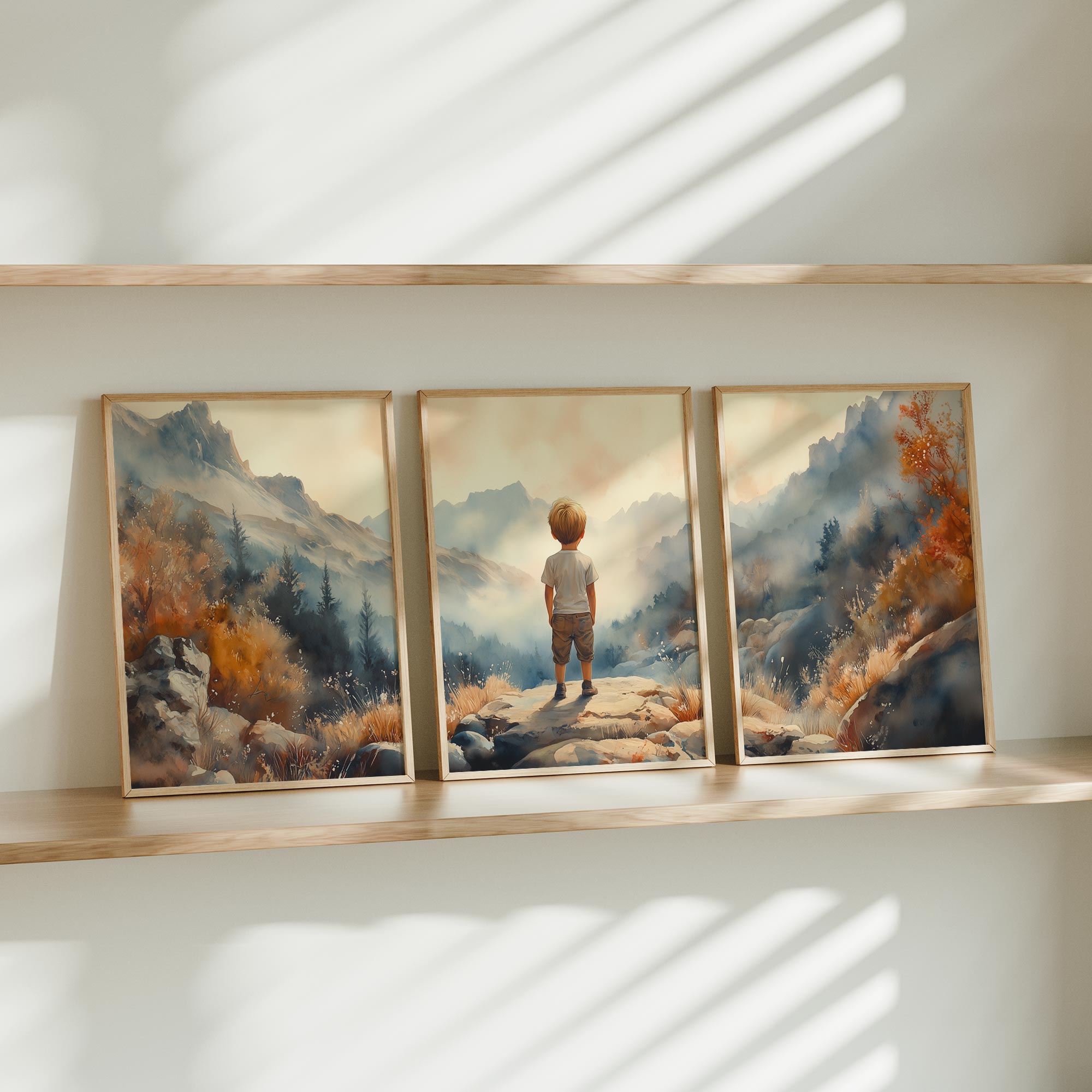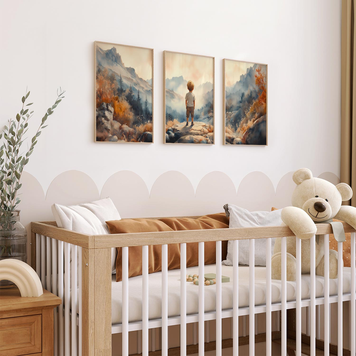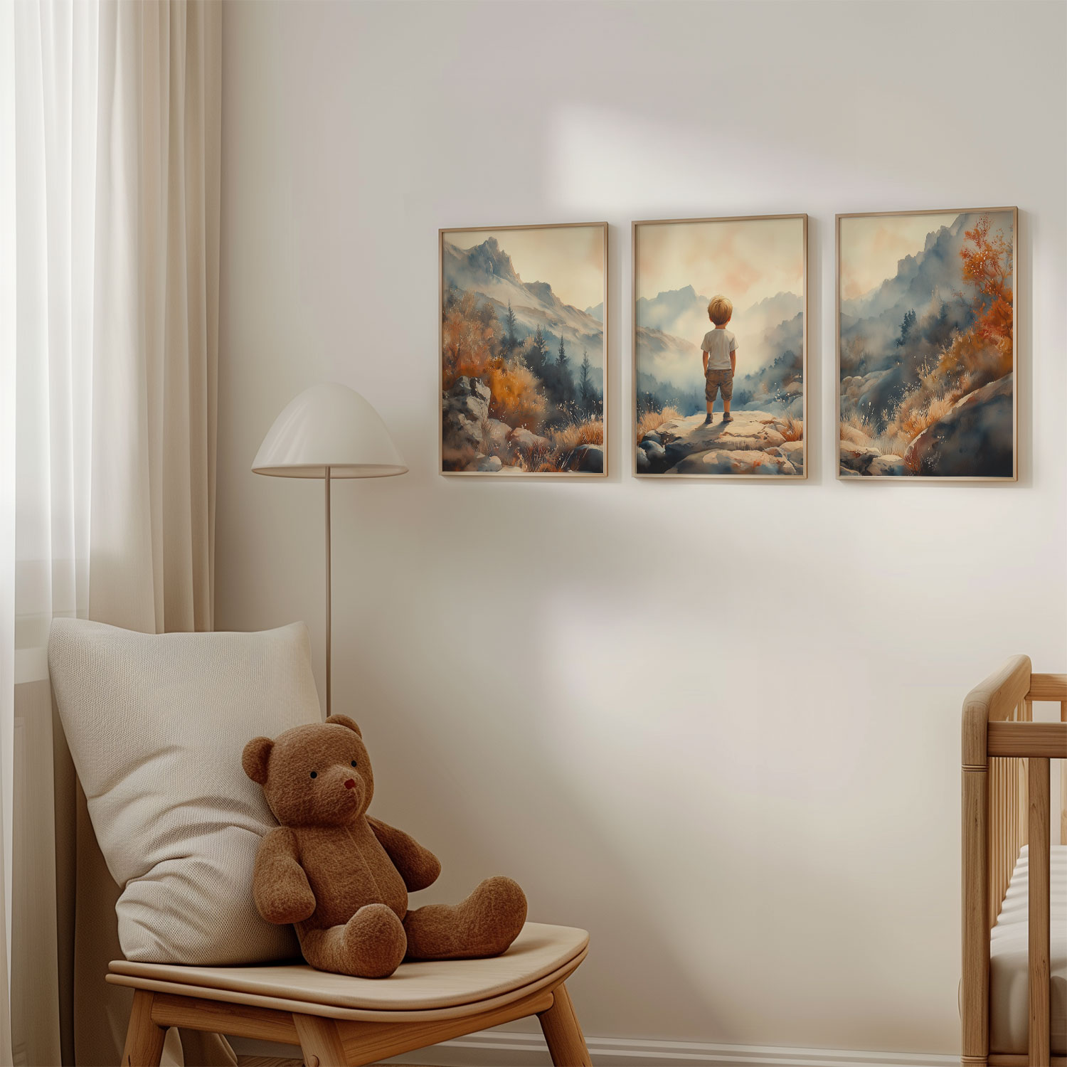 Jongen op rots – Dromerig berglandschap voor kinderkamer