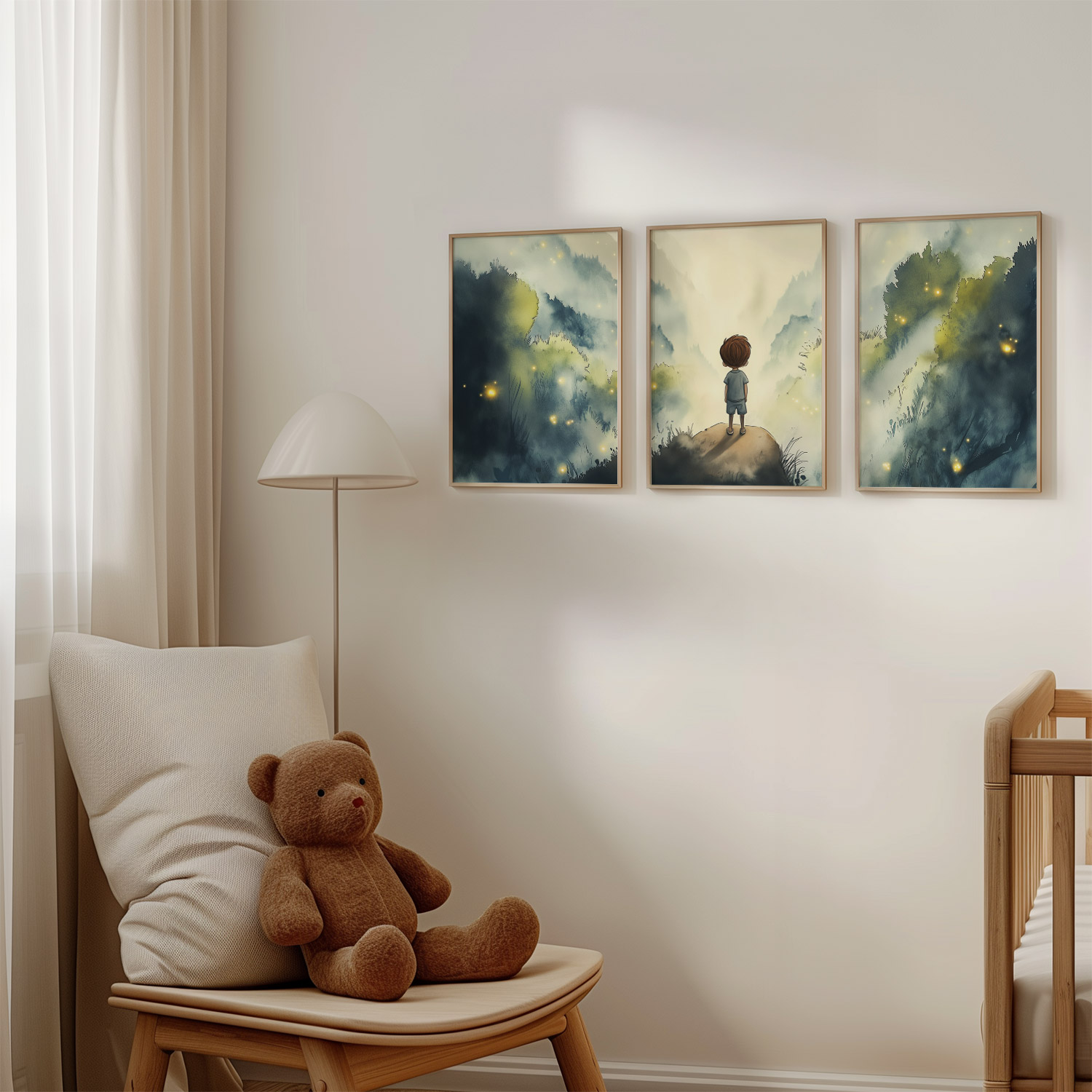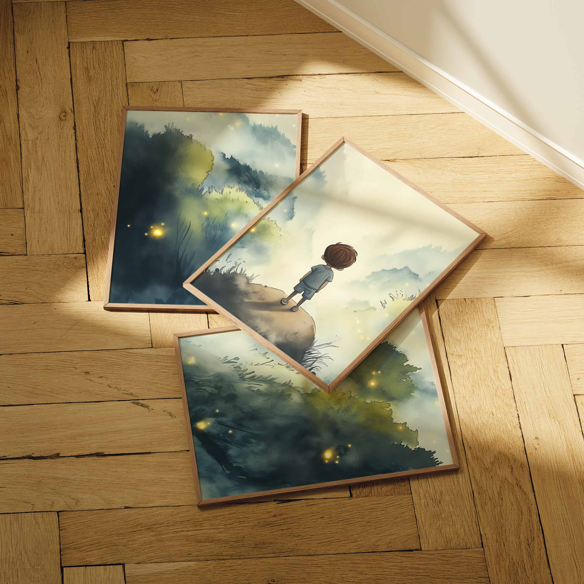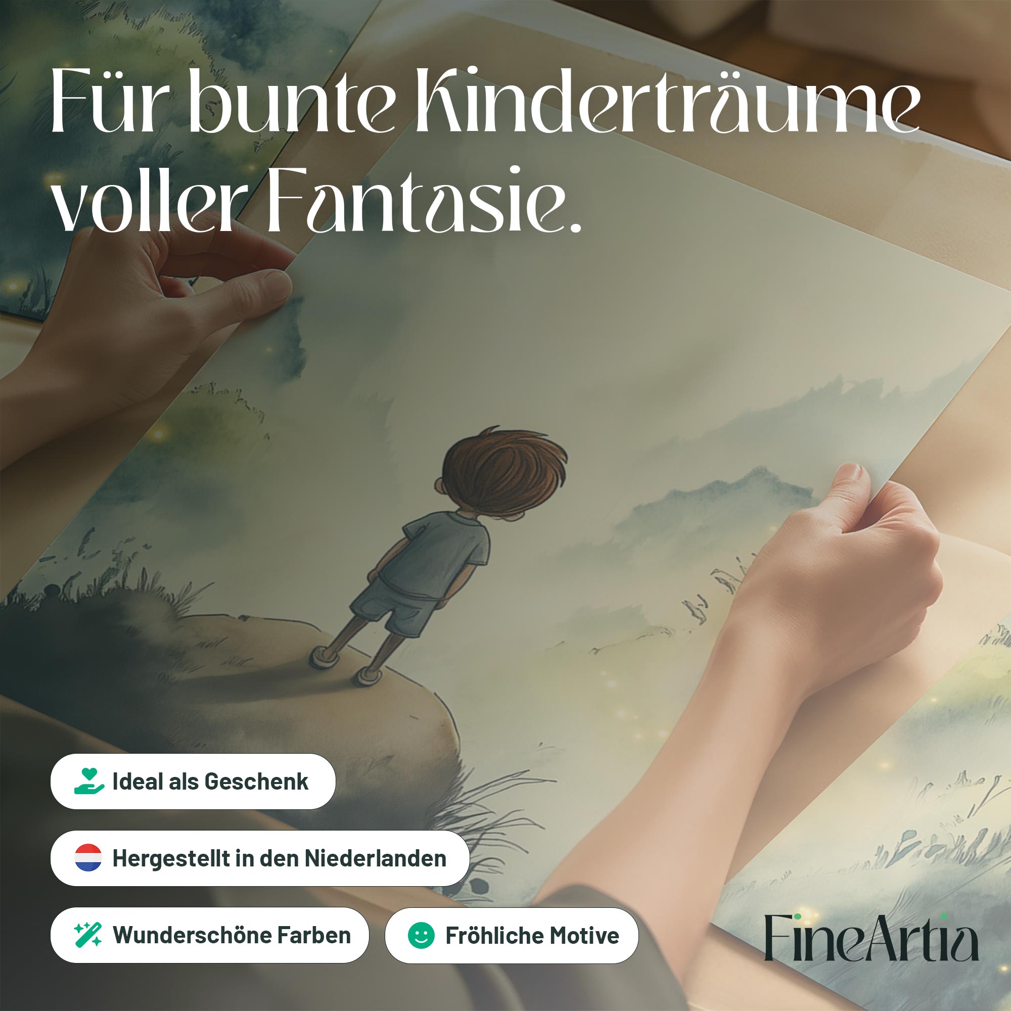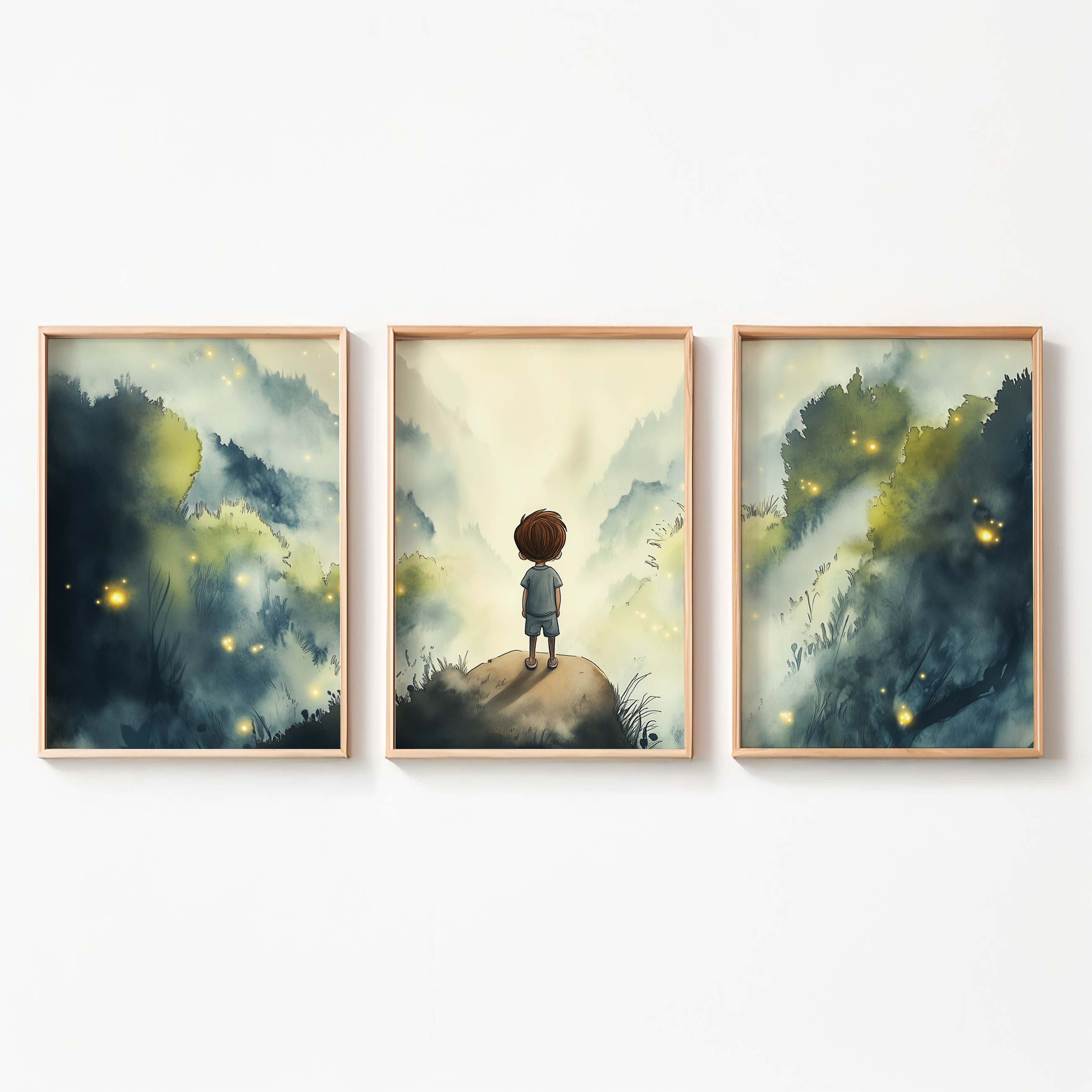 Jongen op rots in betoverend bos – Droomachtig wanddecoratie