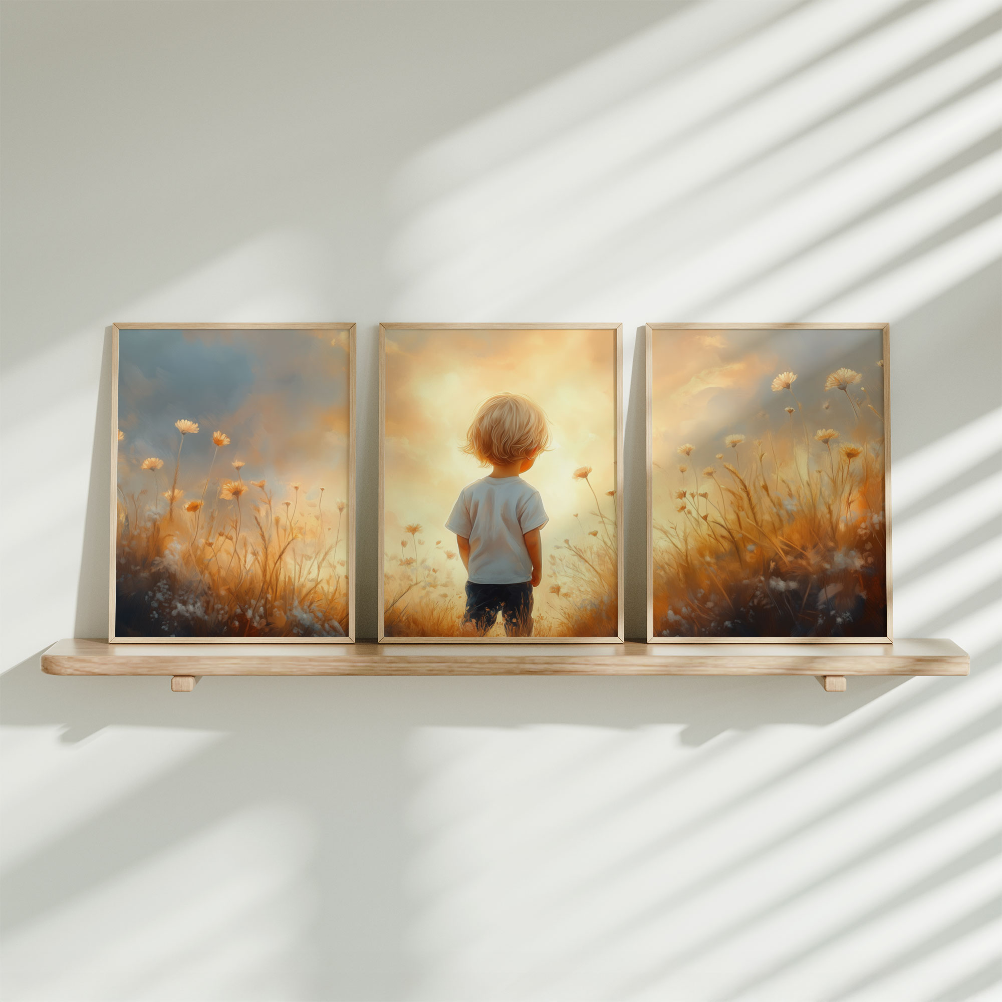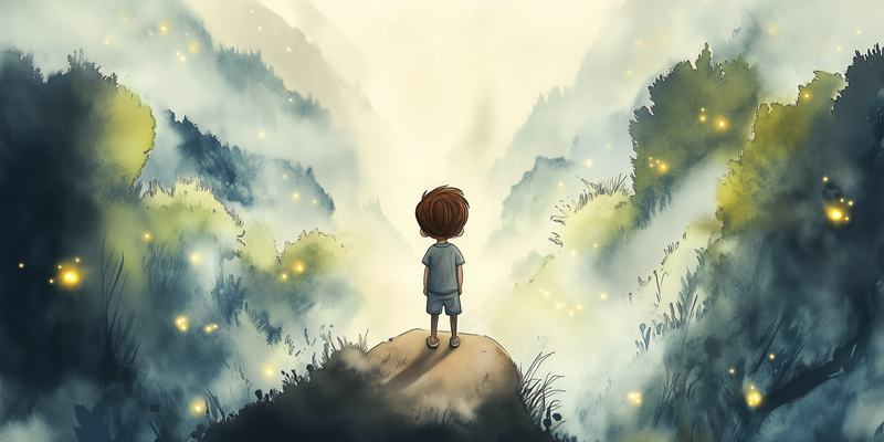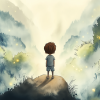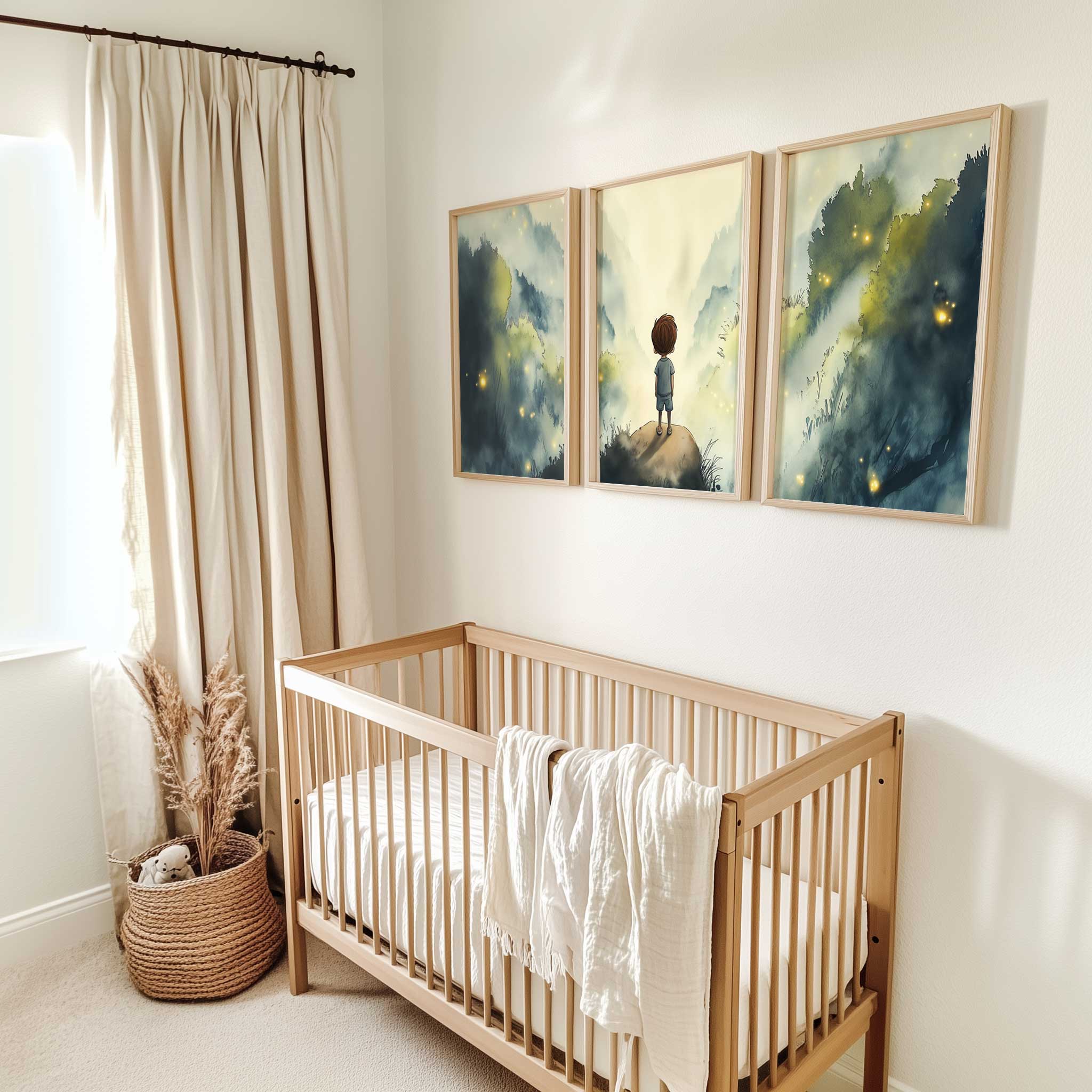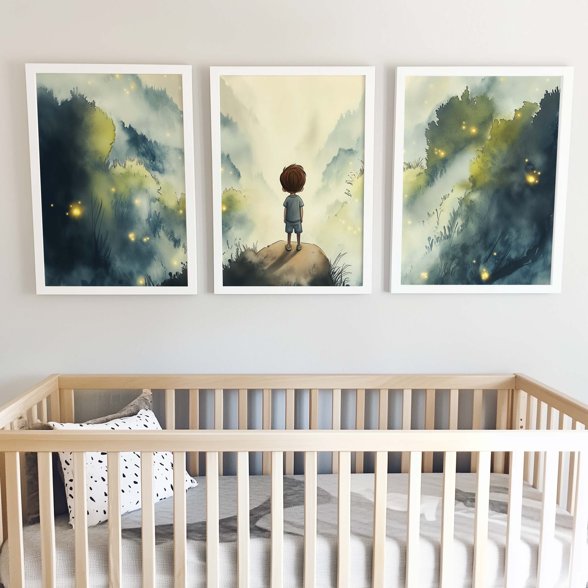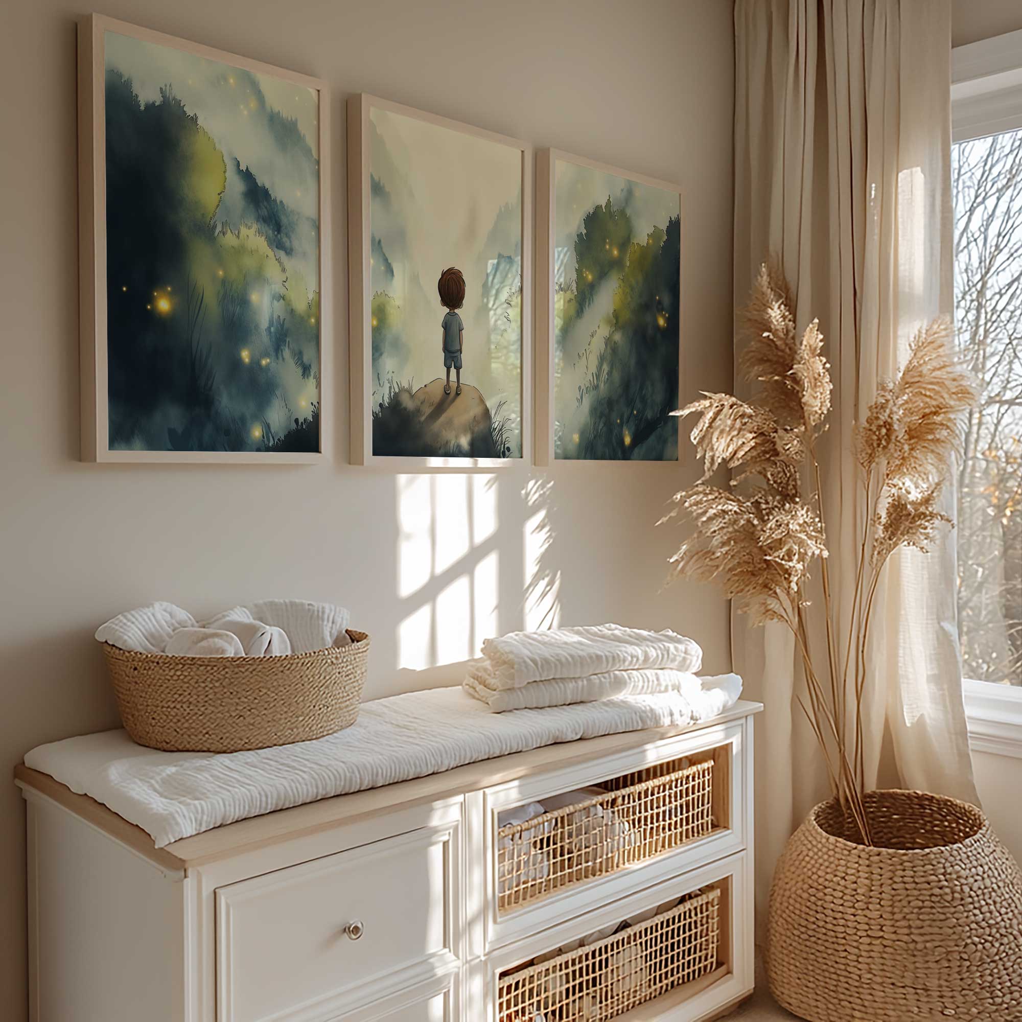 Jongen op rots in betoverend bos – Droomachtig wanddecoratie