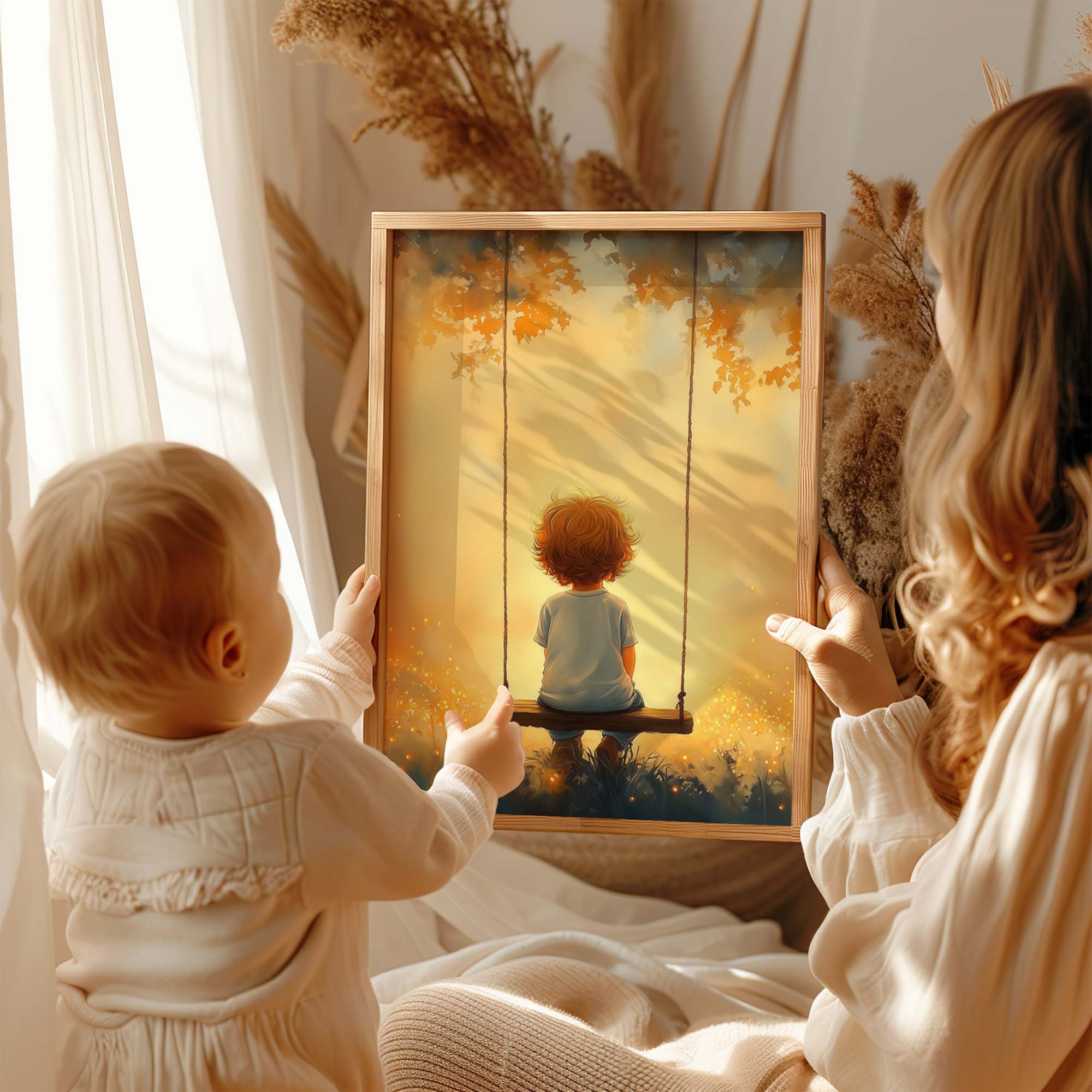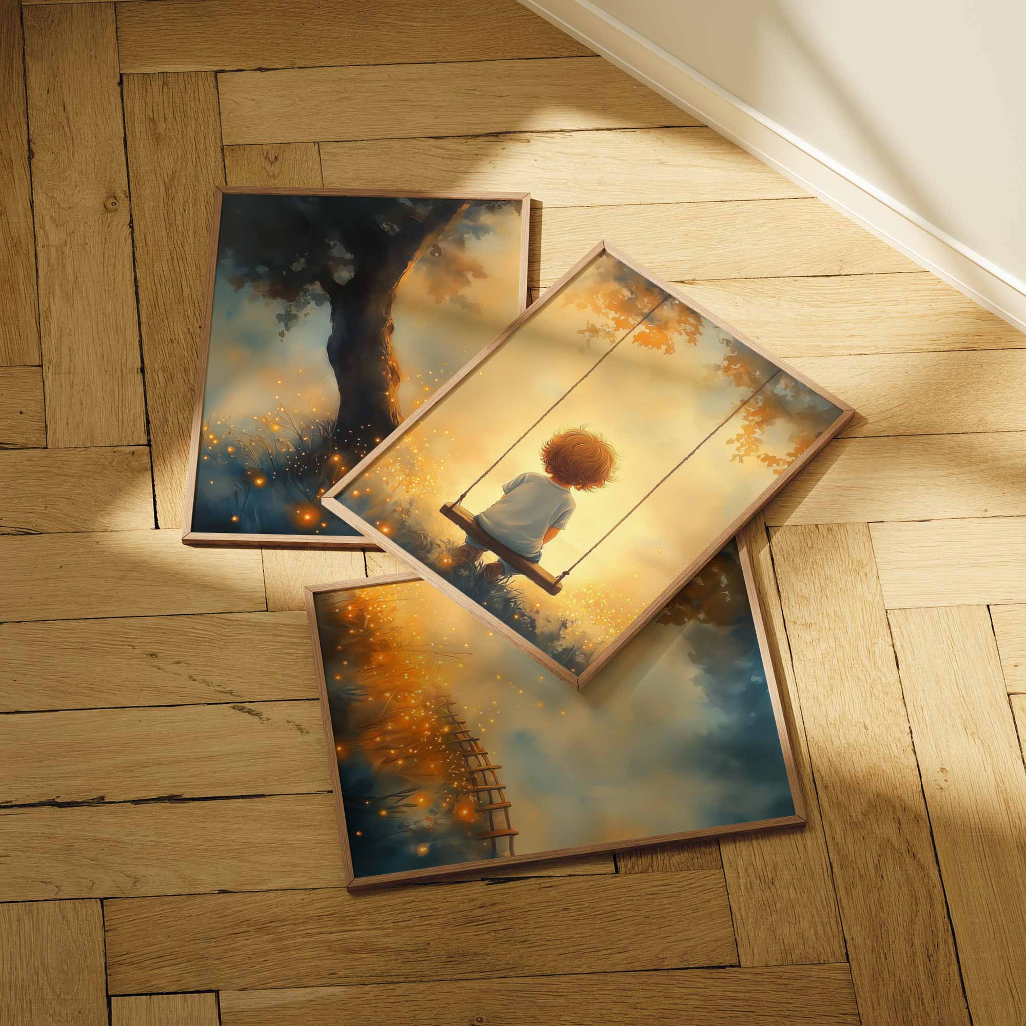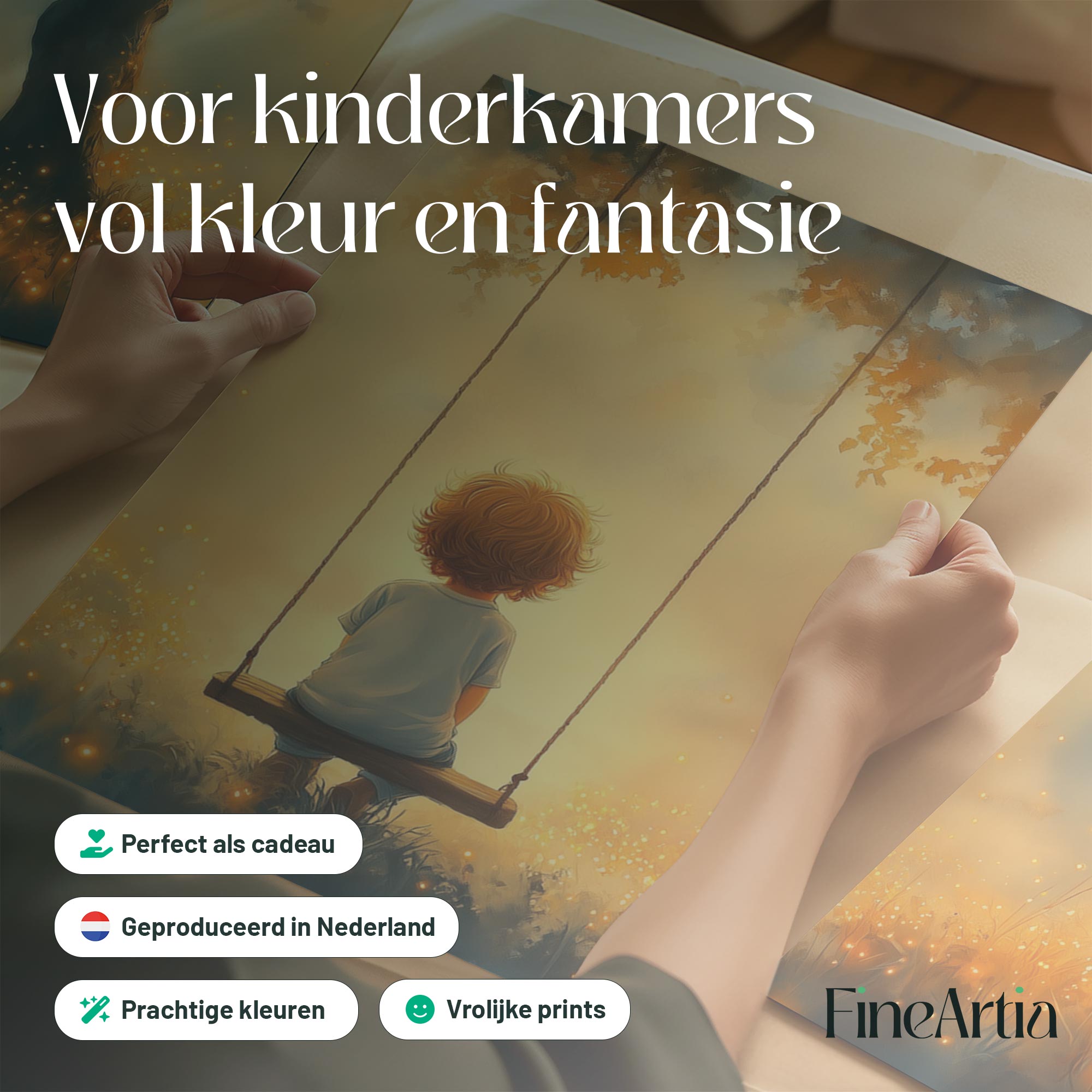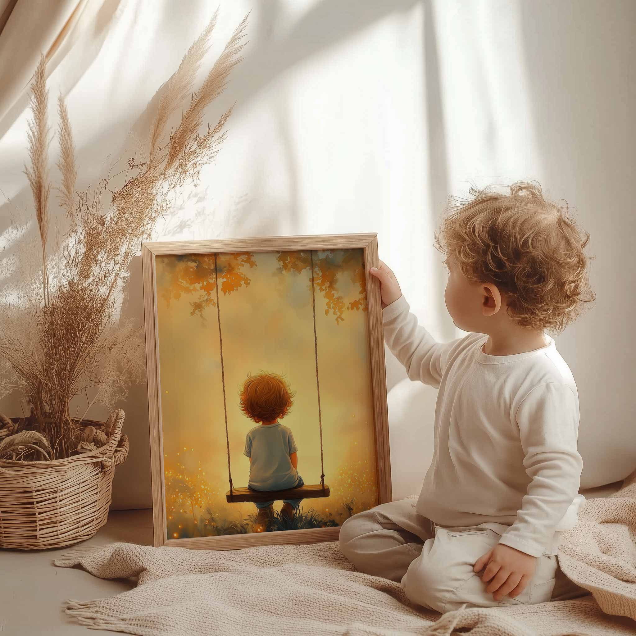 Jongen op Schommel in Betoverend Landschap