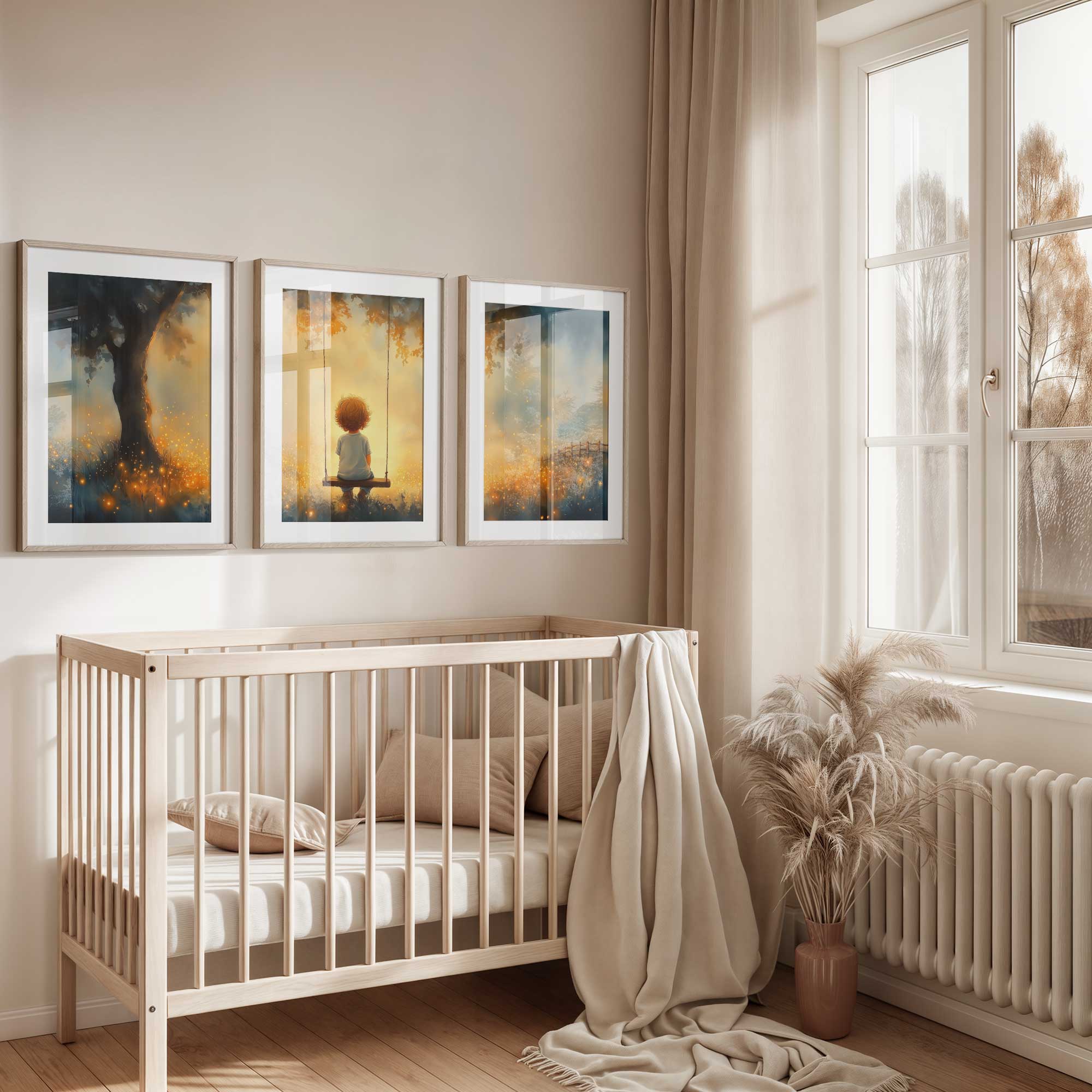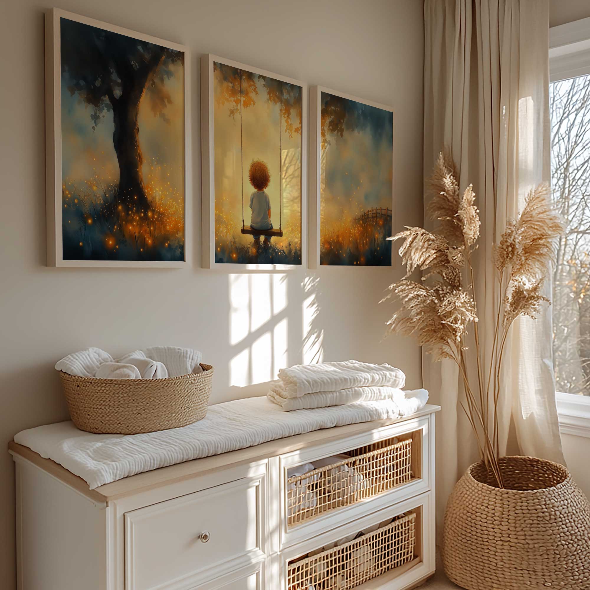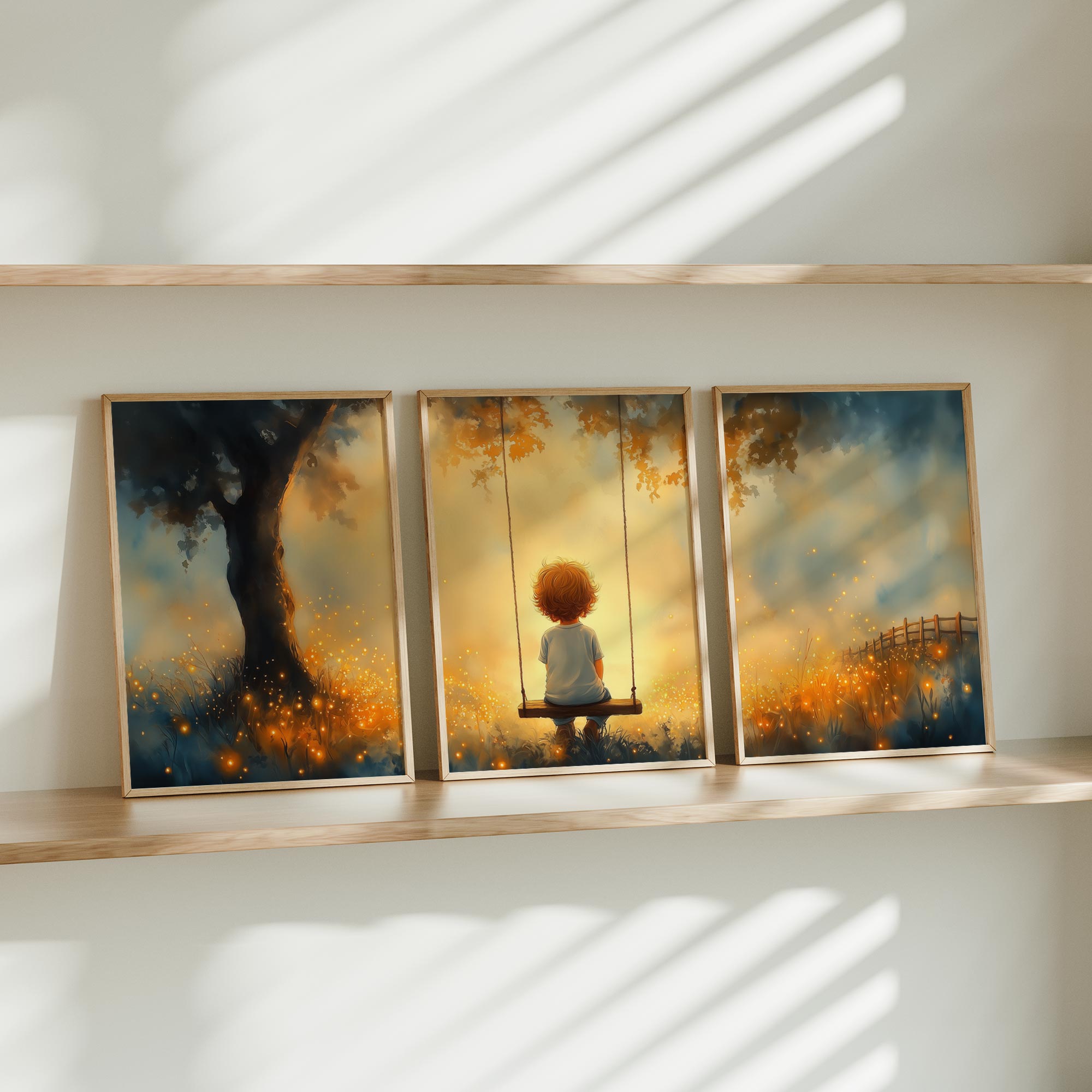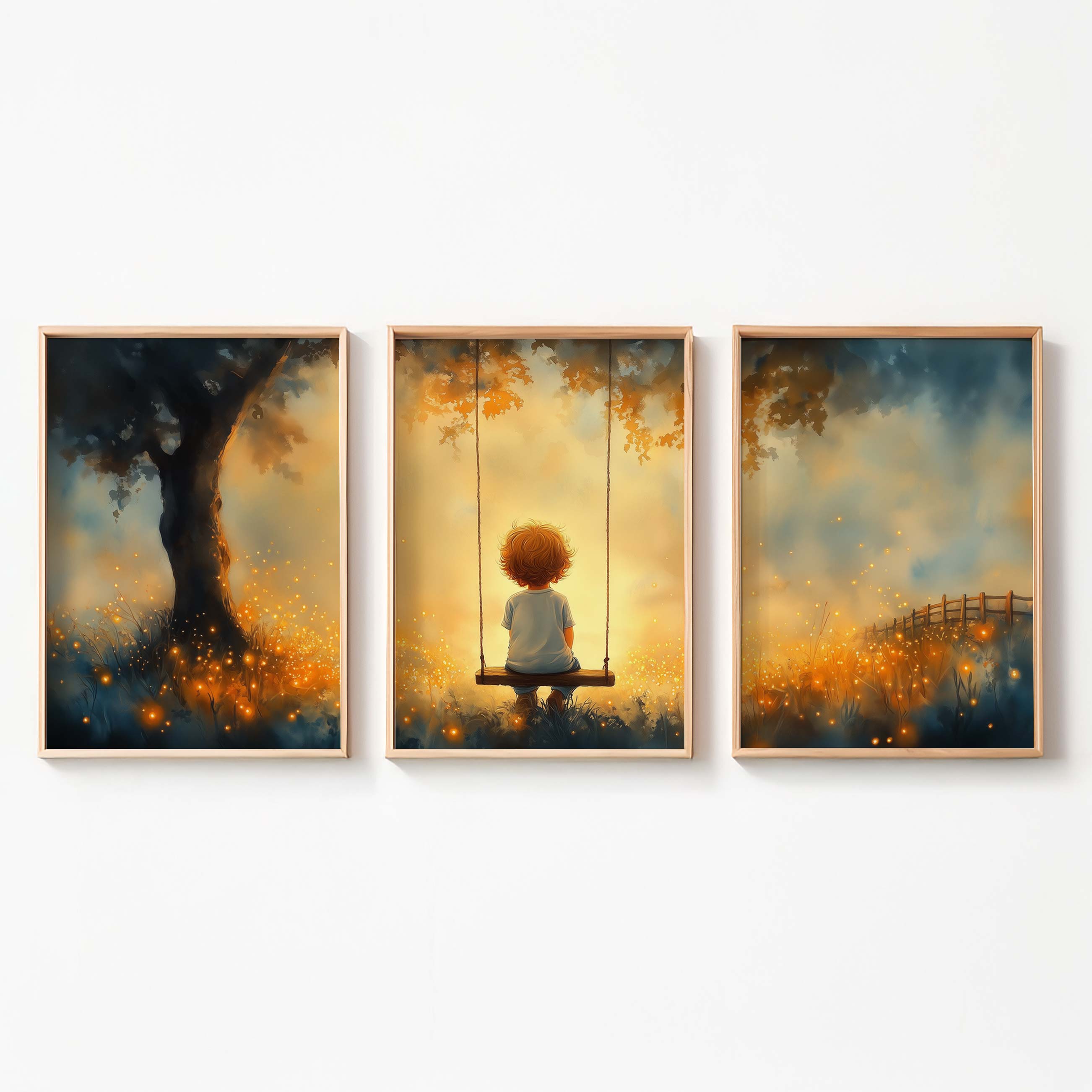 Jongen op Schommel in Betoverend Landschap