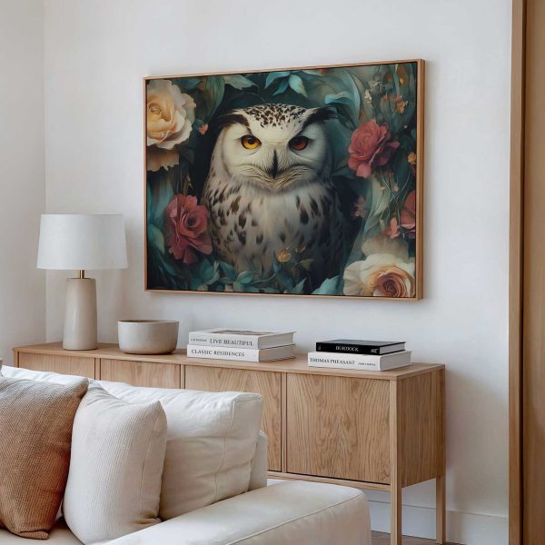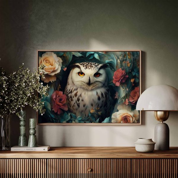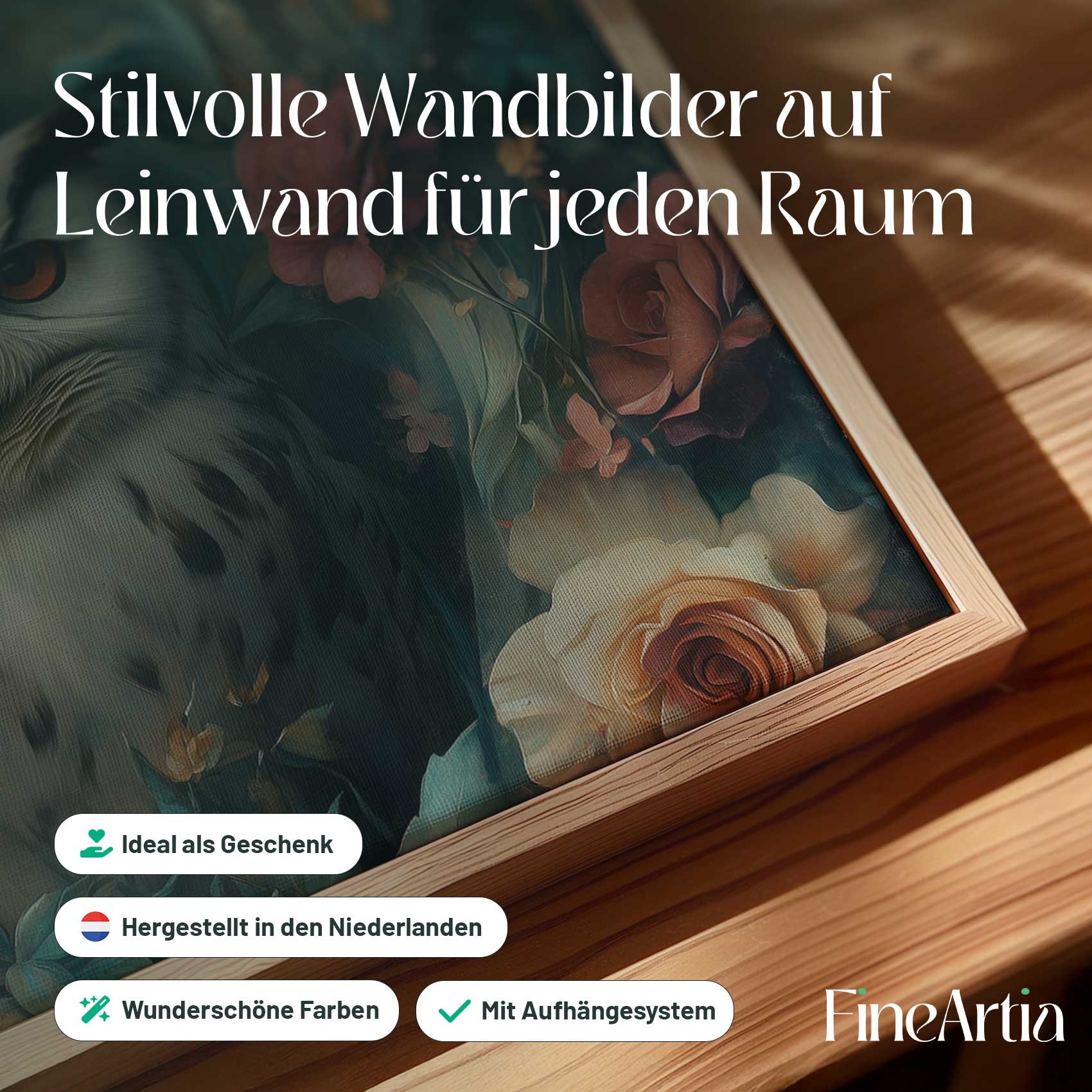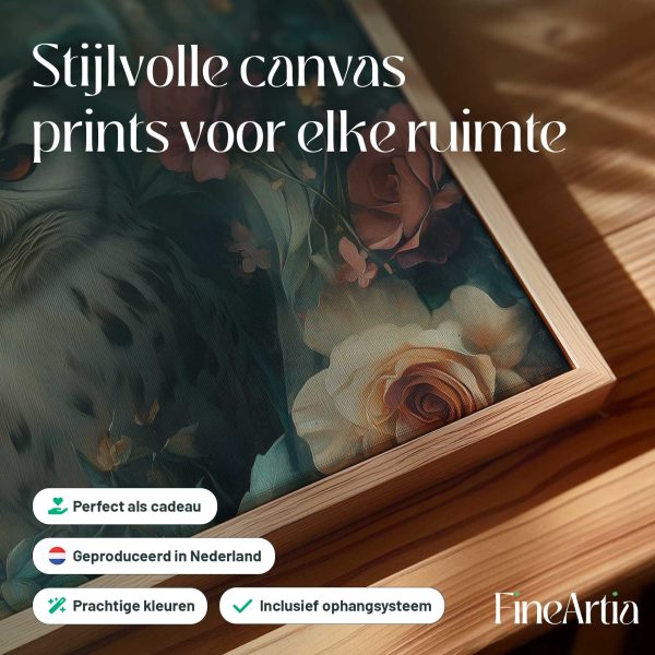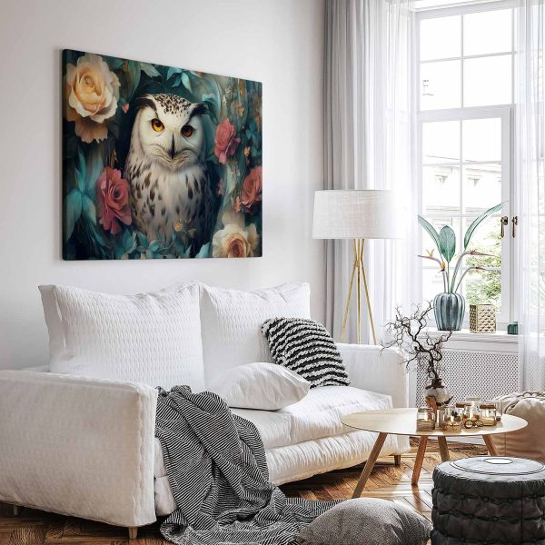 Terug naar collectie Canvas Kleurrijke uil tussen bloemen
