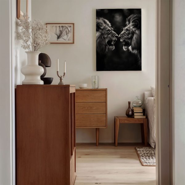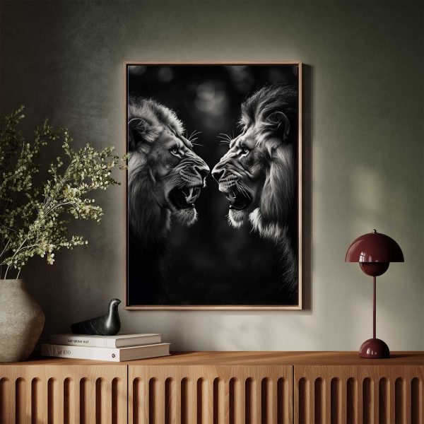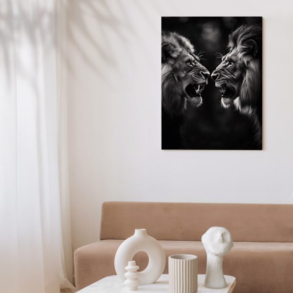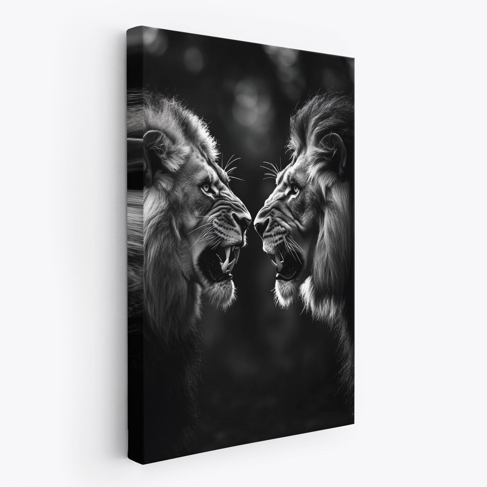 Krachtige Leeuwenconfrontatie Zwart-Wit