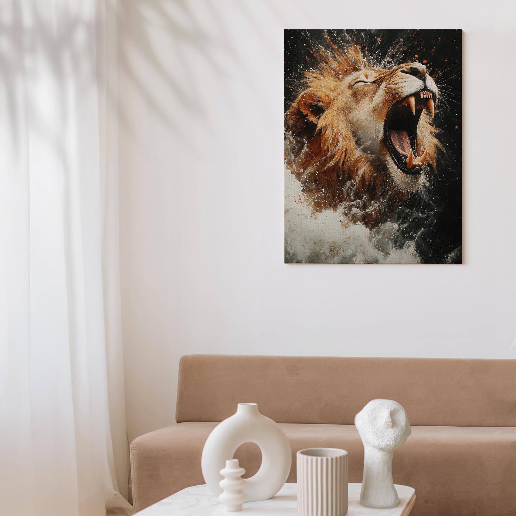 Krachtige leeuwenkop close-up