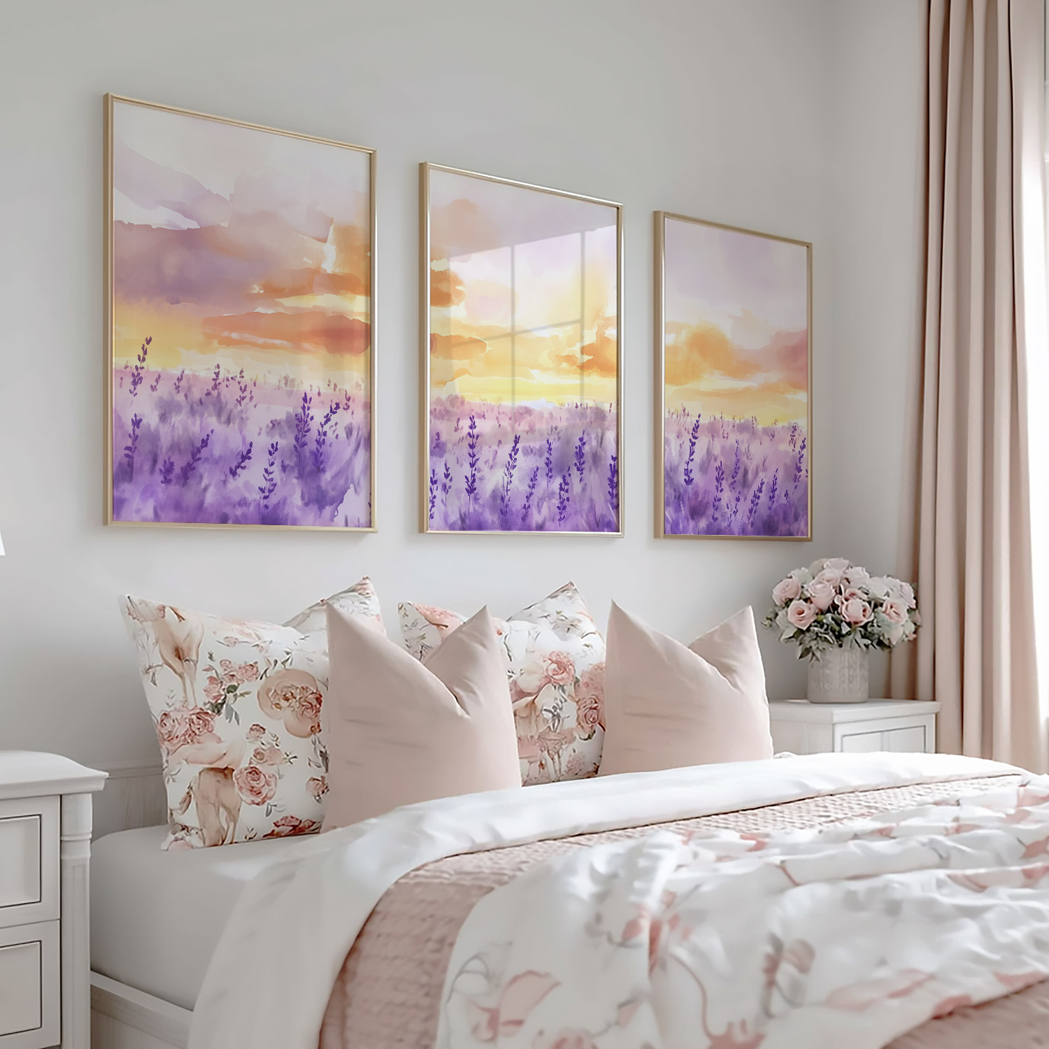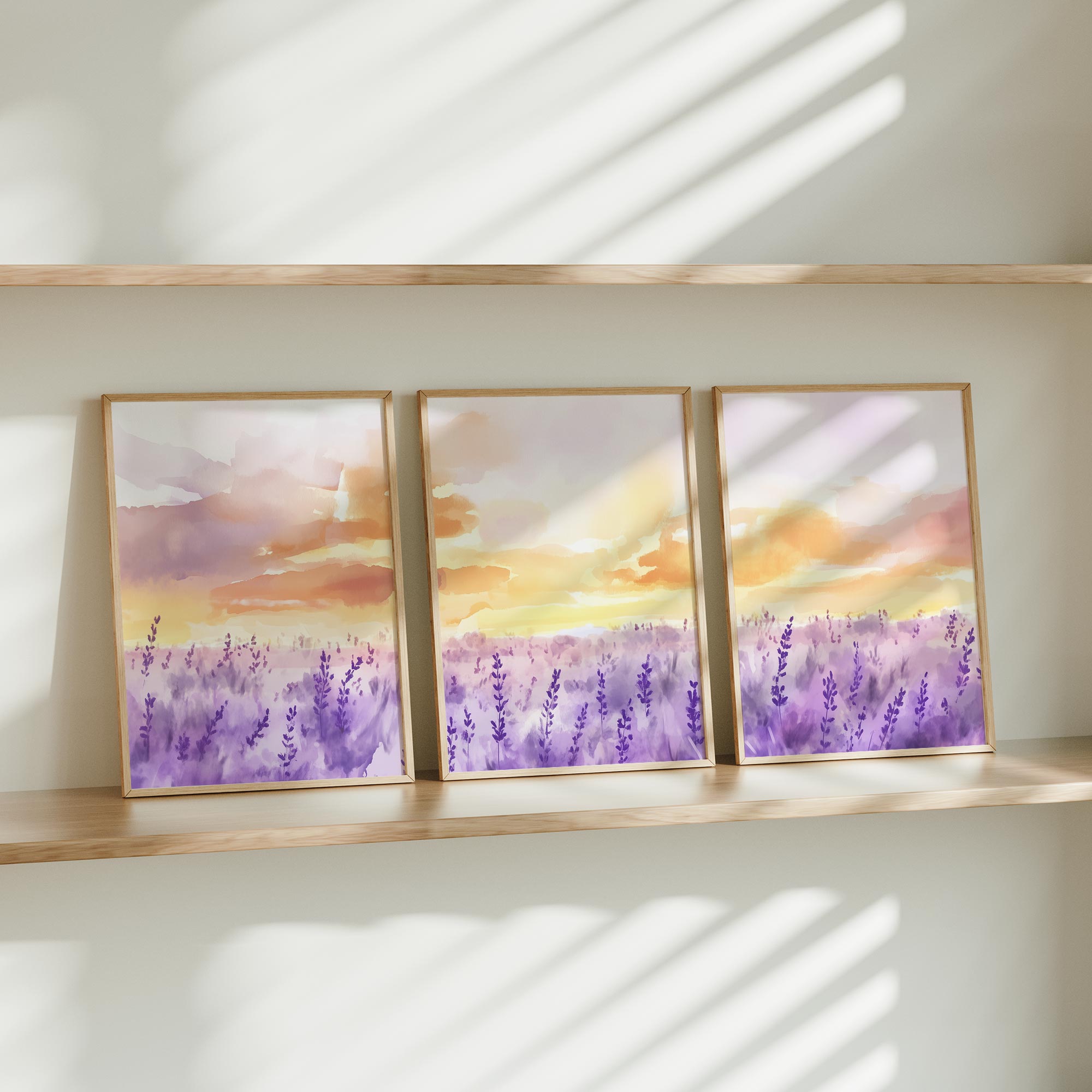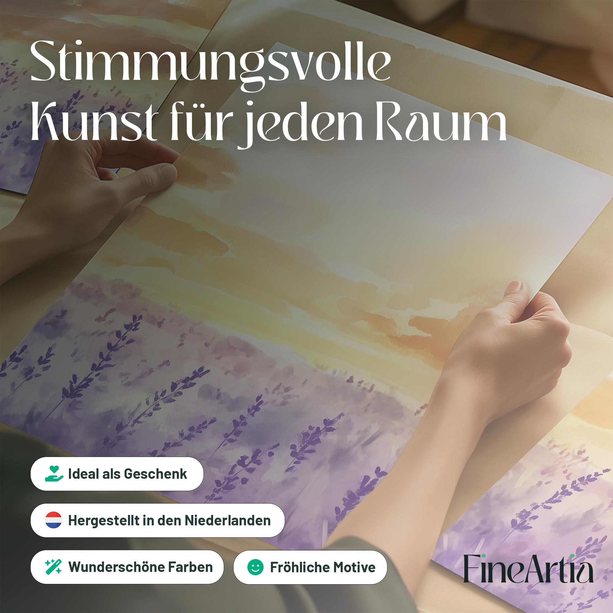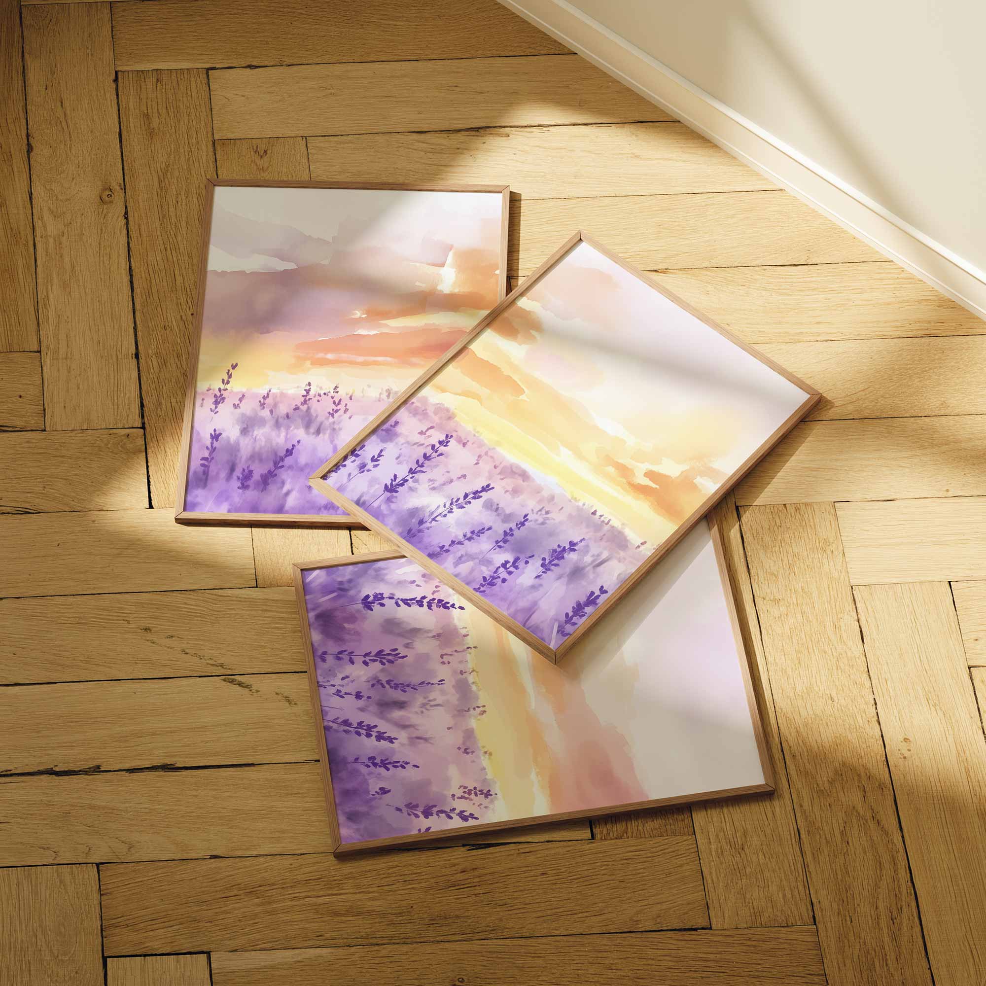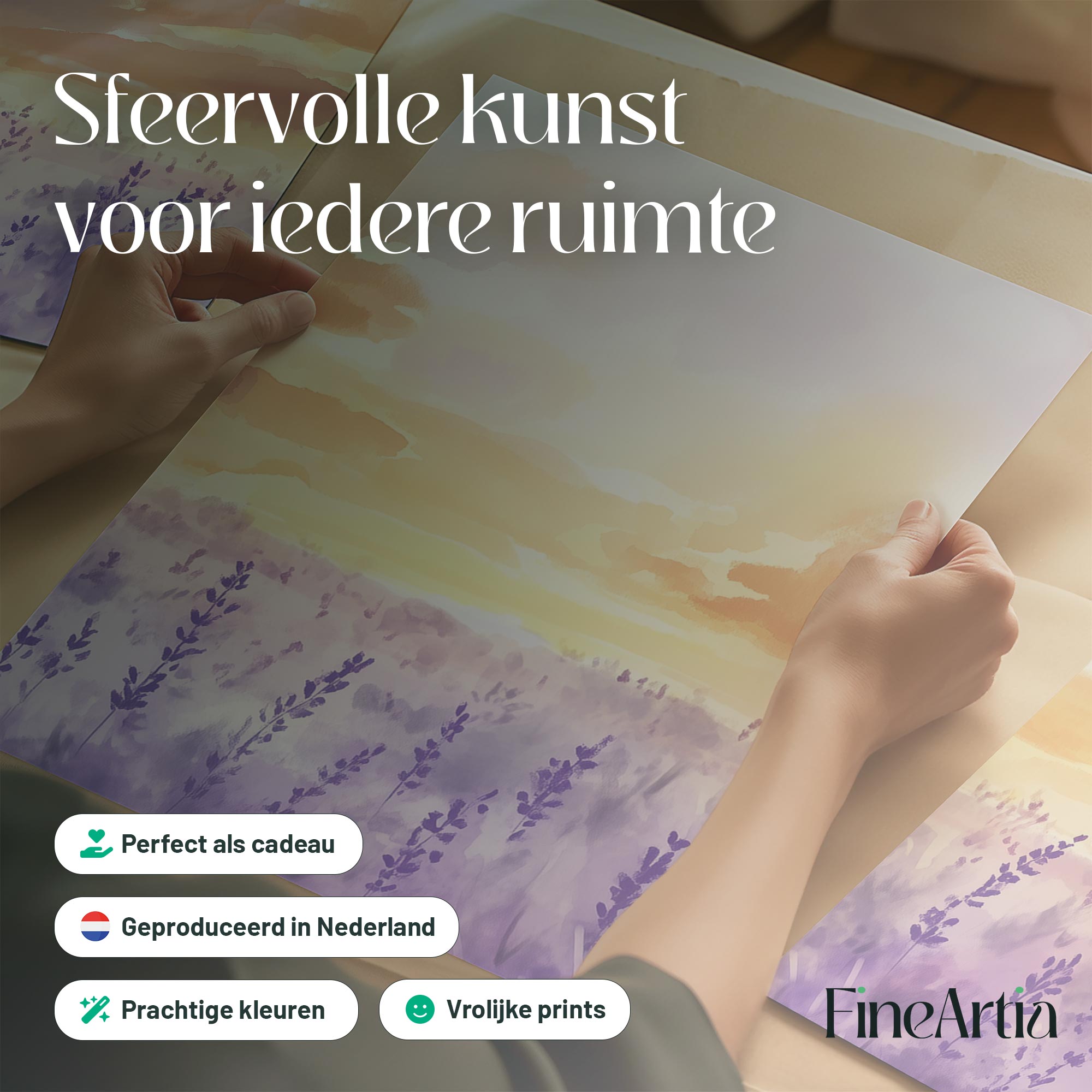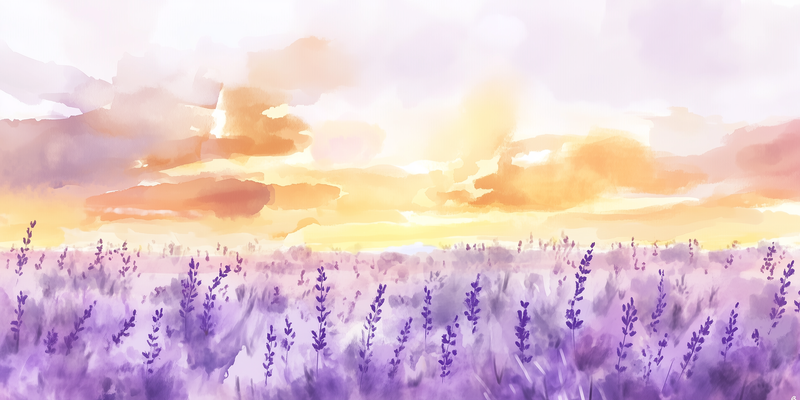 Lavendelveld bij Zonsondergang – Dromerig Watercolor