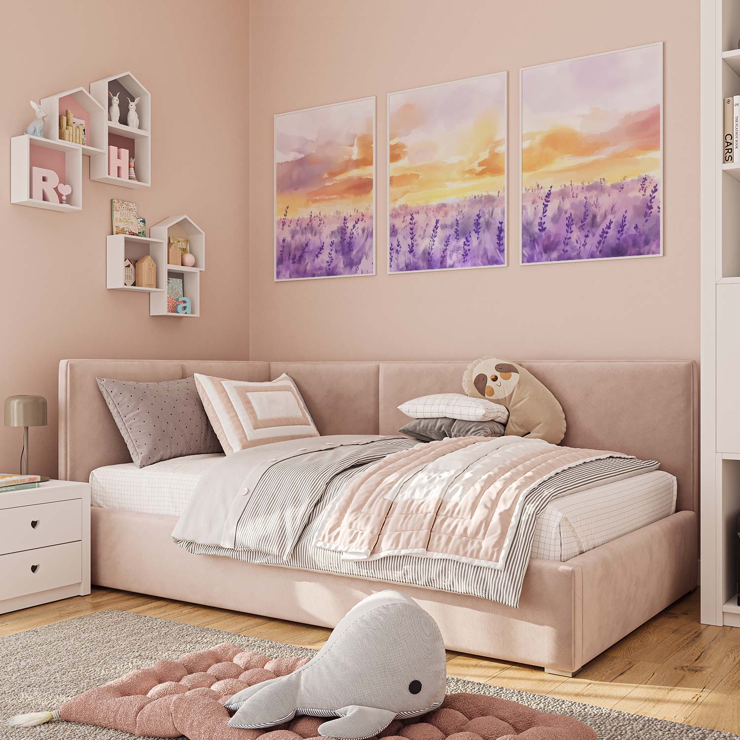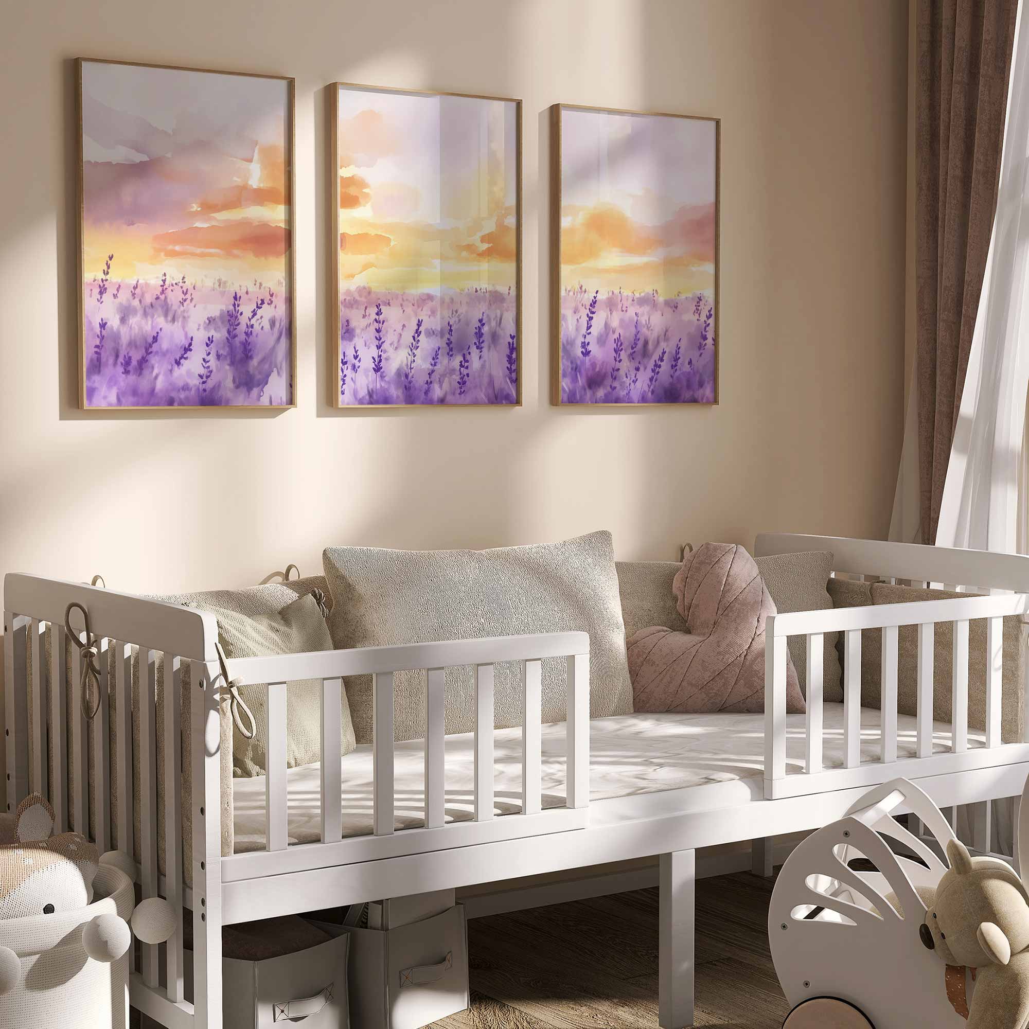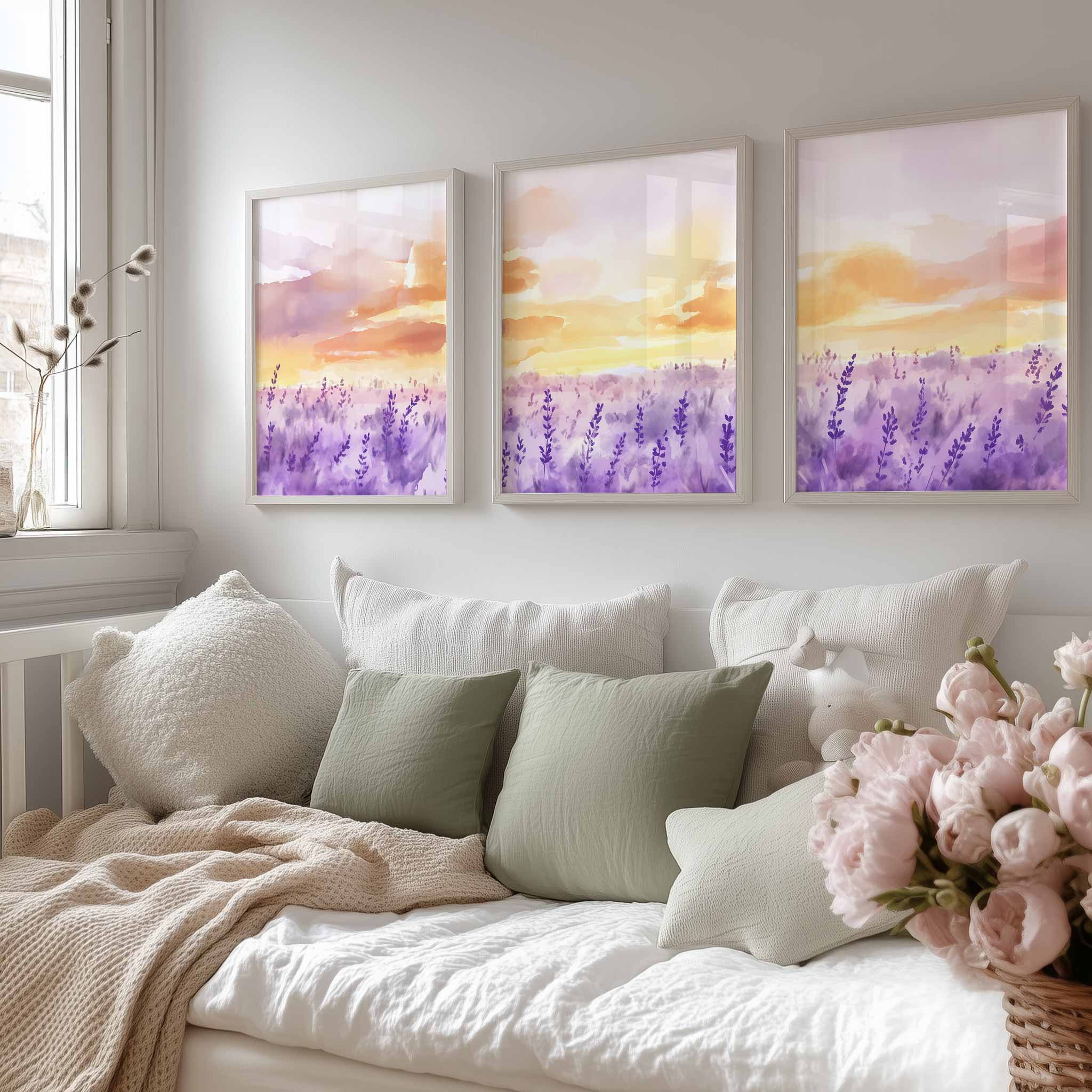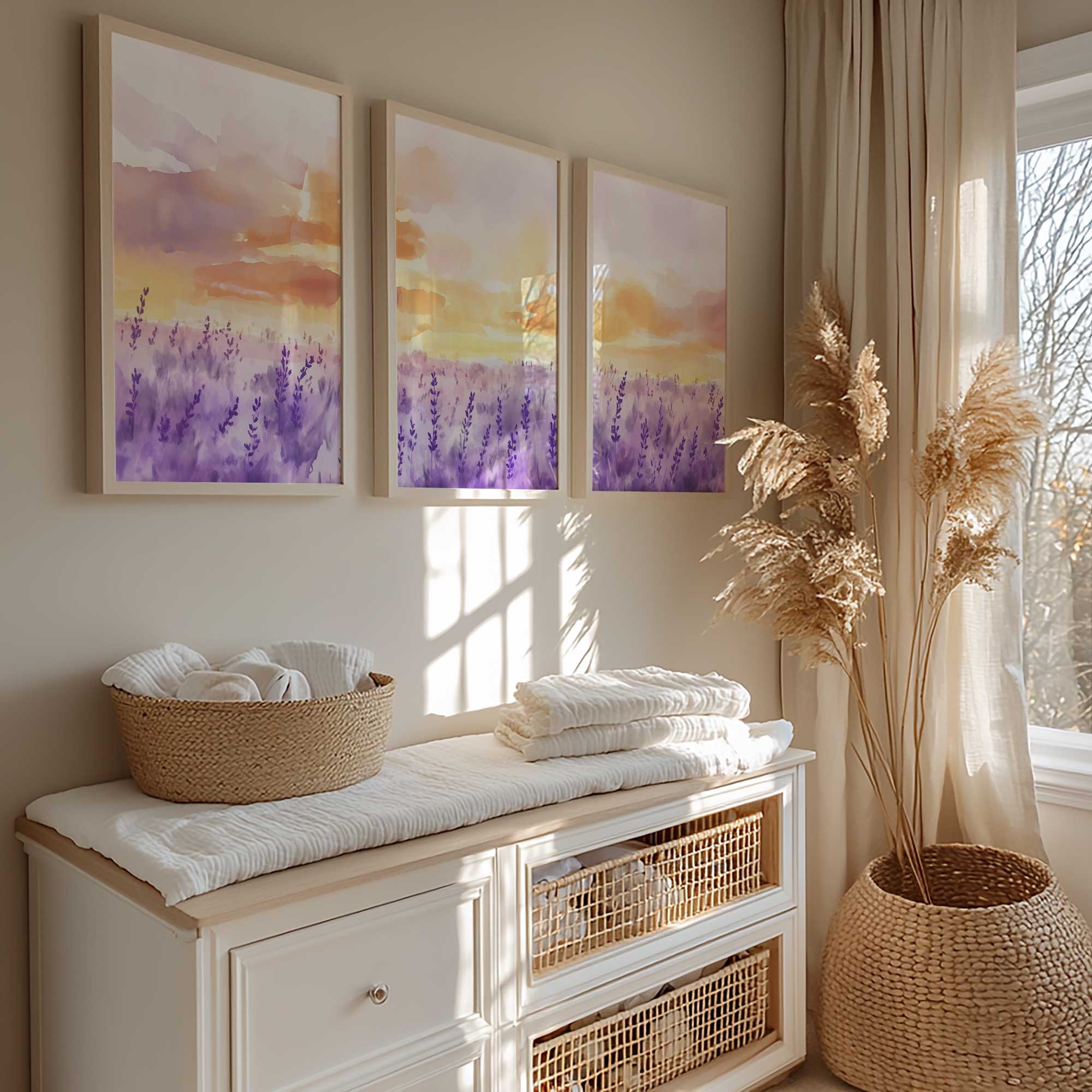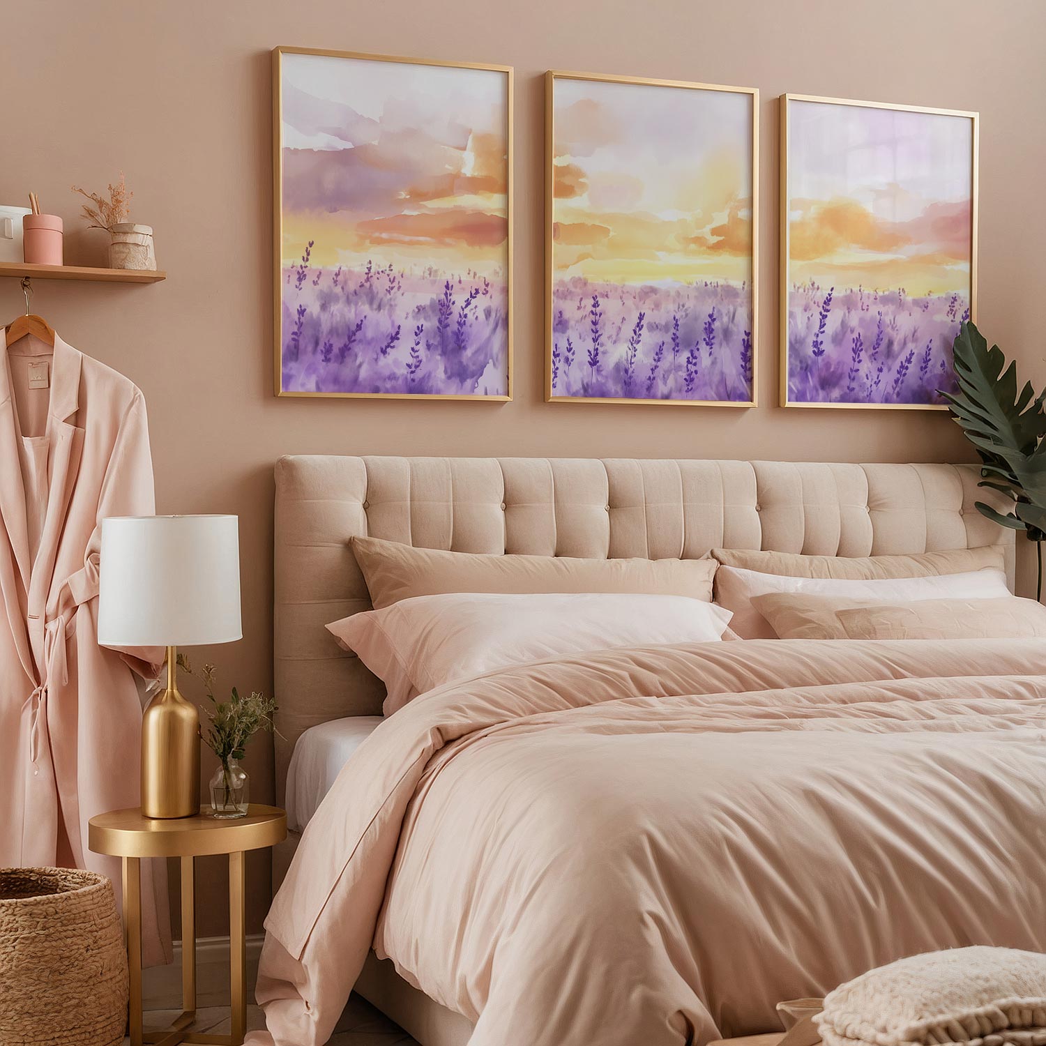 Lavendelveld bij Zonsondergang – Dromerig Watercolor