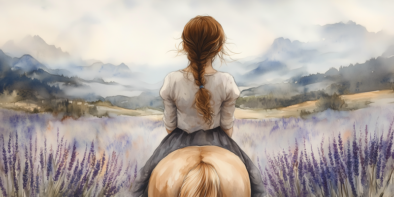 Lavendelveld Droom: Meisje te Paard in Betoverend Landschap