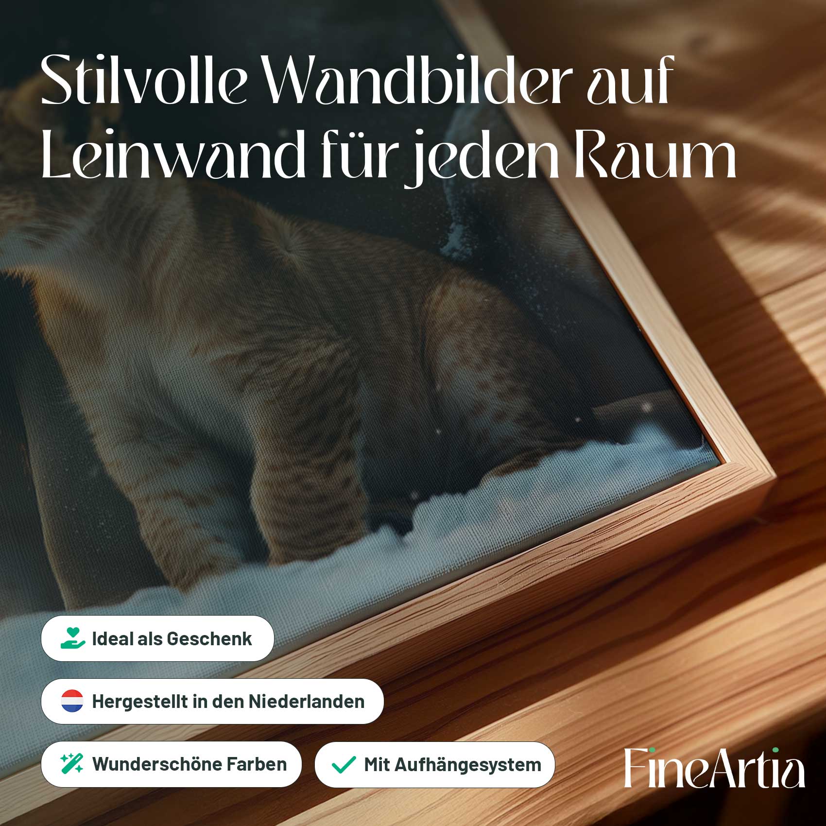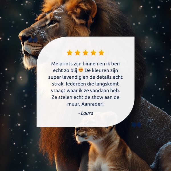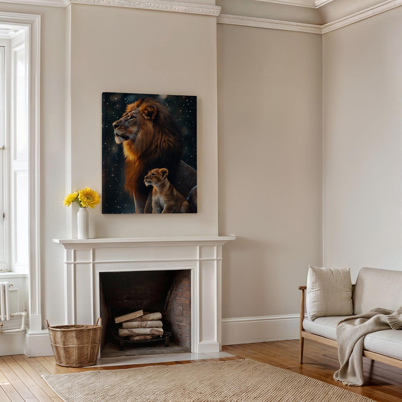 Terug naar collectie Canvas Leeuw en welp in besneeuwd bos