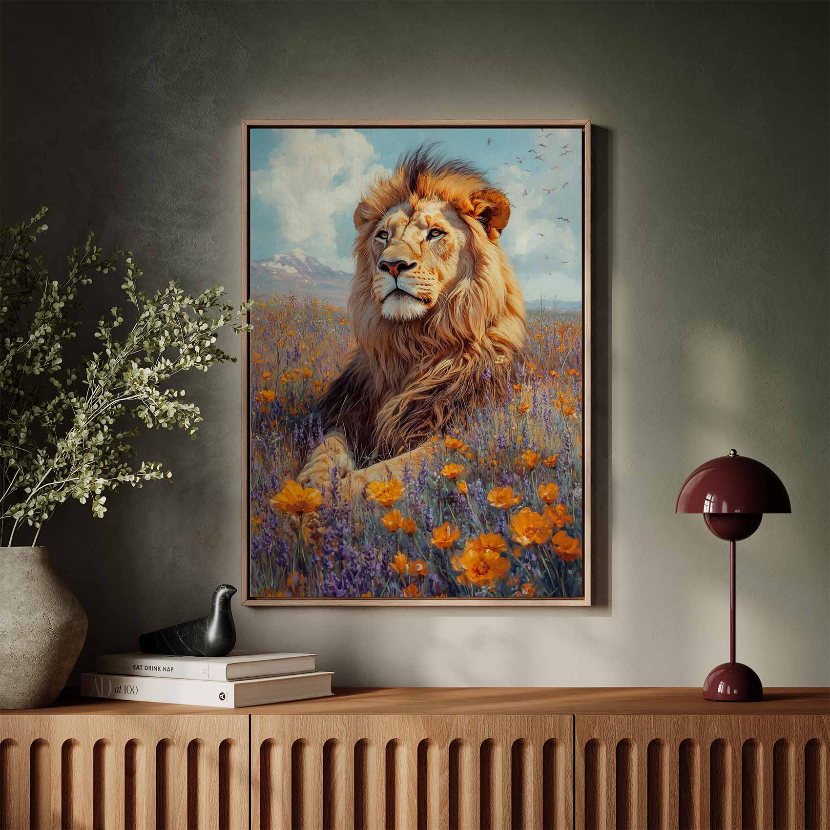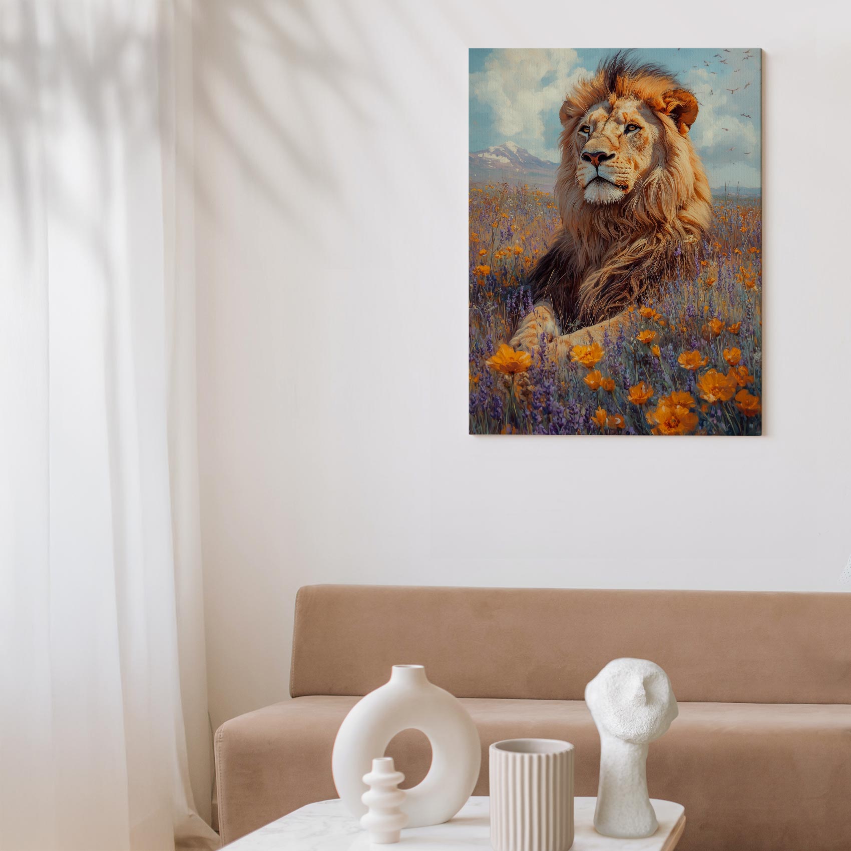 Terug naar collectie Canvas Leeuw in bloemenpracht
