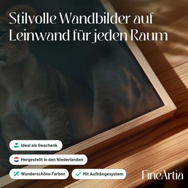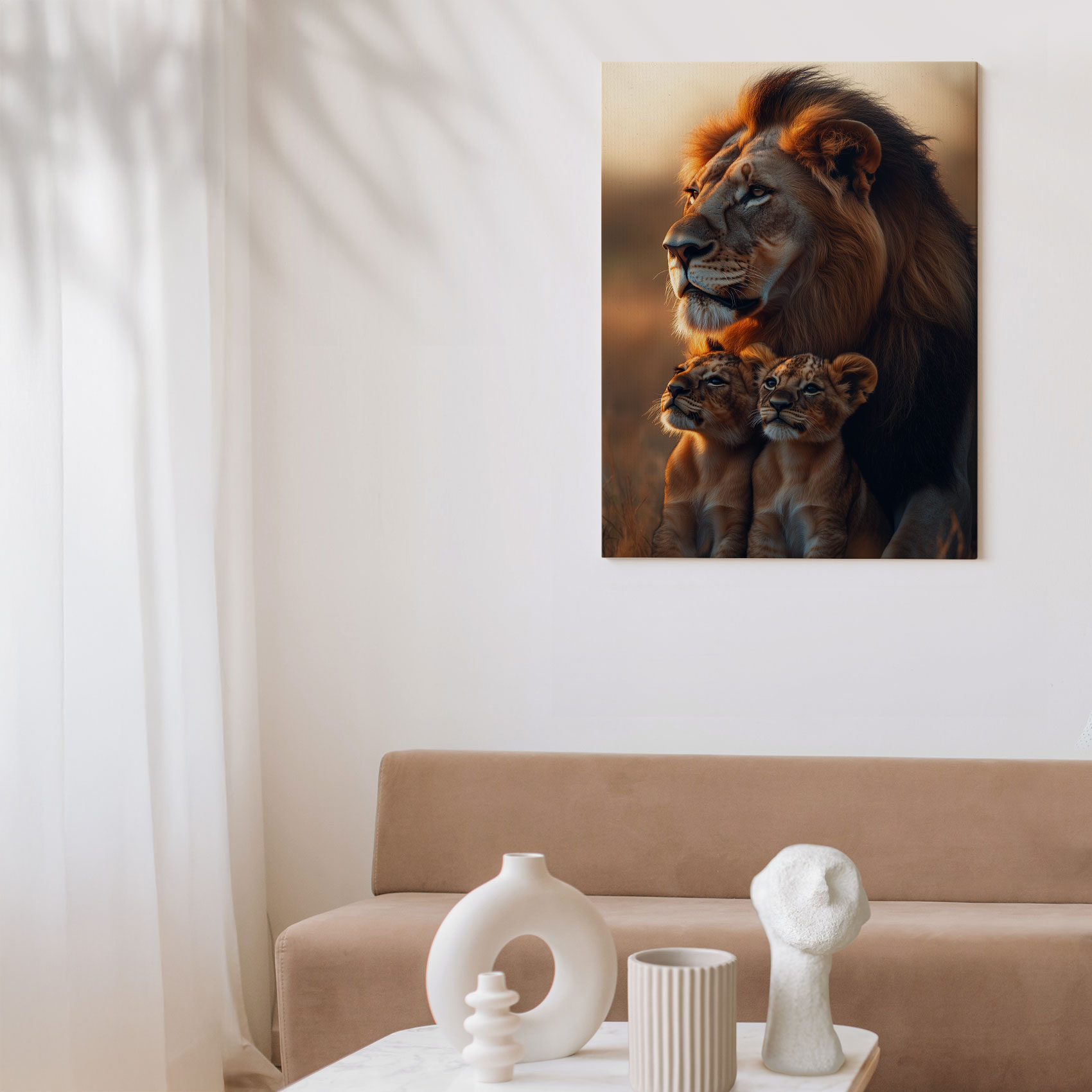 Terug naar collectie Canvas Leeuw met welpen bij zonsondergang