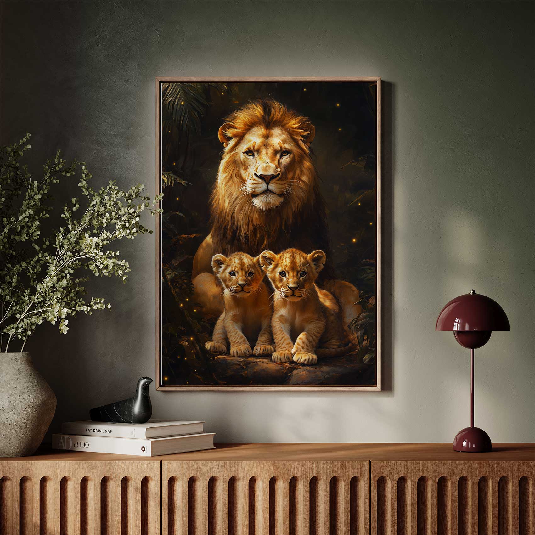 Terug naar collectie Canvas Leeuw met welpen in bos