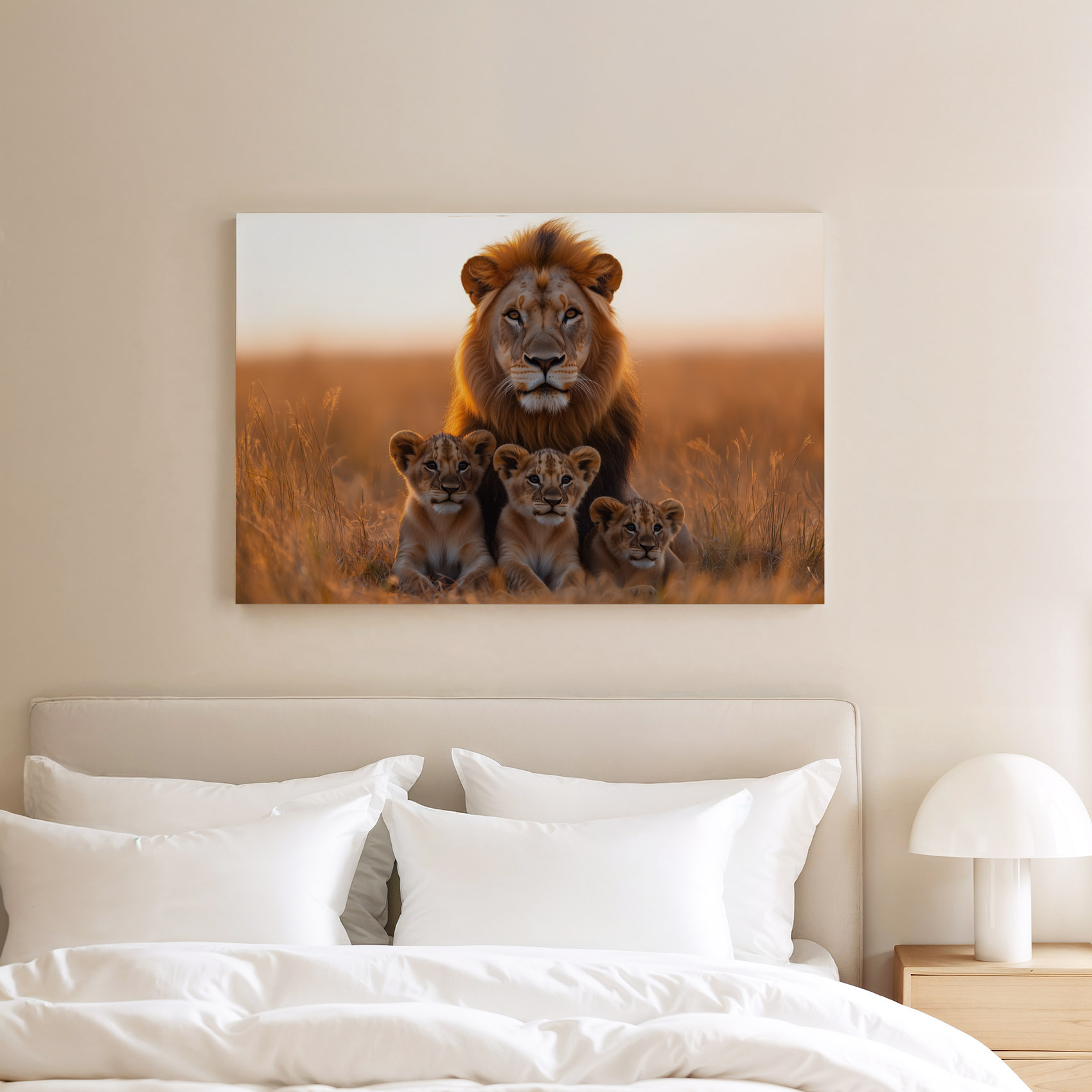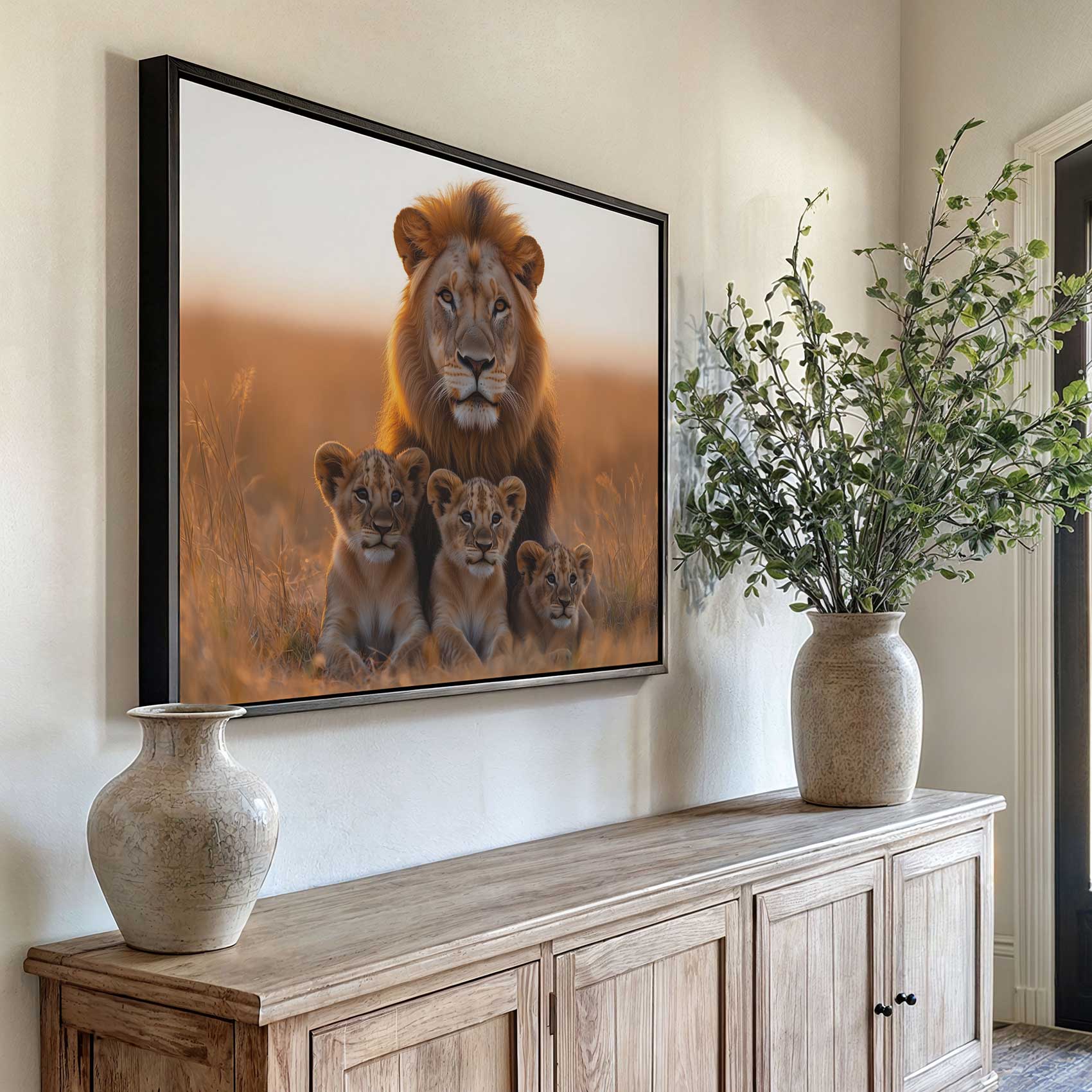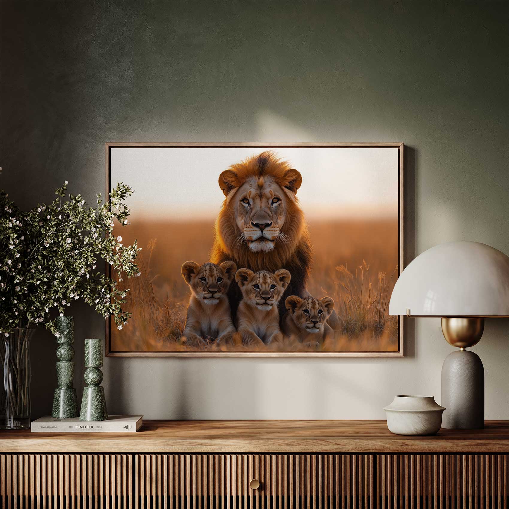 Leeuw met welpen in gouden veld