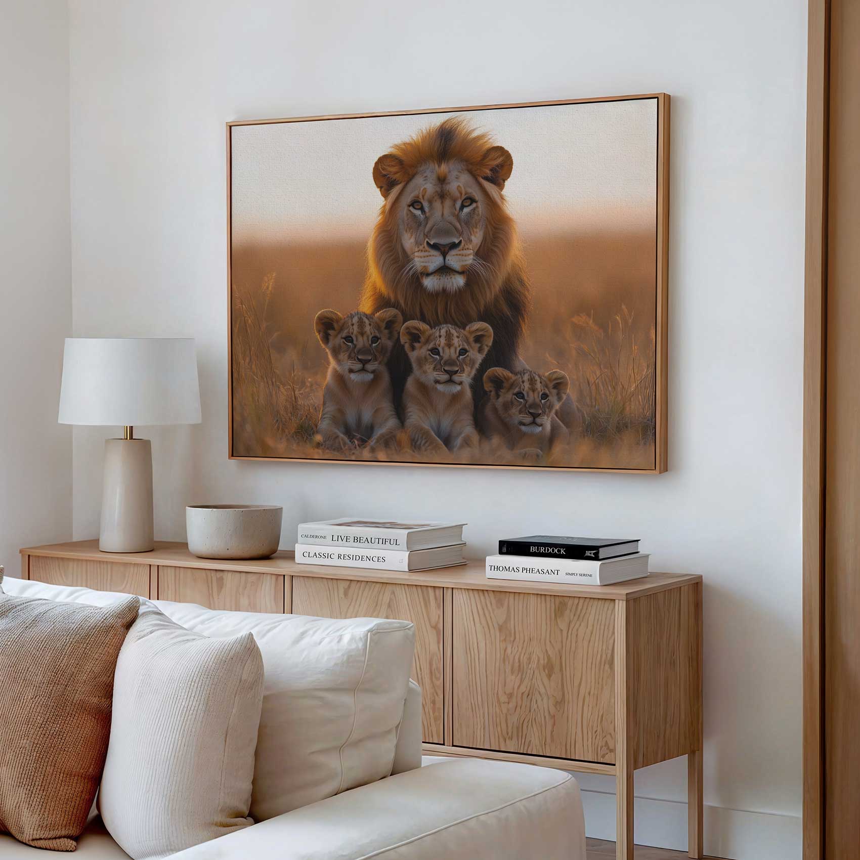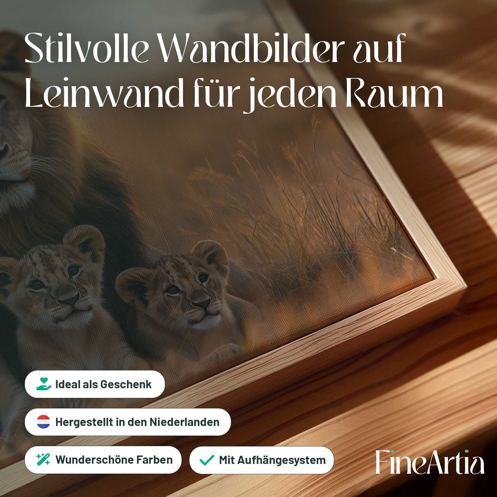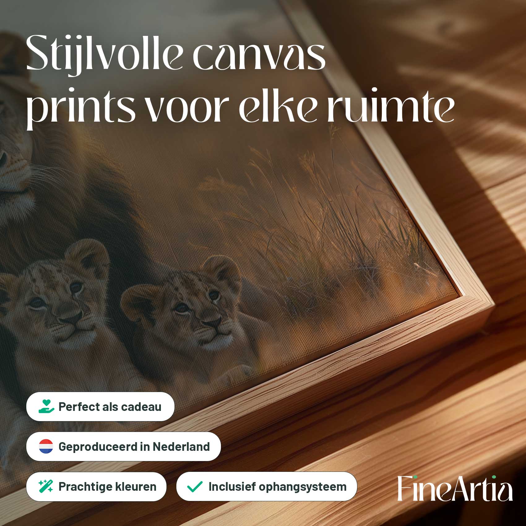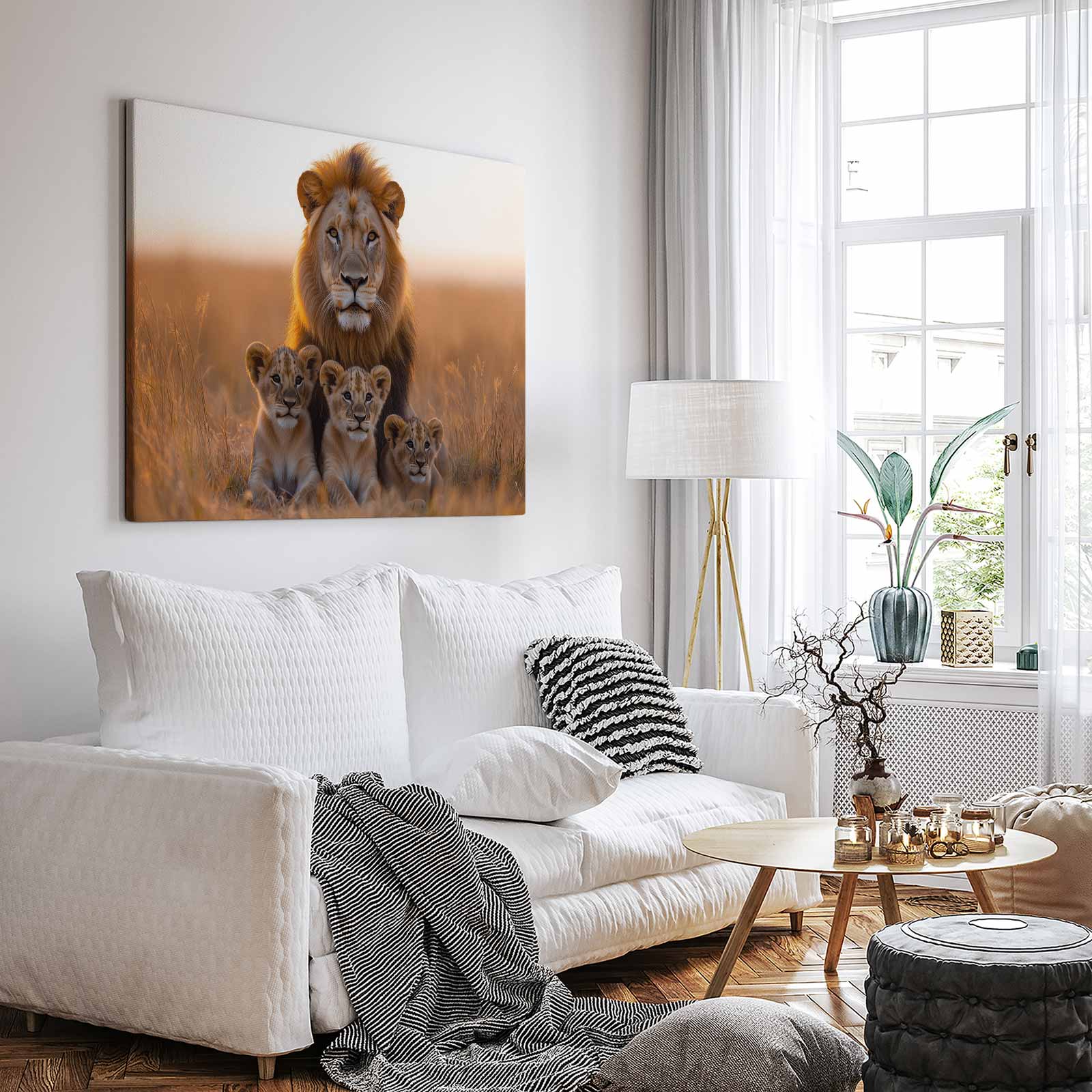 Leeuw met welpen in gouden veld