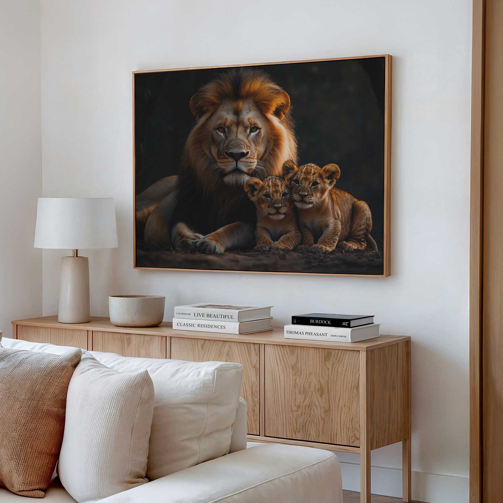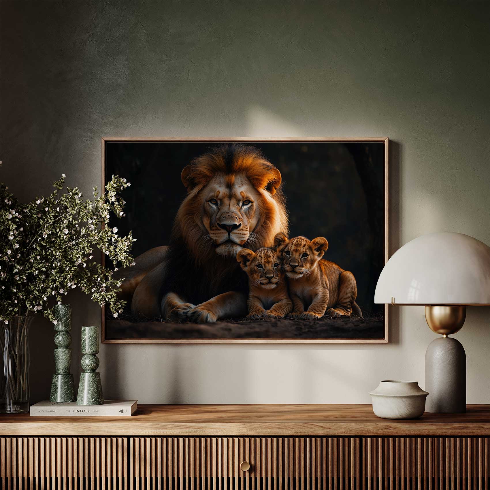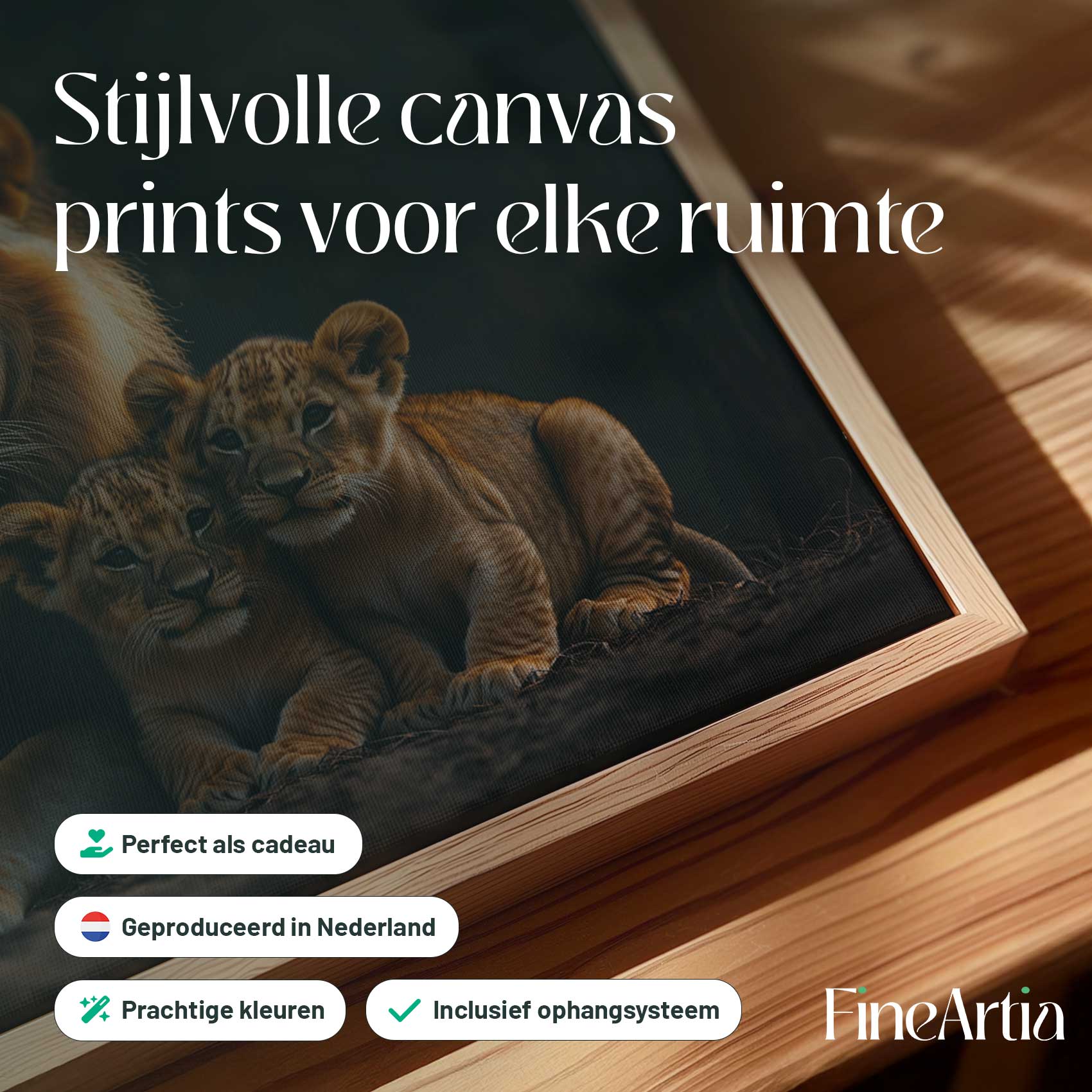 Terug naar collectie Canvas Leeuw met welpen in natuur
