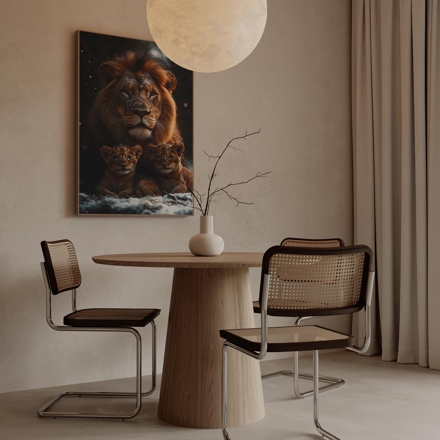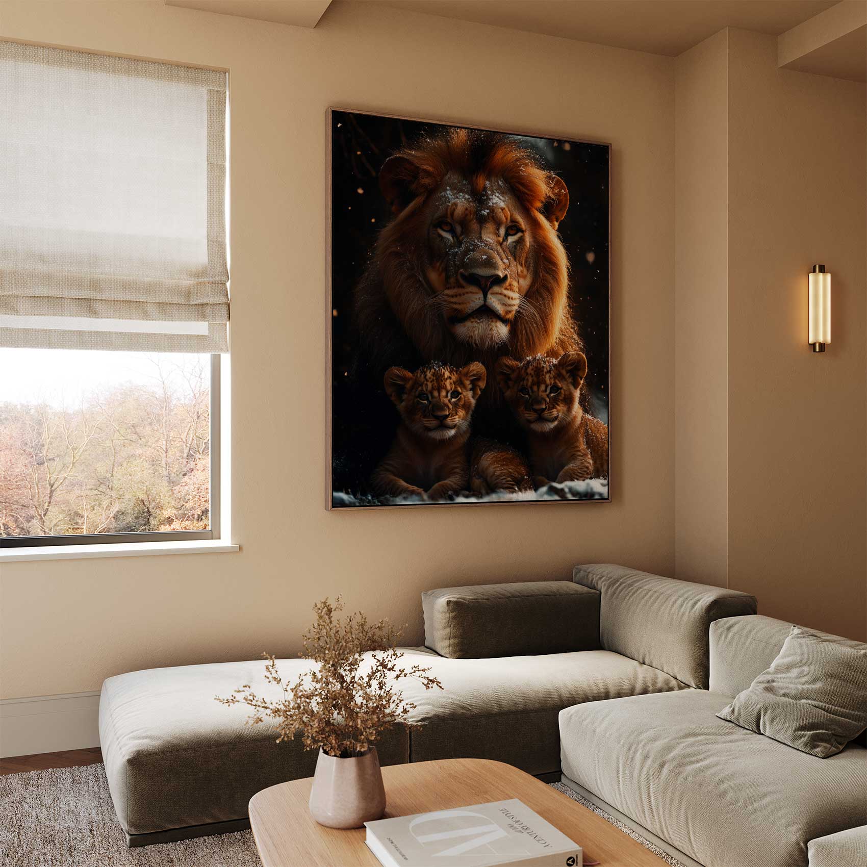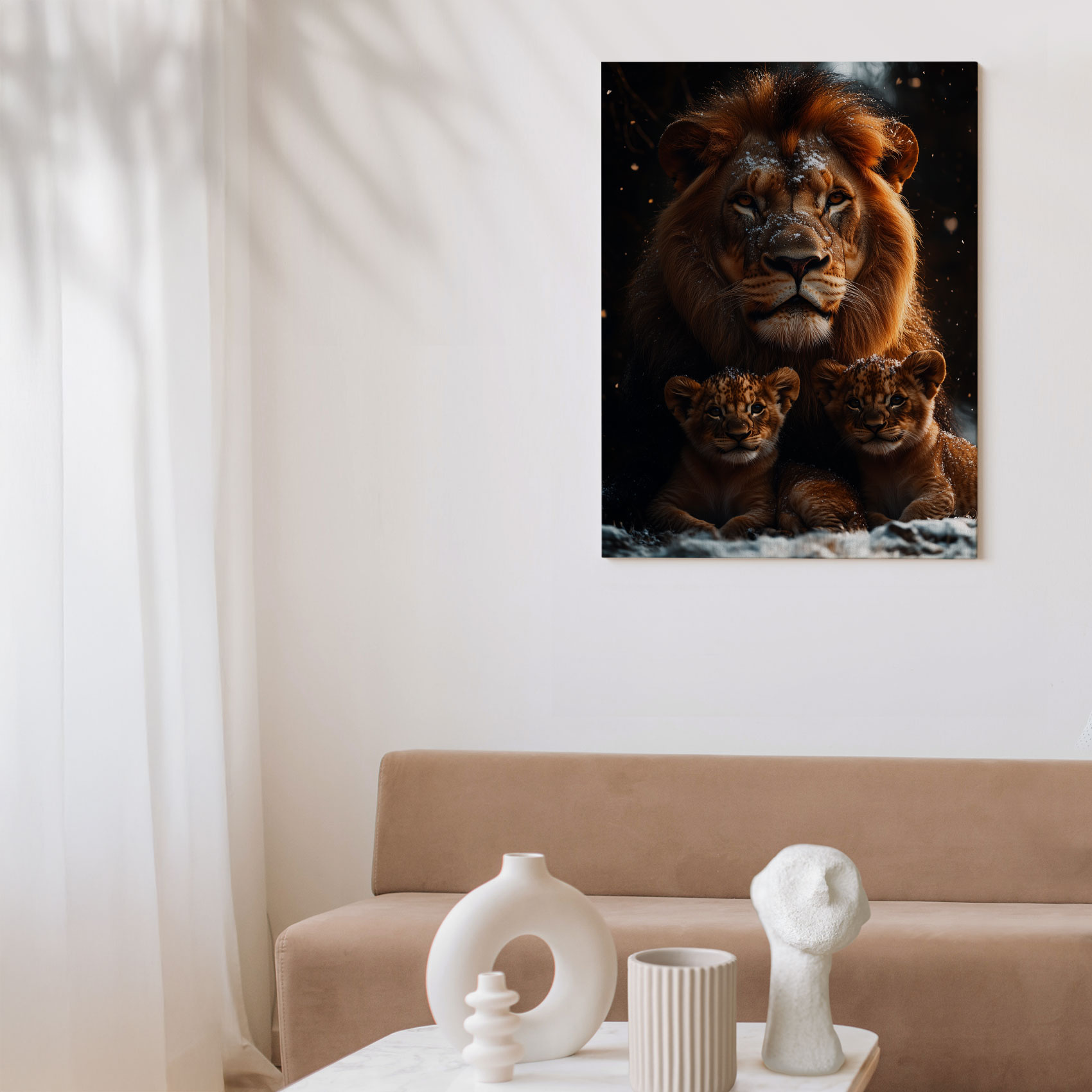 Leeuw met welpen in sneeuw