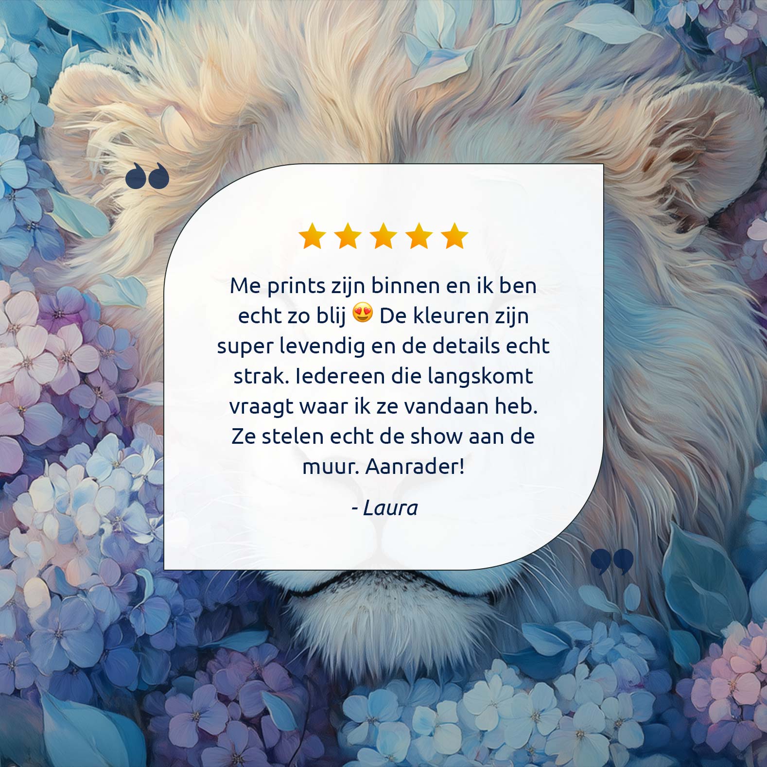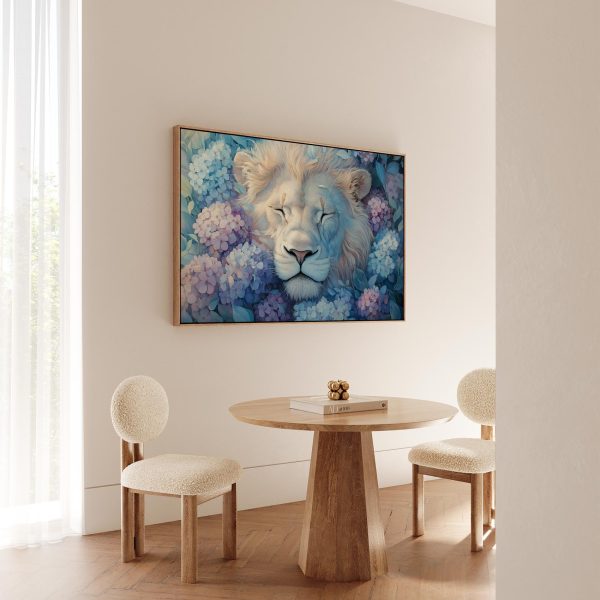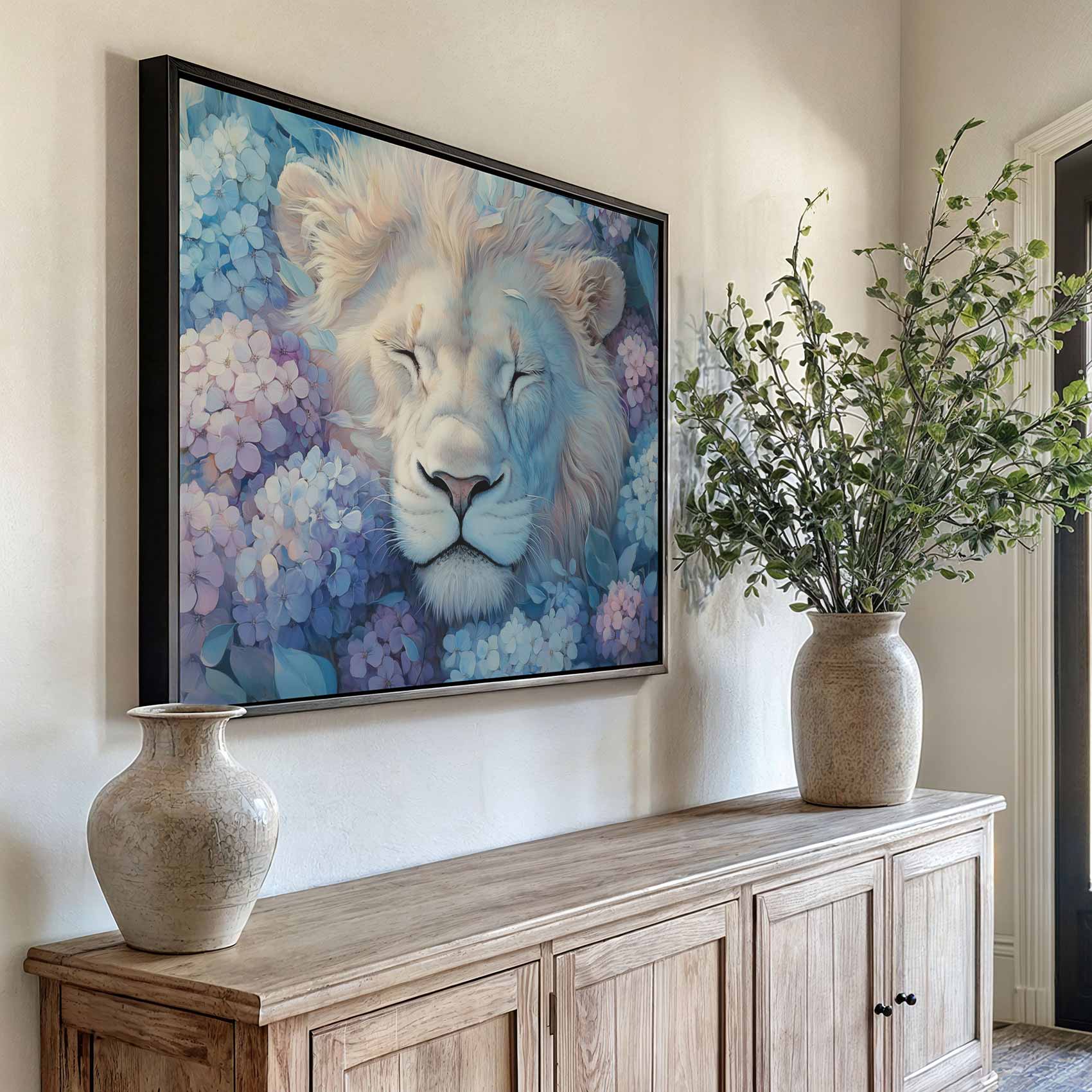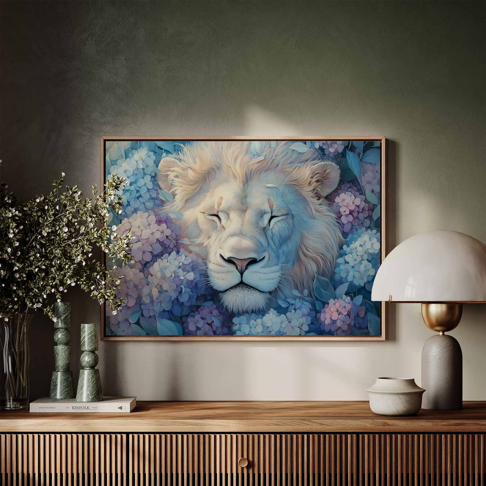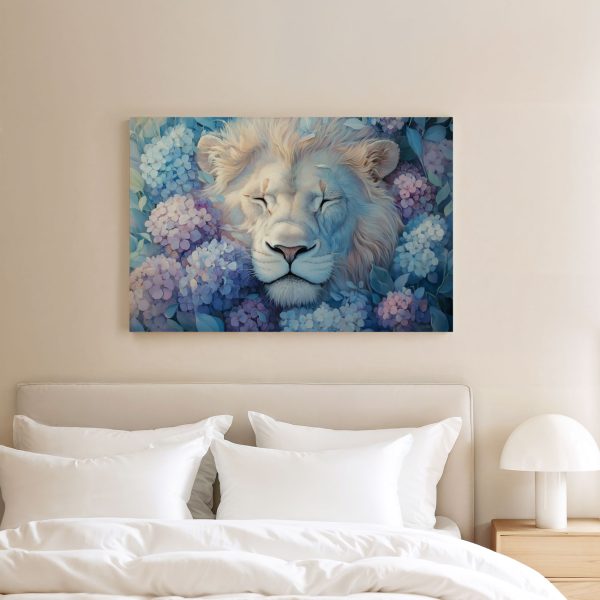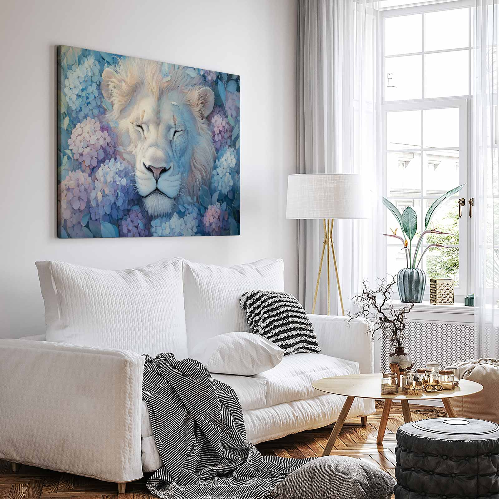 Terug naar collectie Canvas Leeuw omringd door bloemen