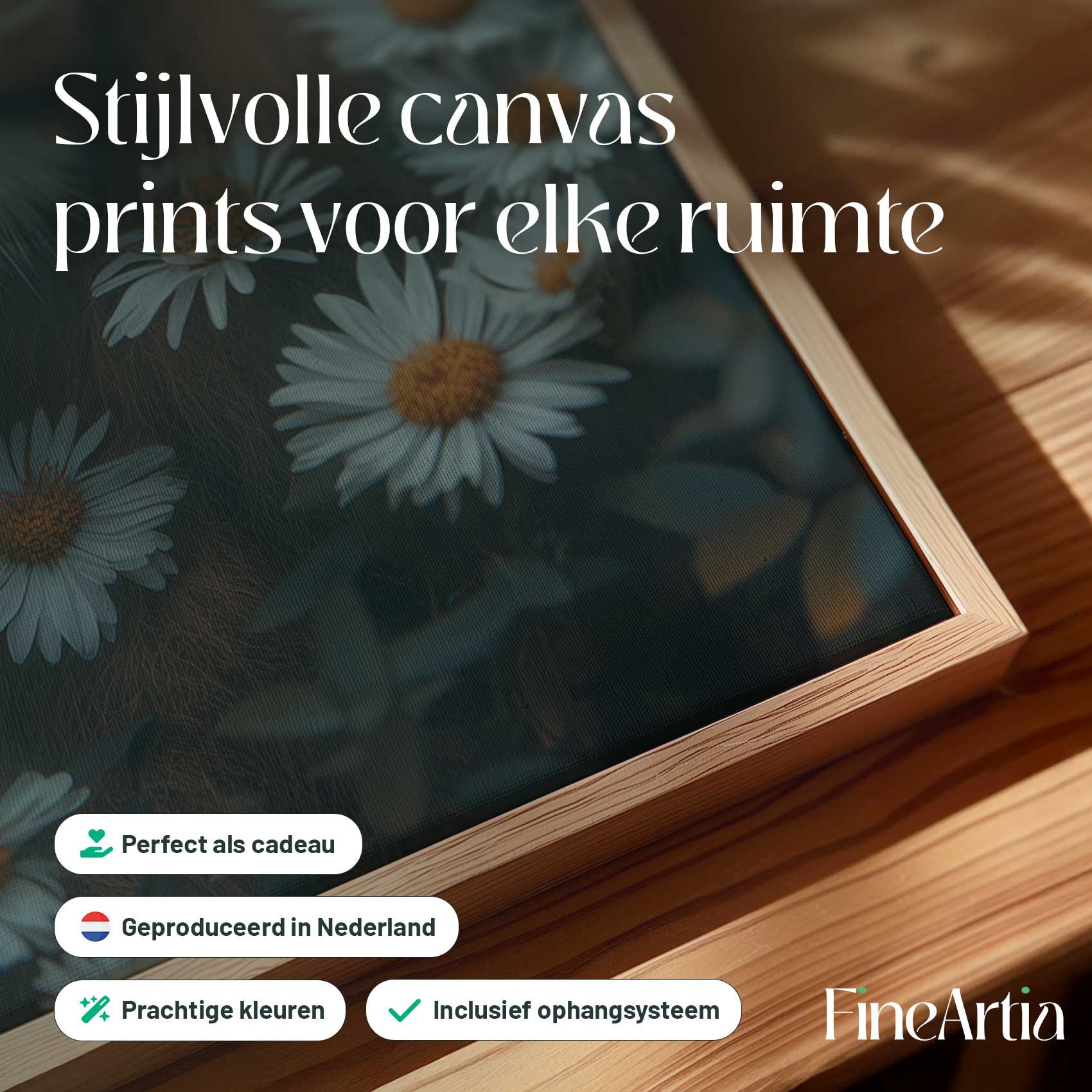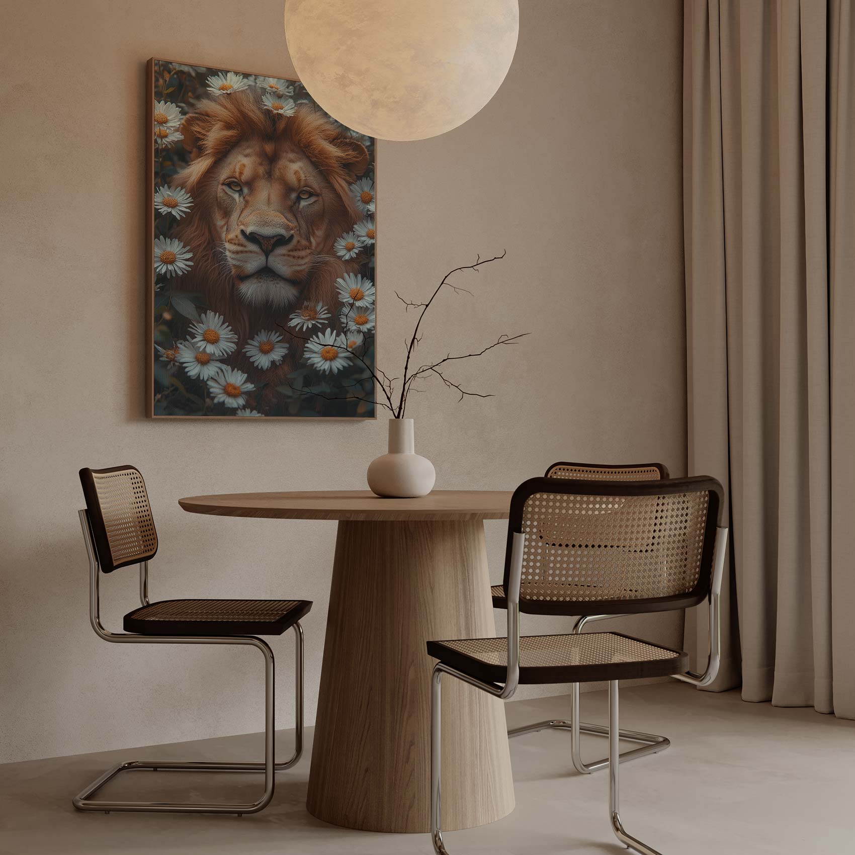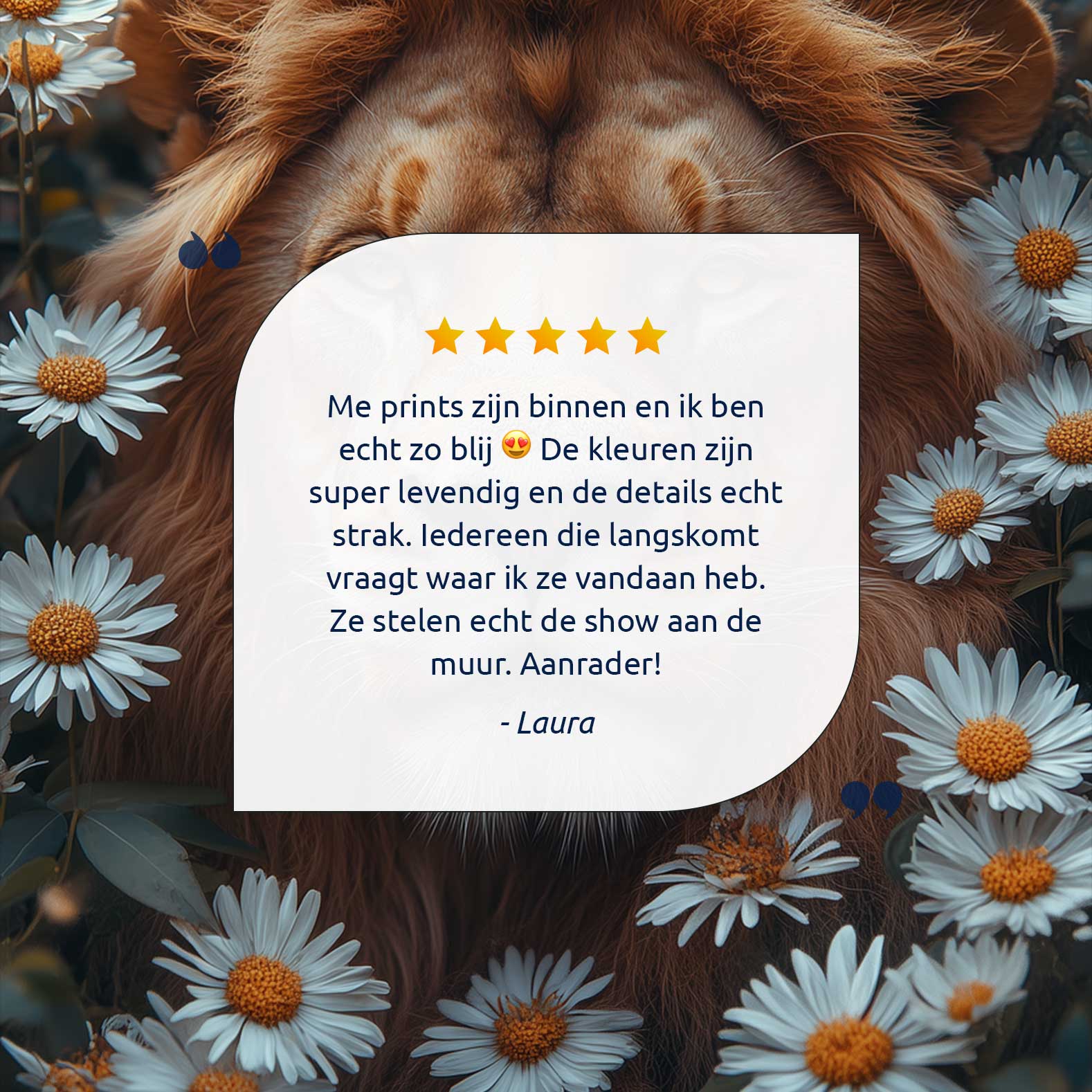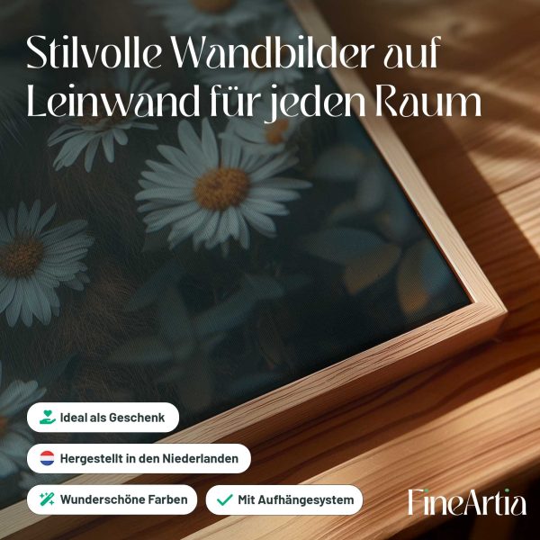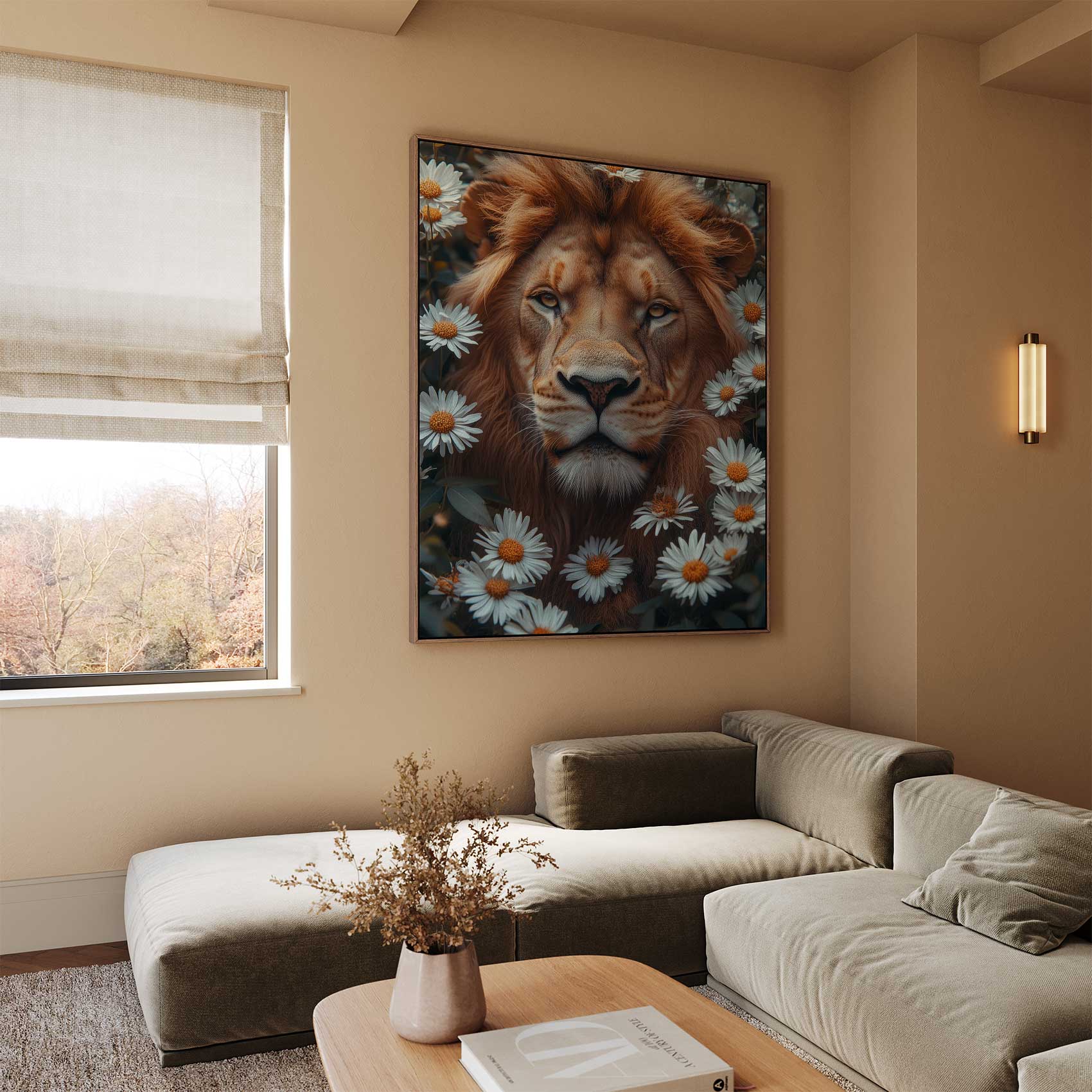 Terug naar collectie Canvas Leeuw tussen witte madeliefjes