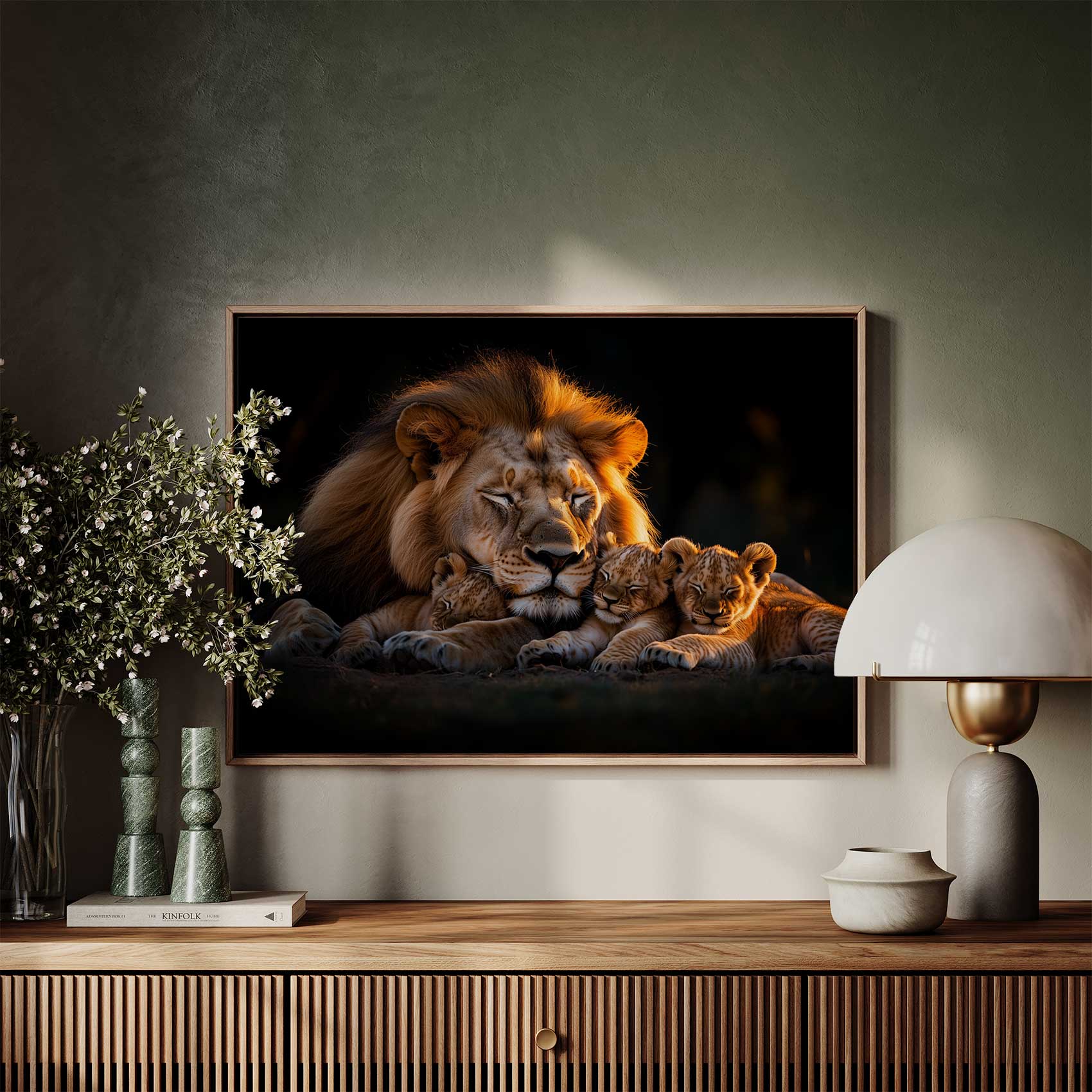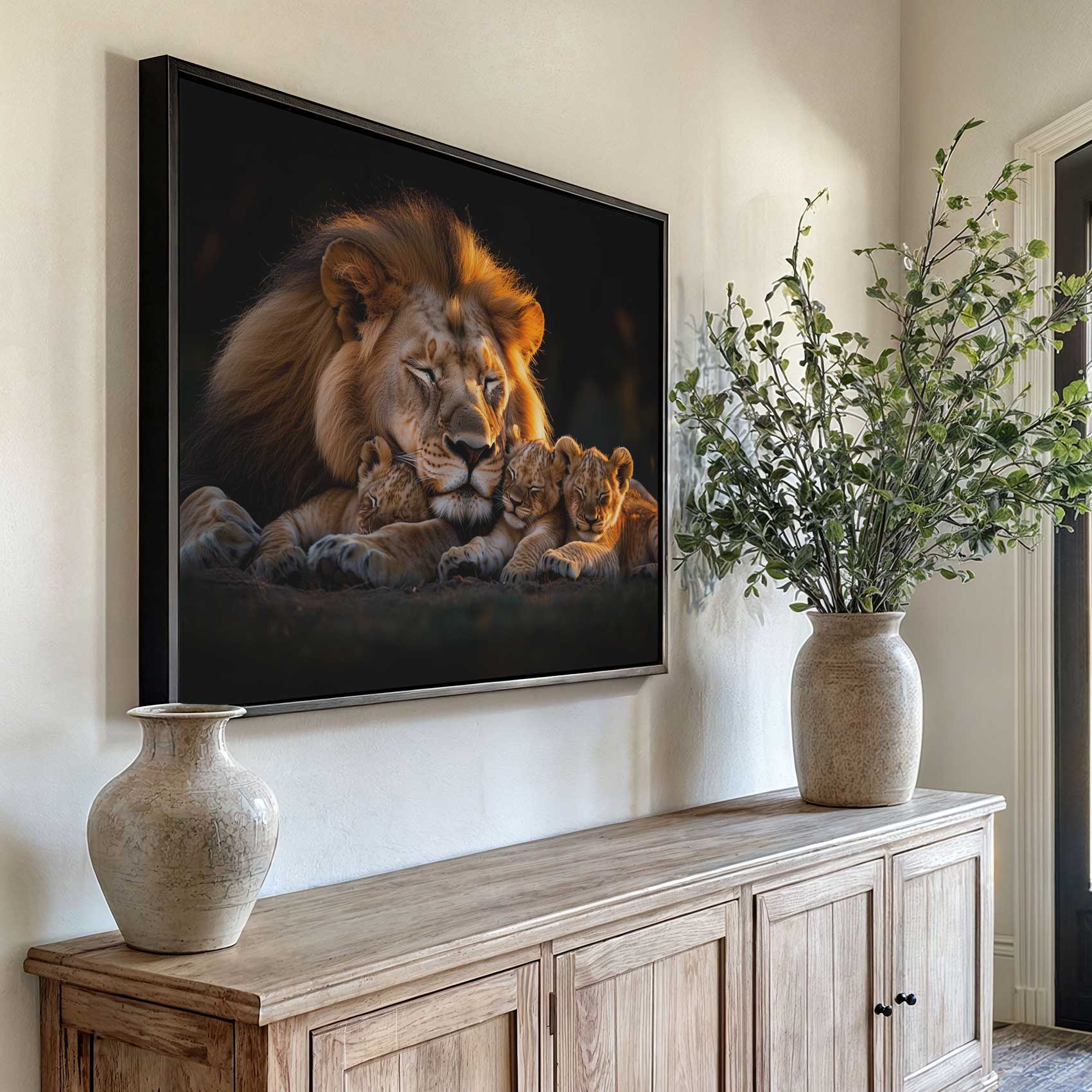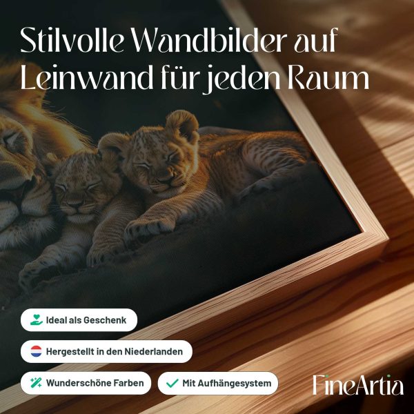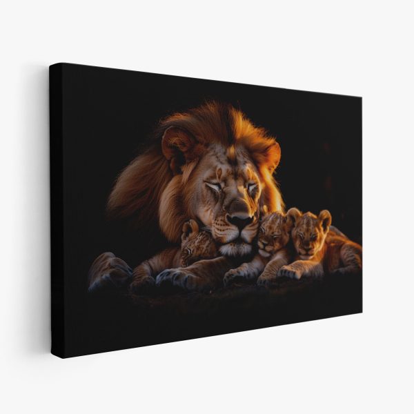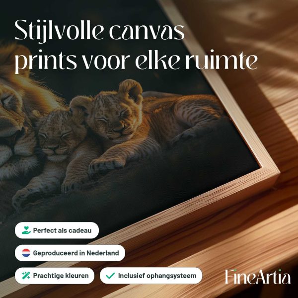 Terug naar collectie Canvas Leeuwenfamilie bij zonsondergang