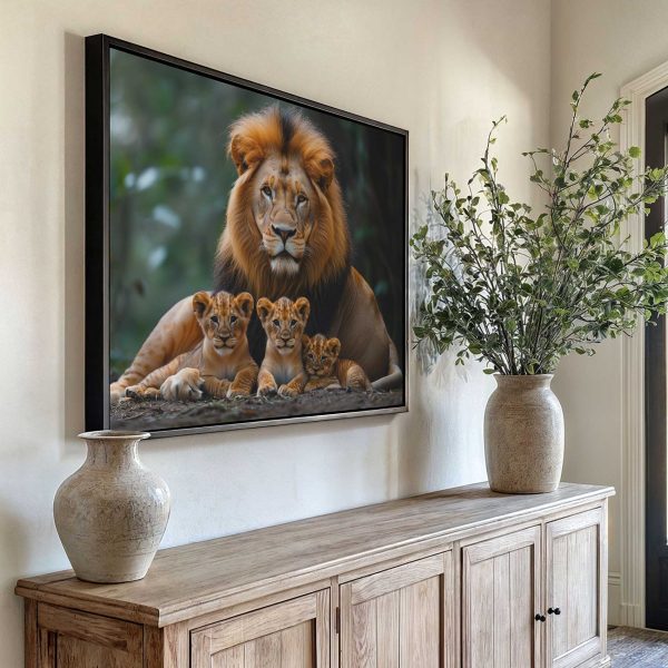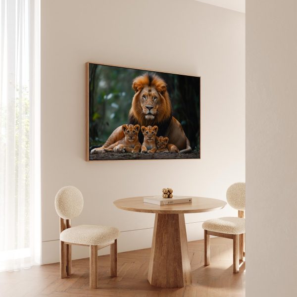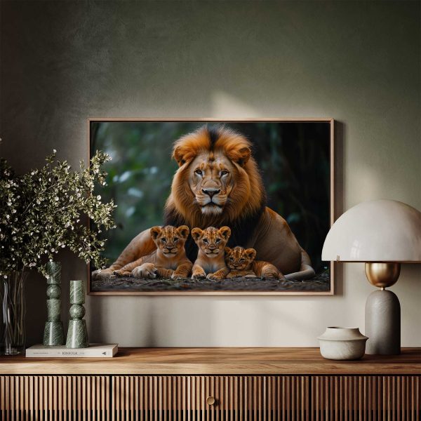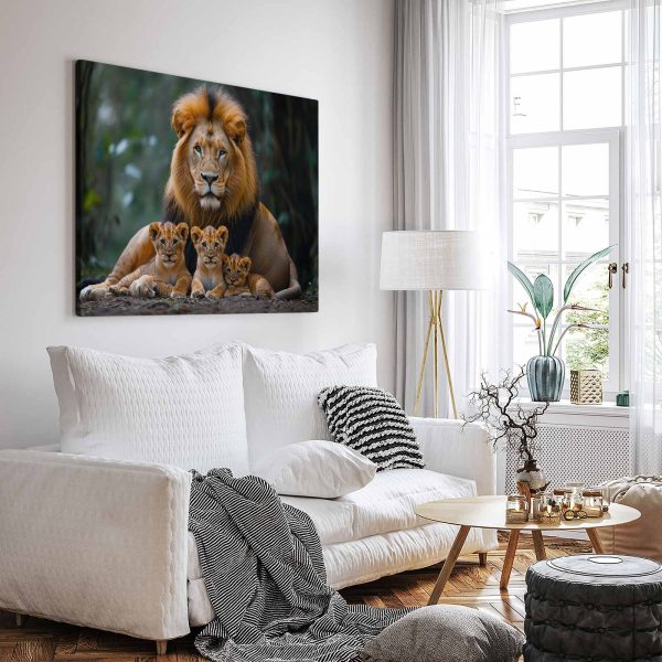 Terug naar collectie Canvas Leeuwenfamilie in rustig bos