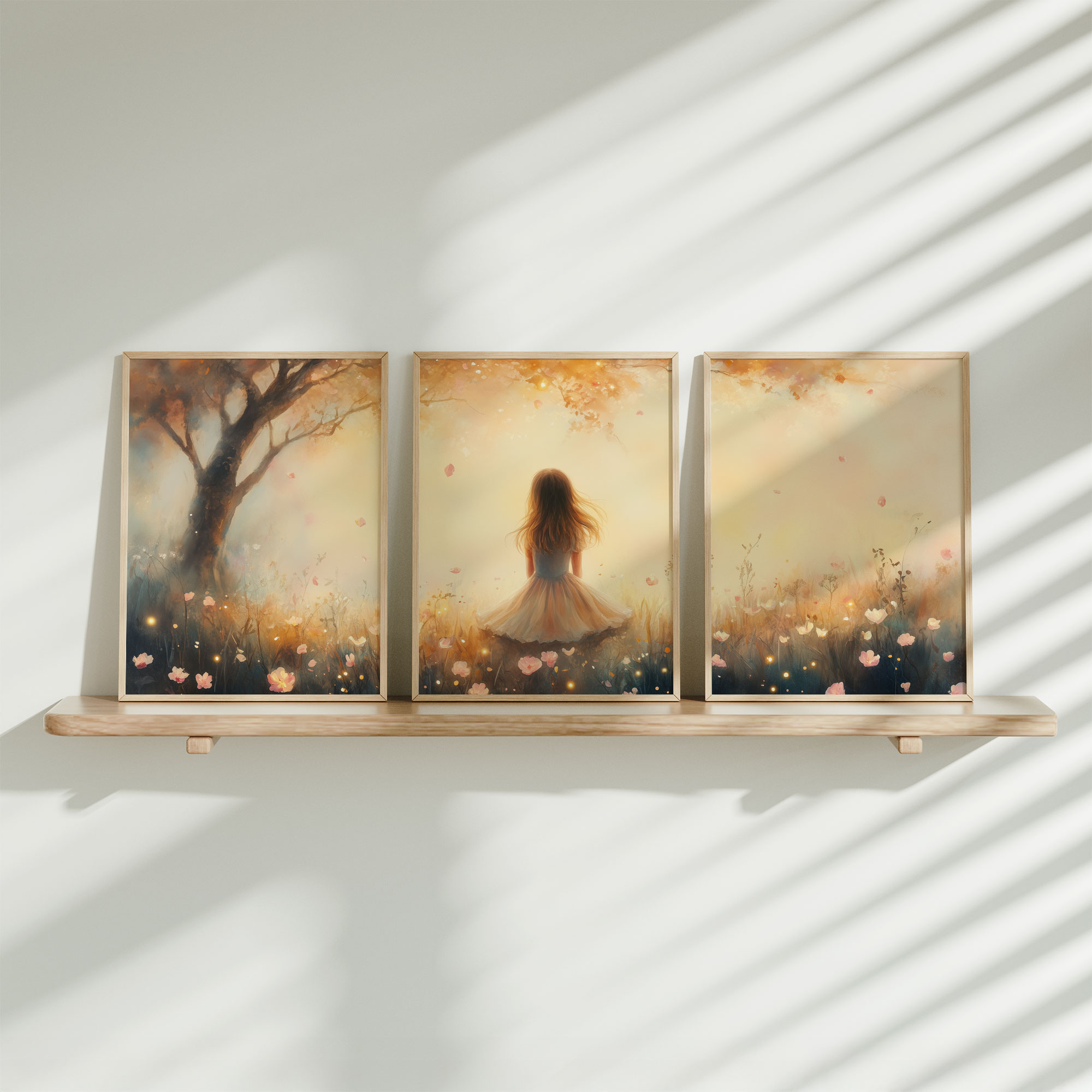 Lente Droom: Meisje op Wit Paard tussen Bloemen