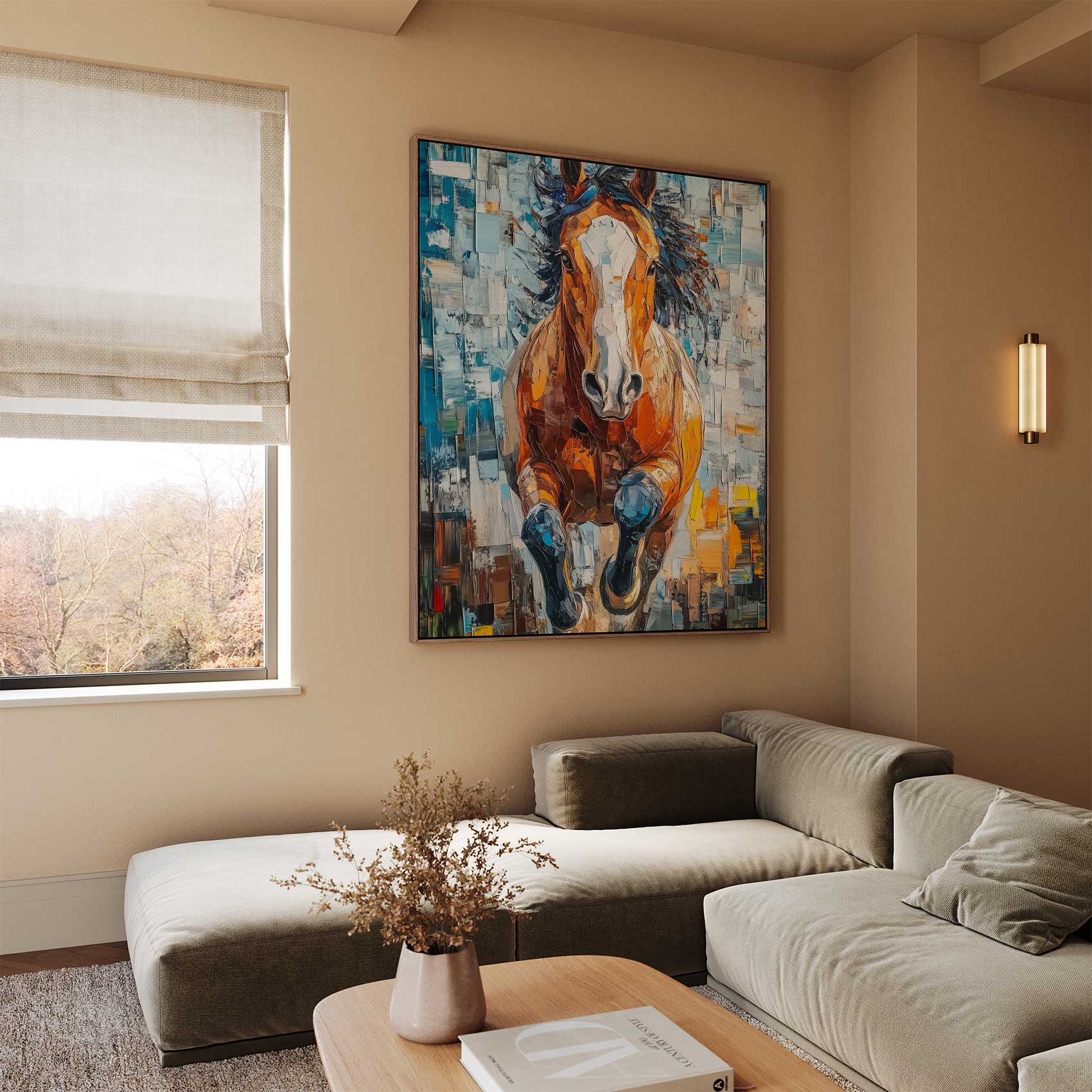 Terug naar collectie Canvas Levendige galopperende paardenschilderij