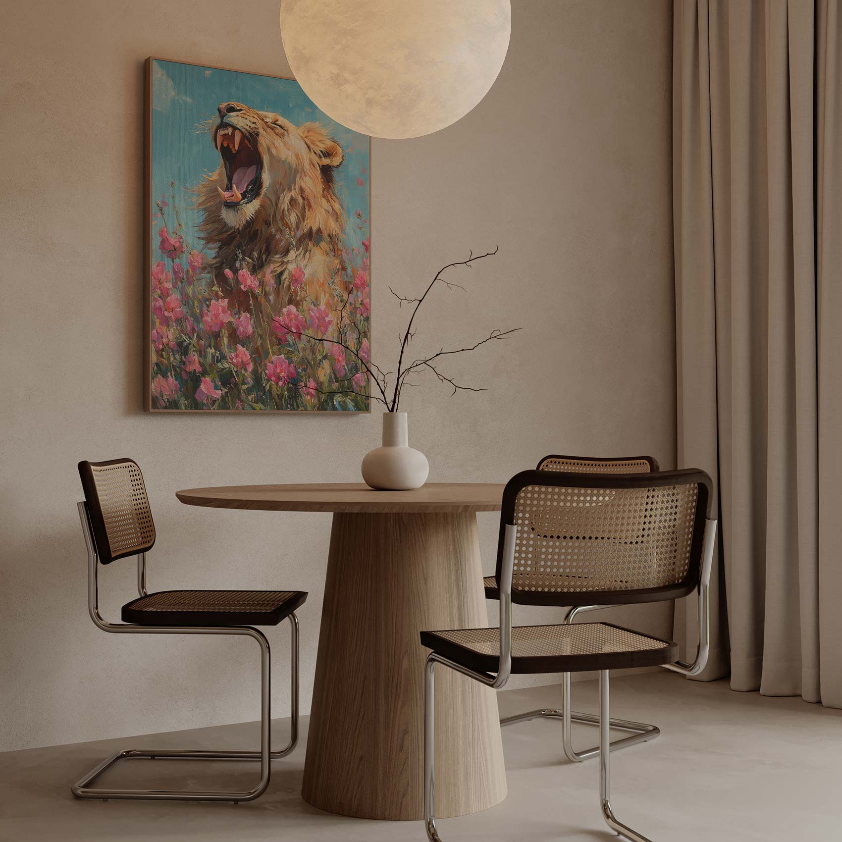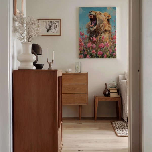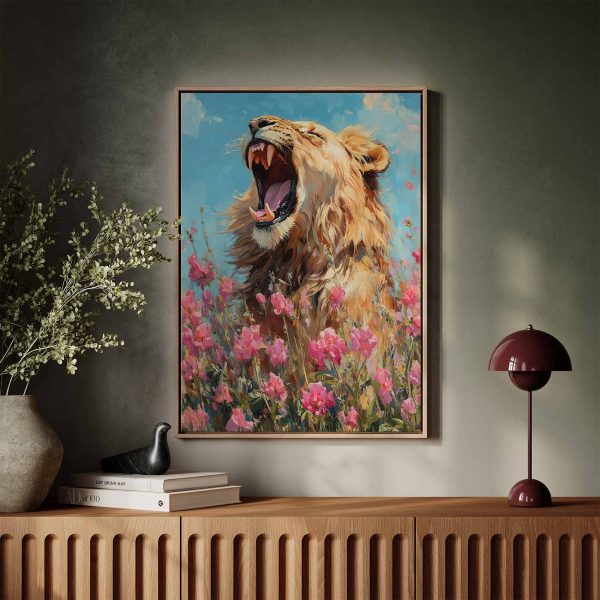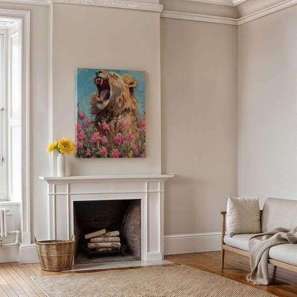 Terug naar collectie Canvas Levendige Leeuw in Bloemen