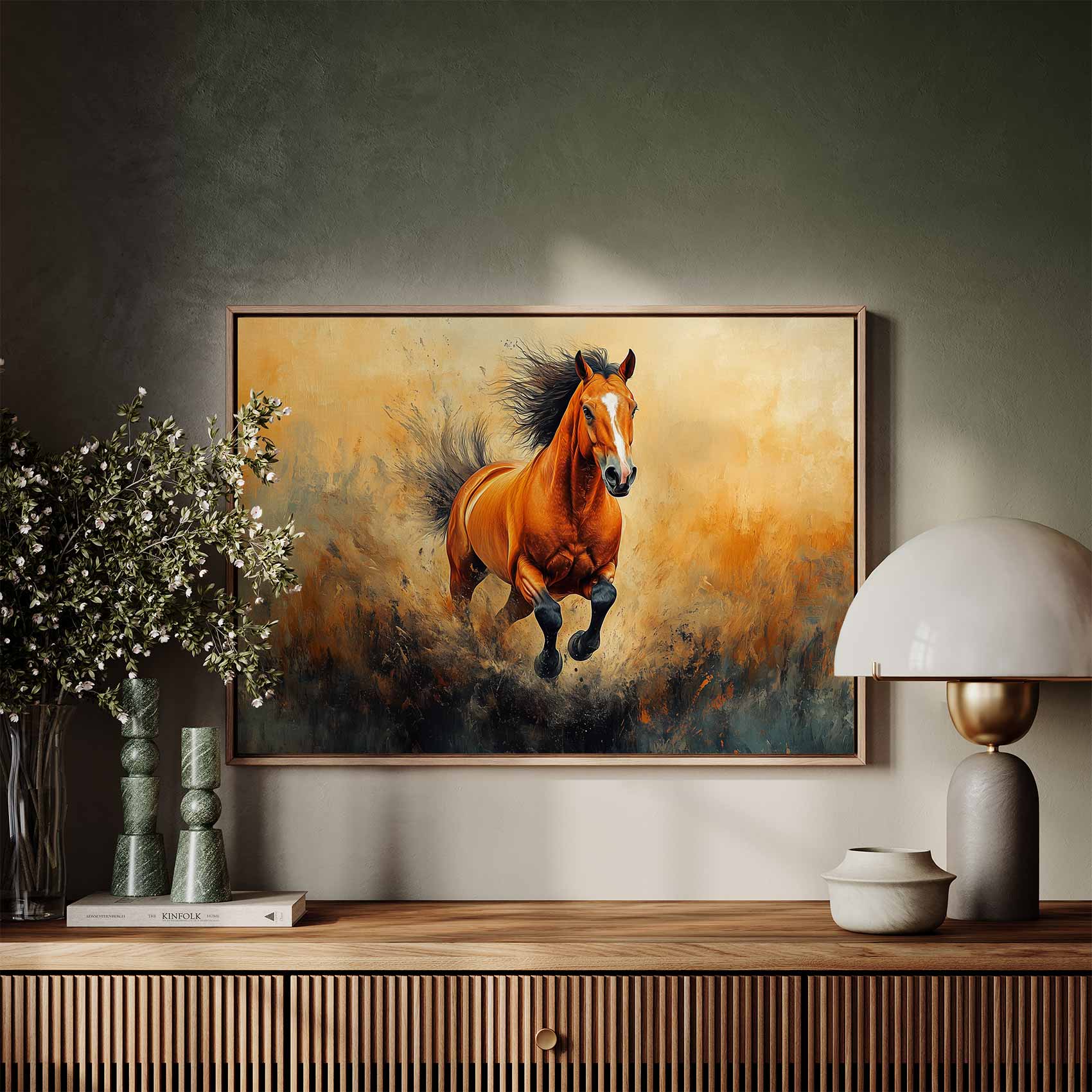 Levendige oranje galopperende paard