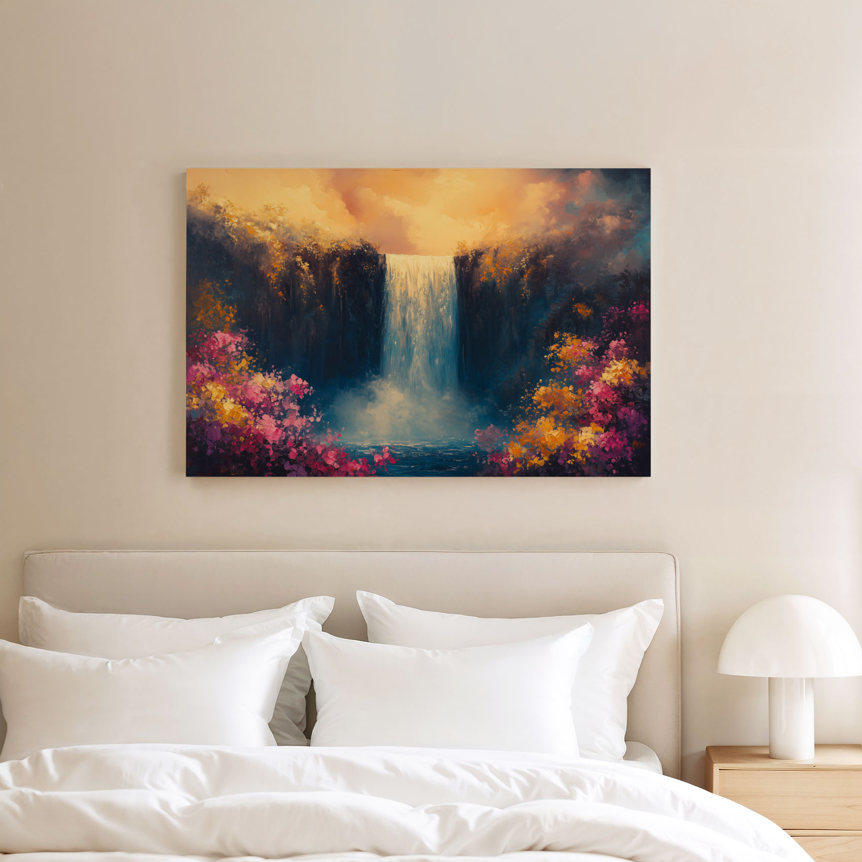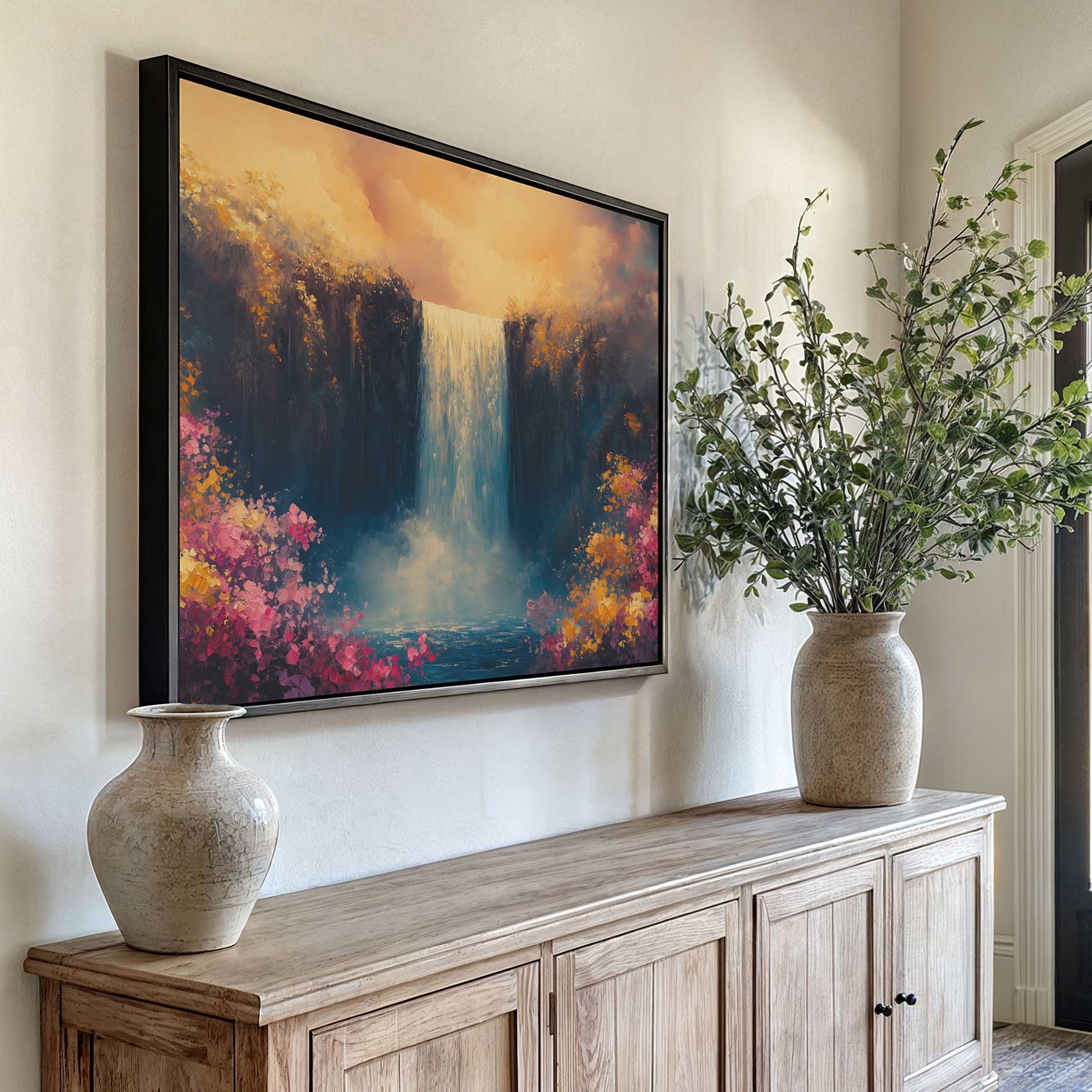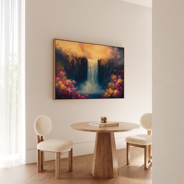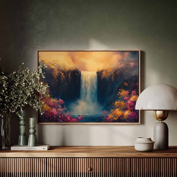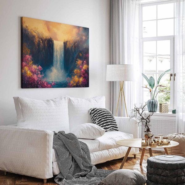 Levendige waterval bloemenschilderij