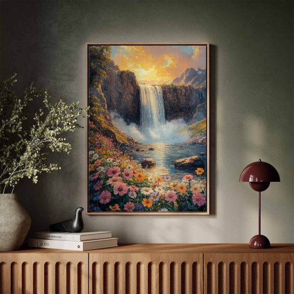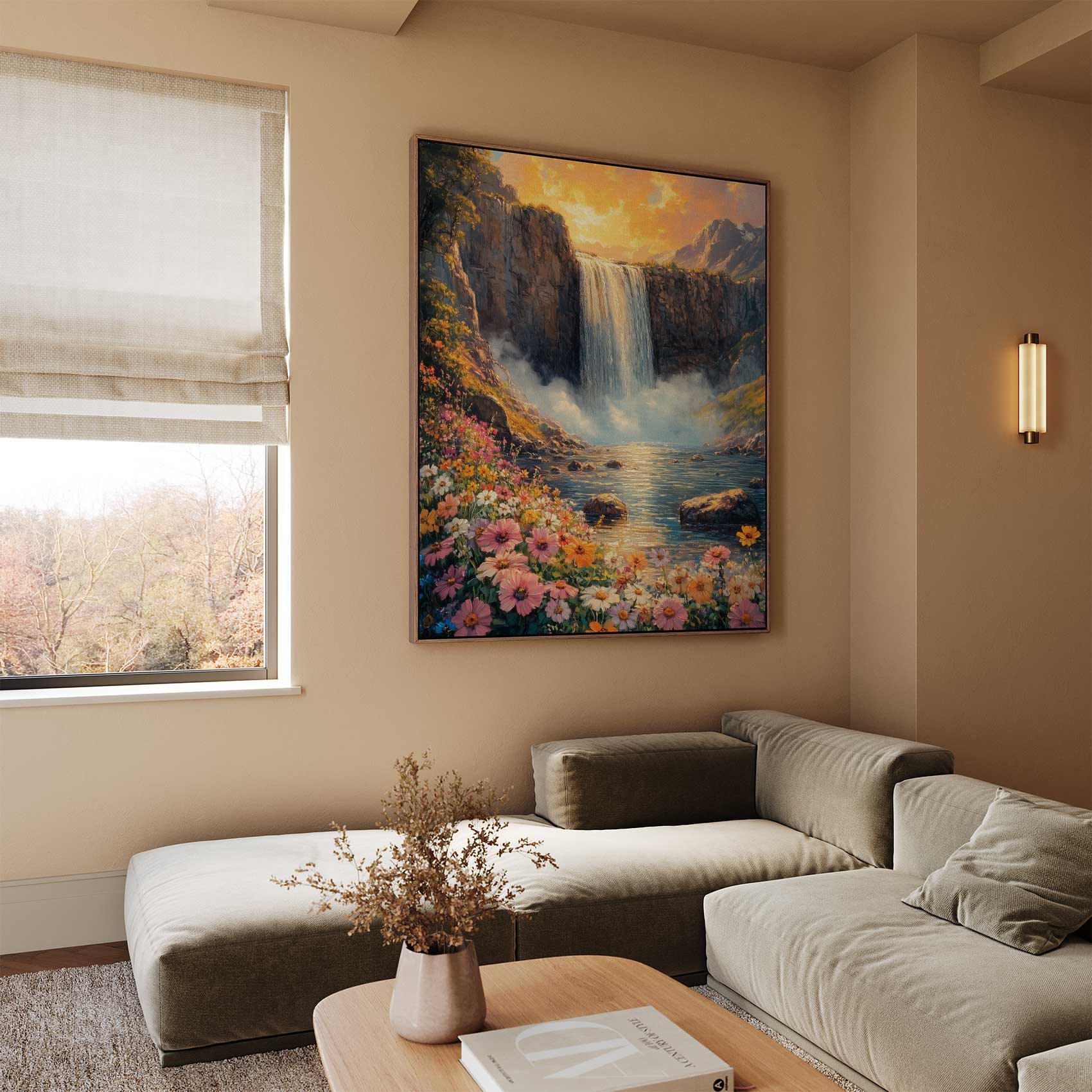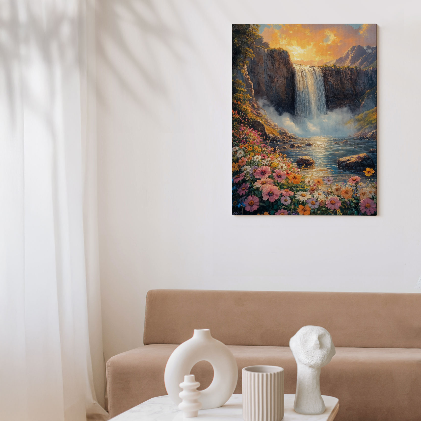Terug naar collectie Canvas Levendige watervalbloemenpracht