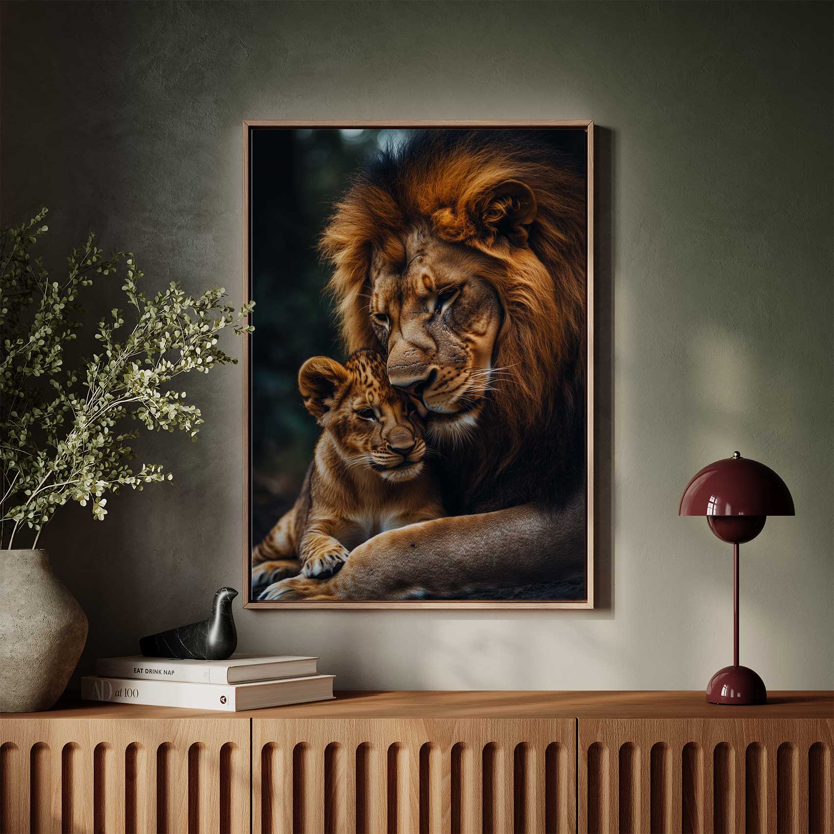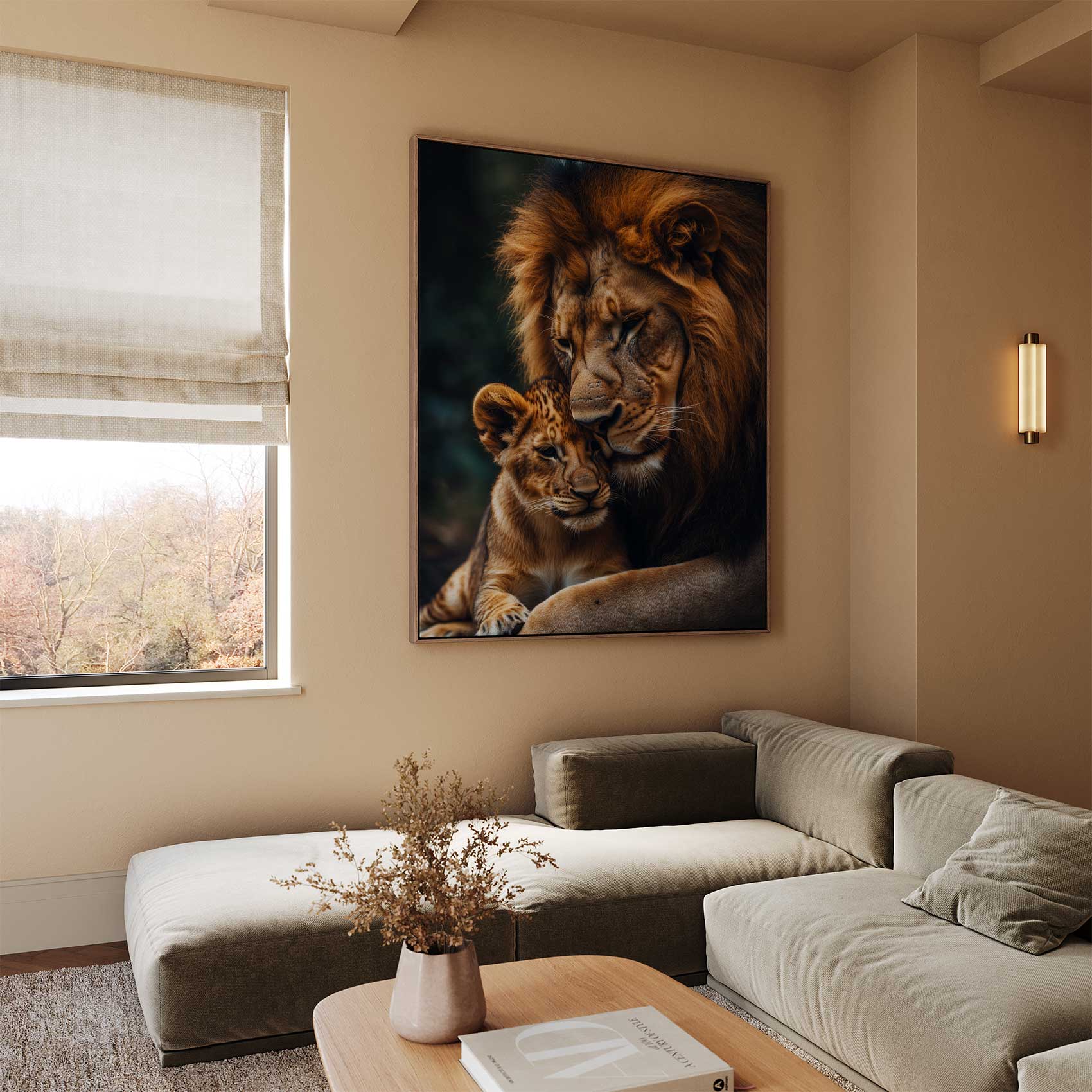 Liefdevolle leeuwen in bos