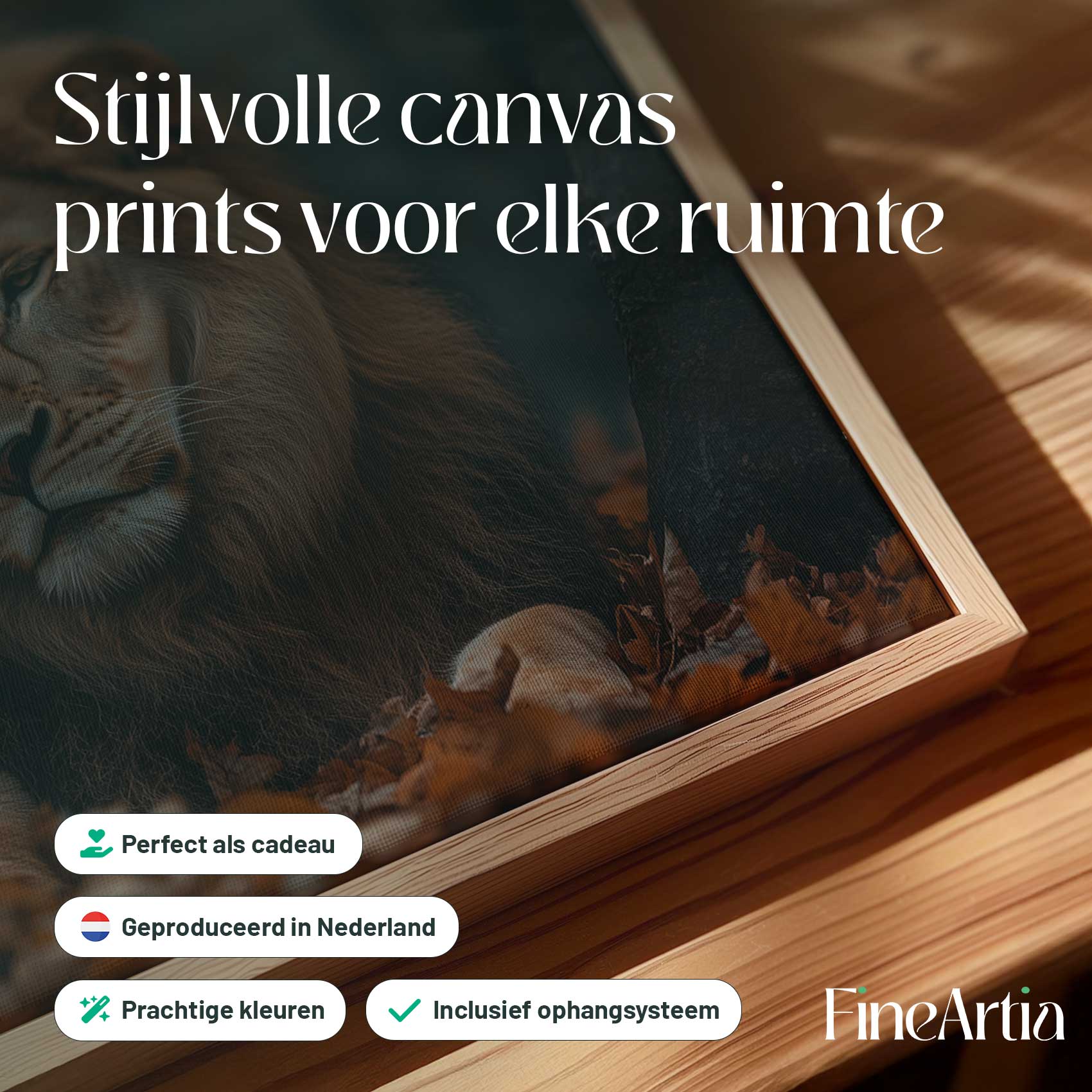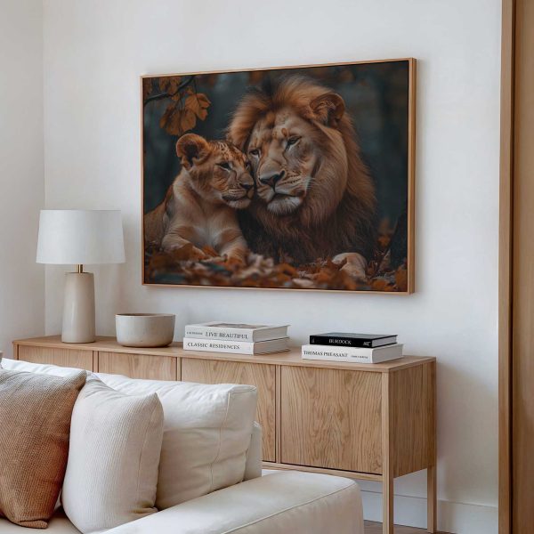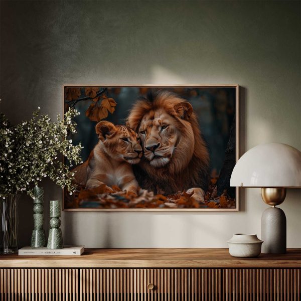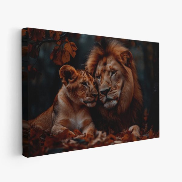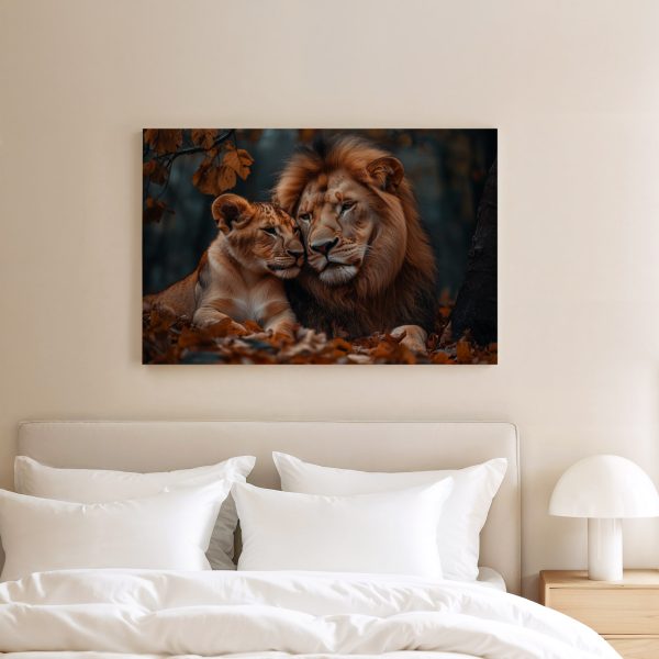 Terug naar collectie Canvas Liefdevolle leeuwenband in herfst