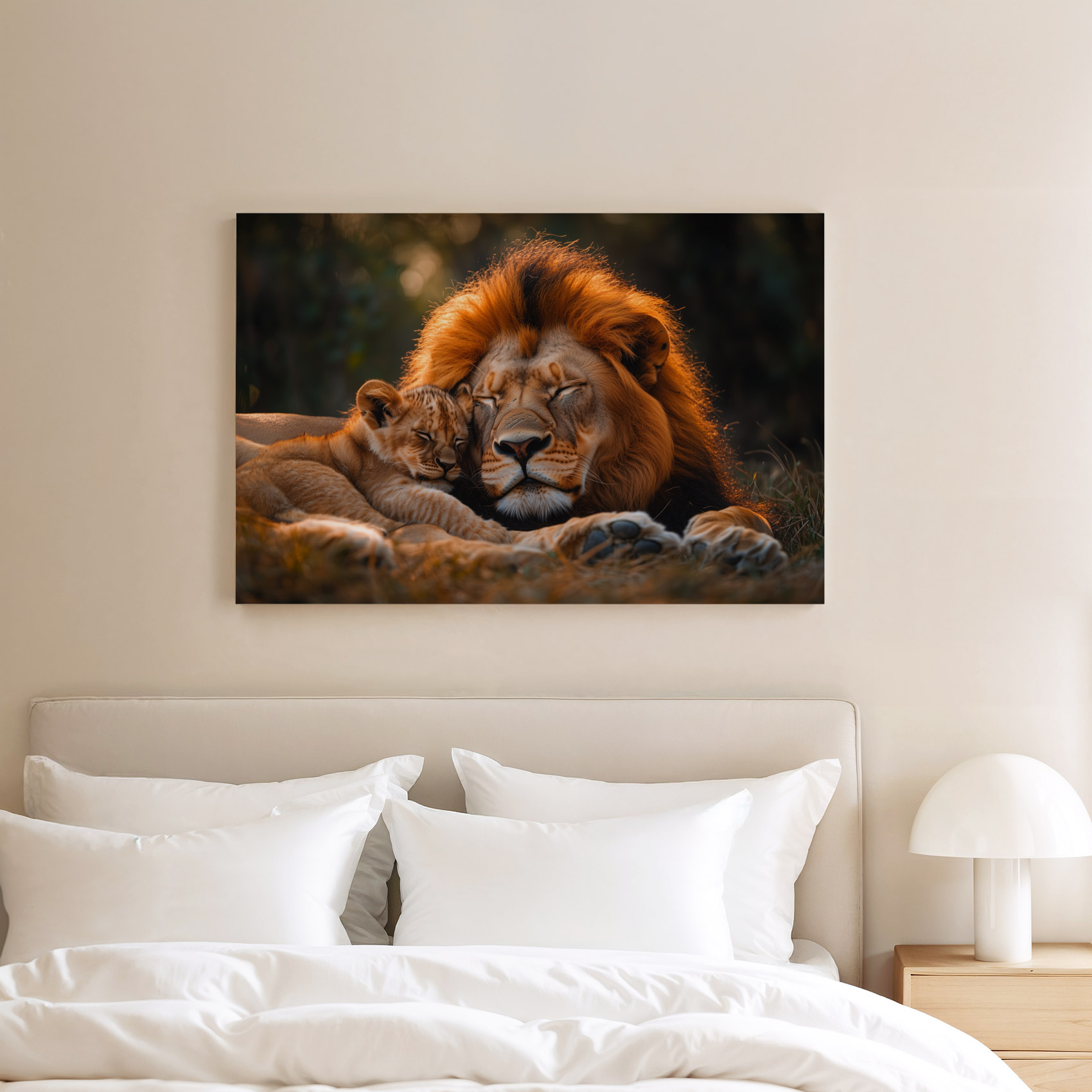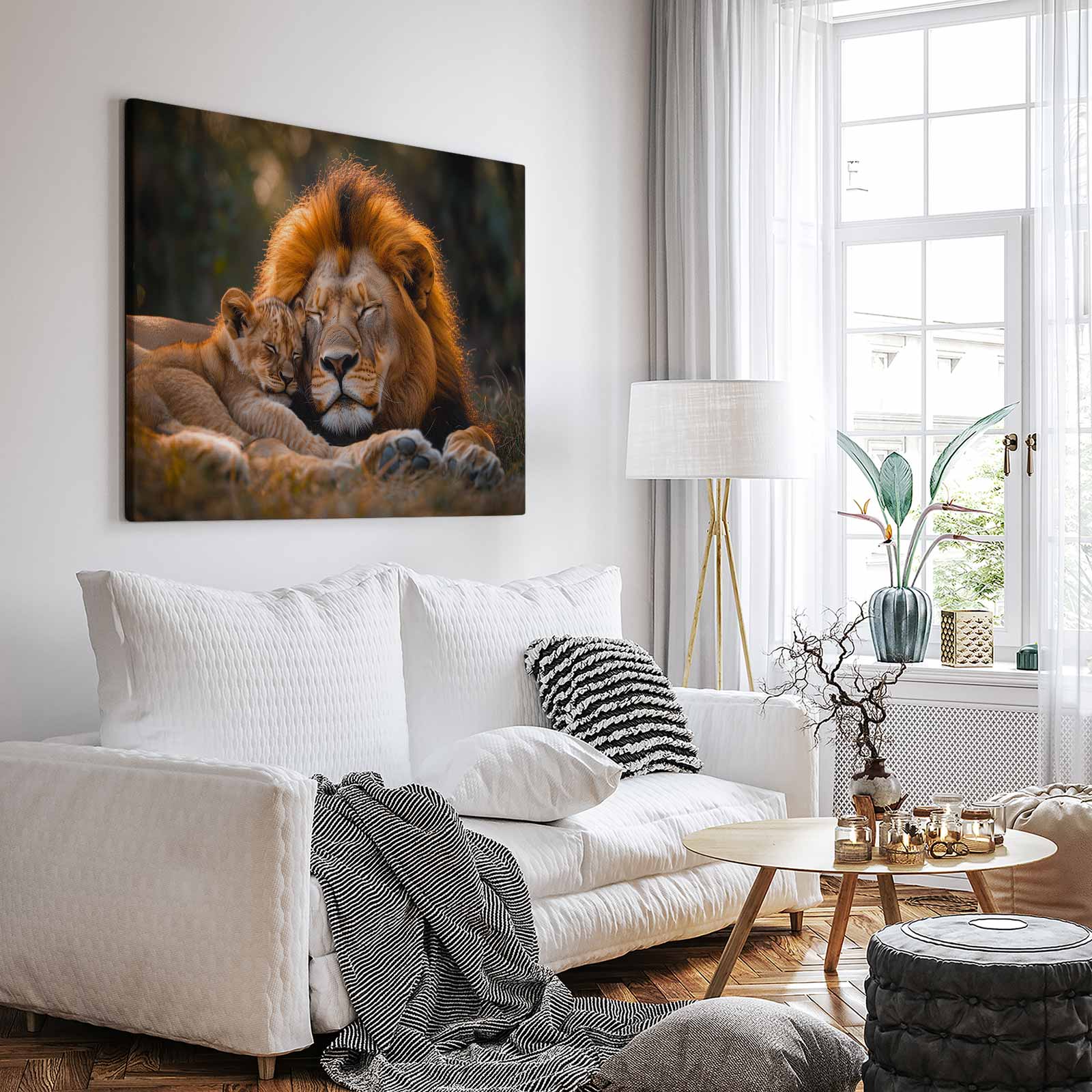 Terug naar collectie Canvas Liefdevolle leeuwenrust