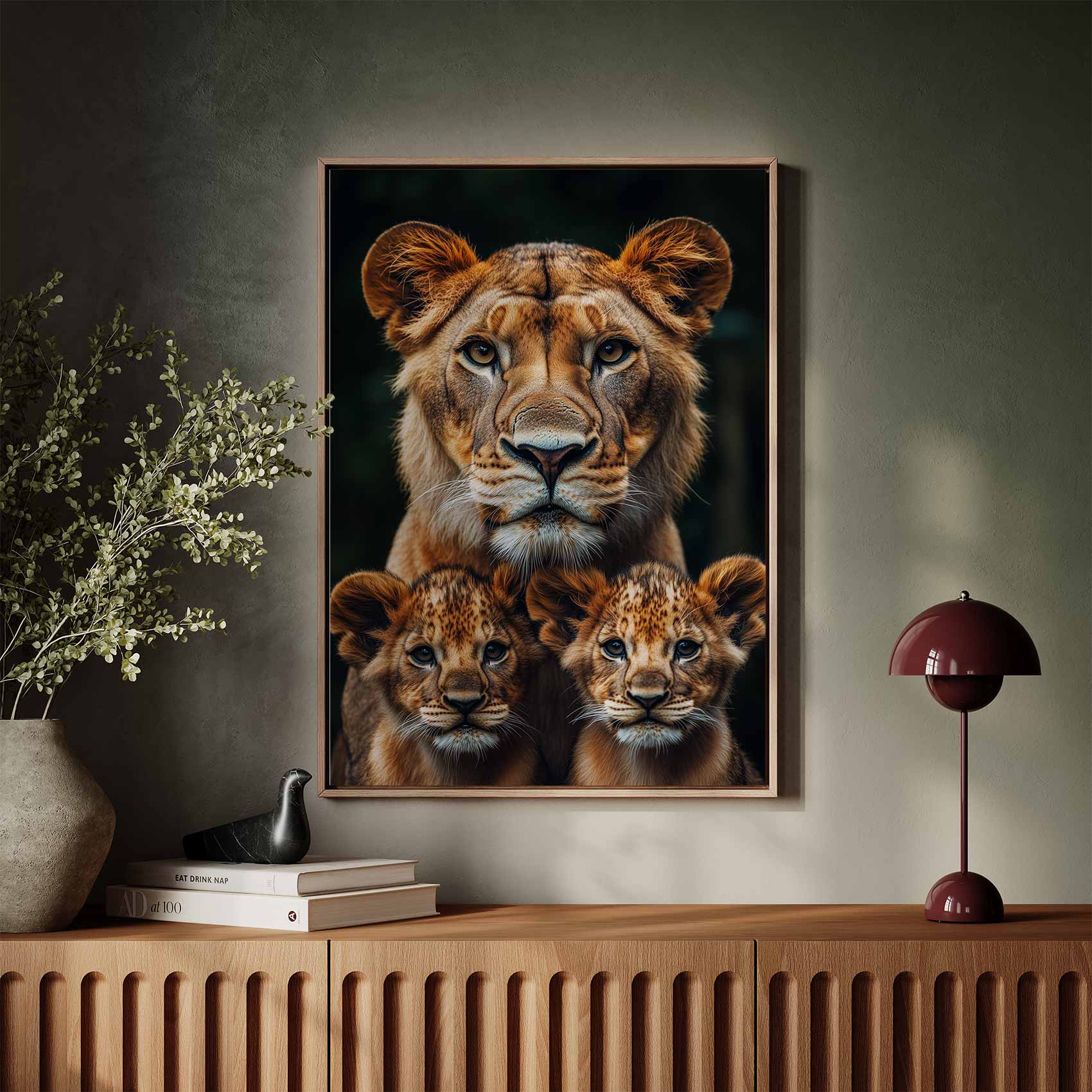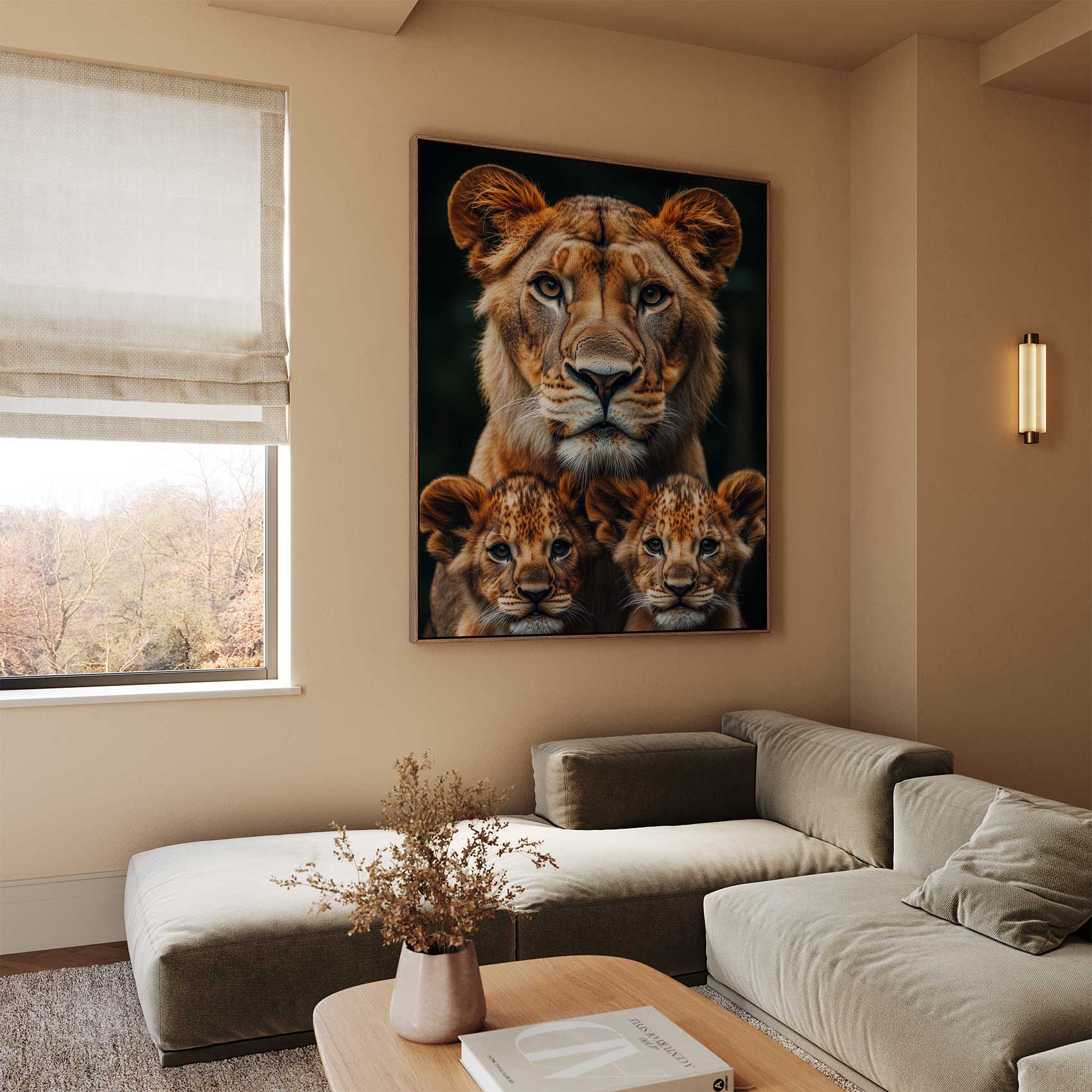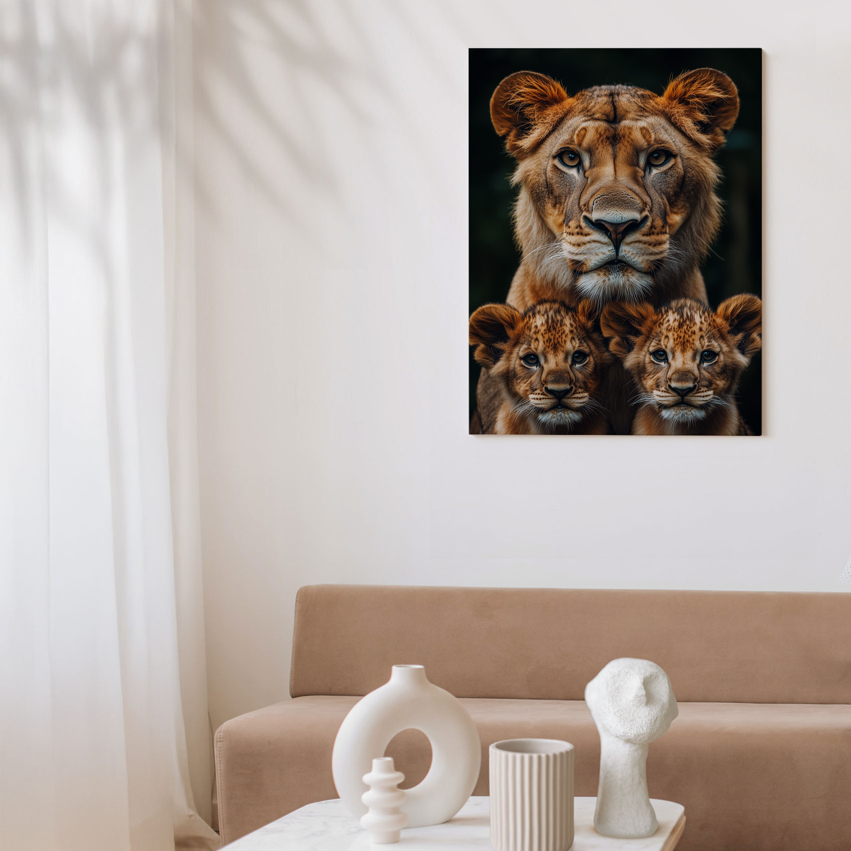Terug naar collectie Canvas Lioness en welpen familieportret