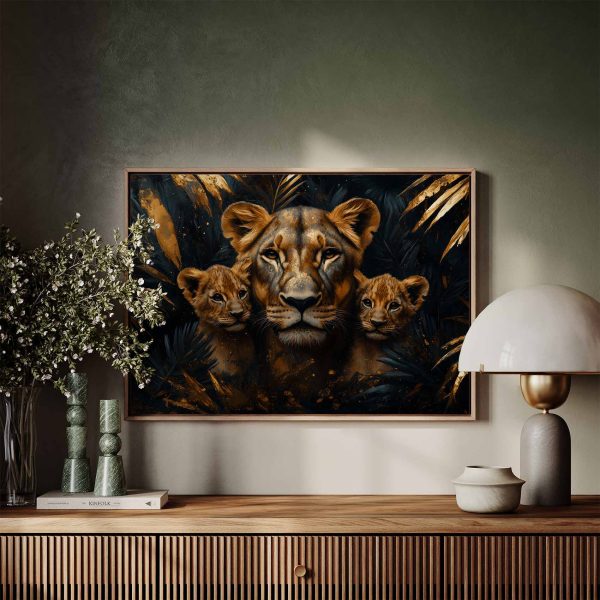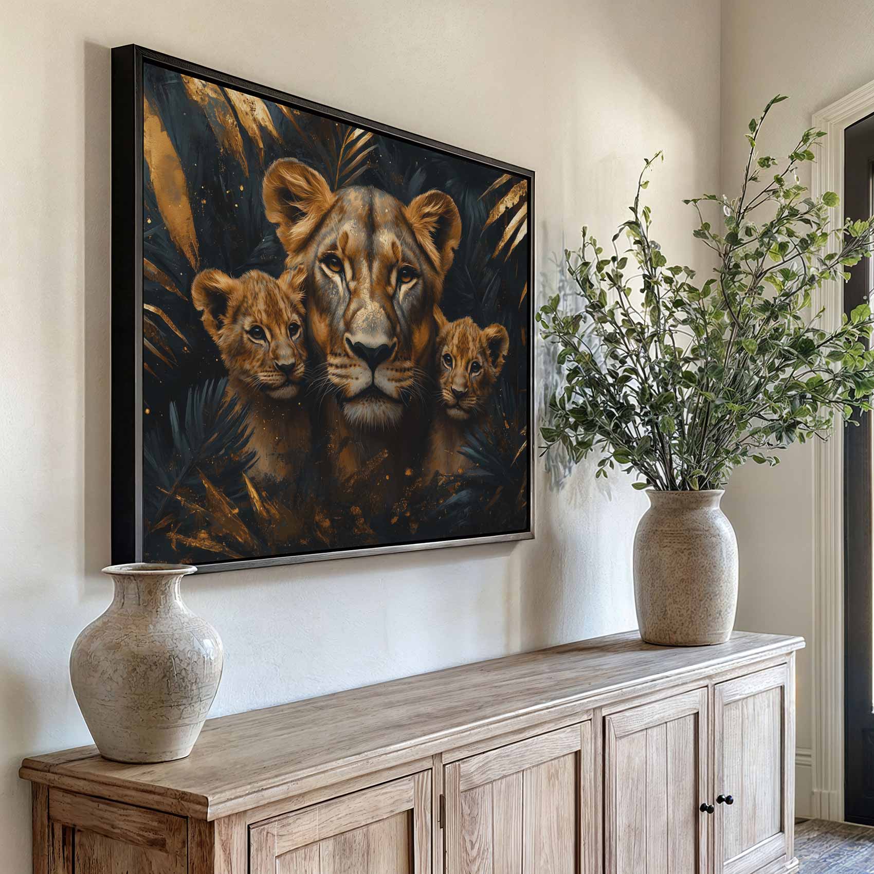 Terug naar collectie Canvas Lioness met welpen in jungle