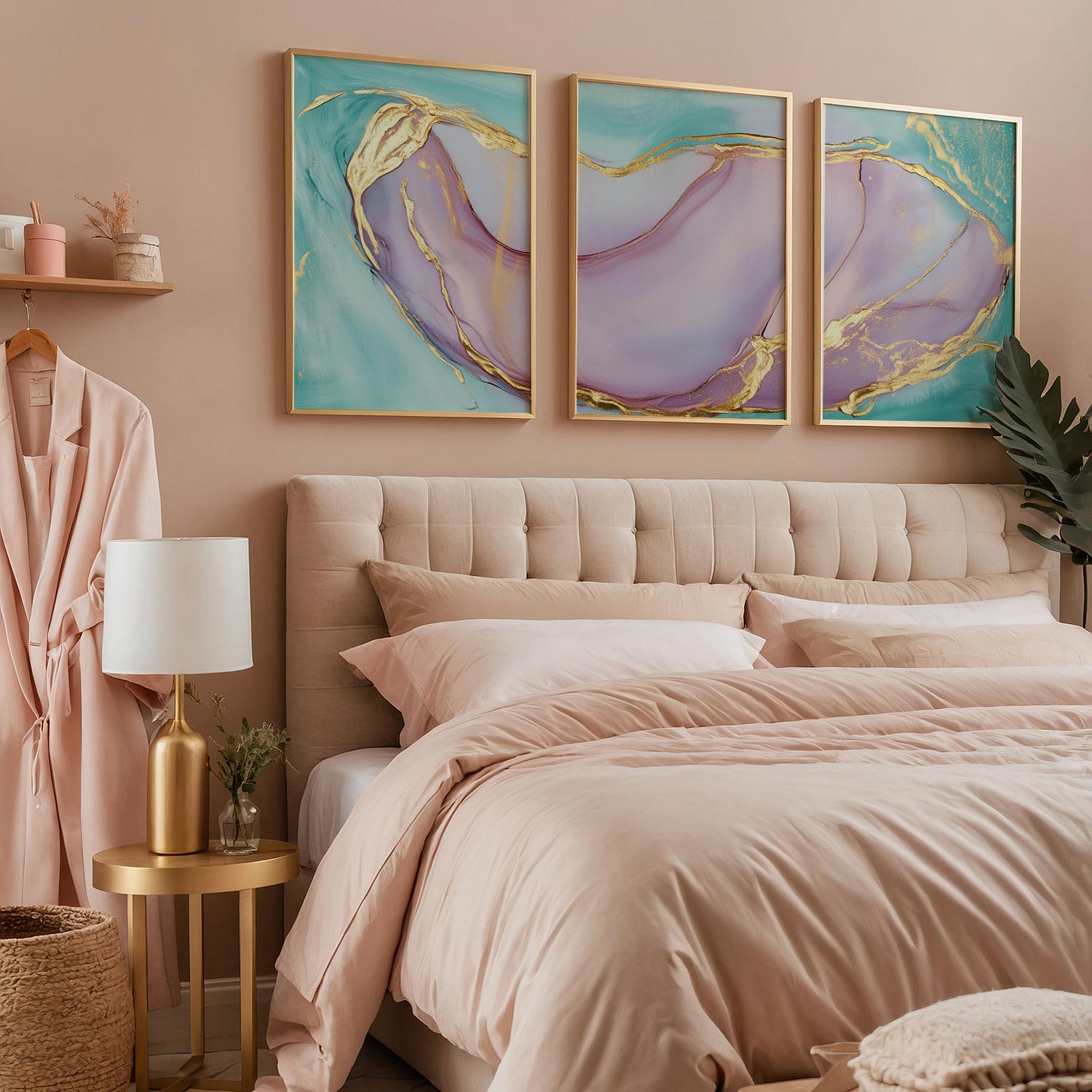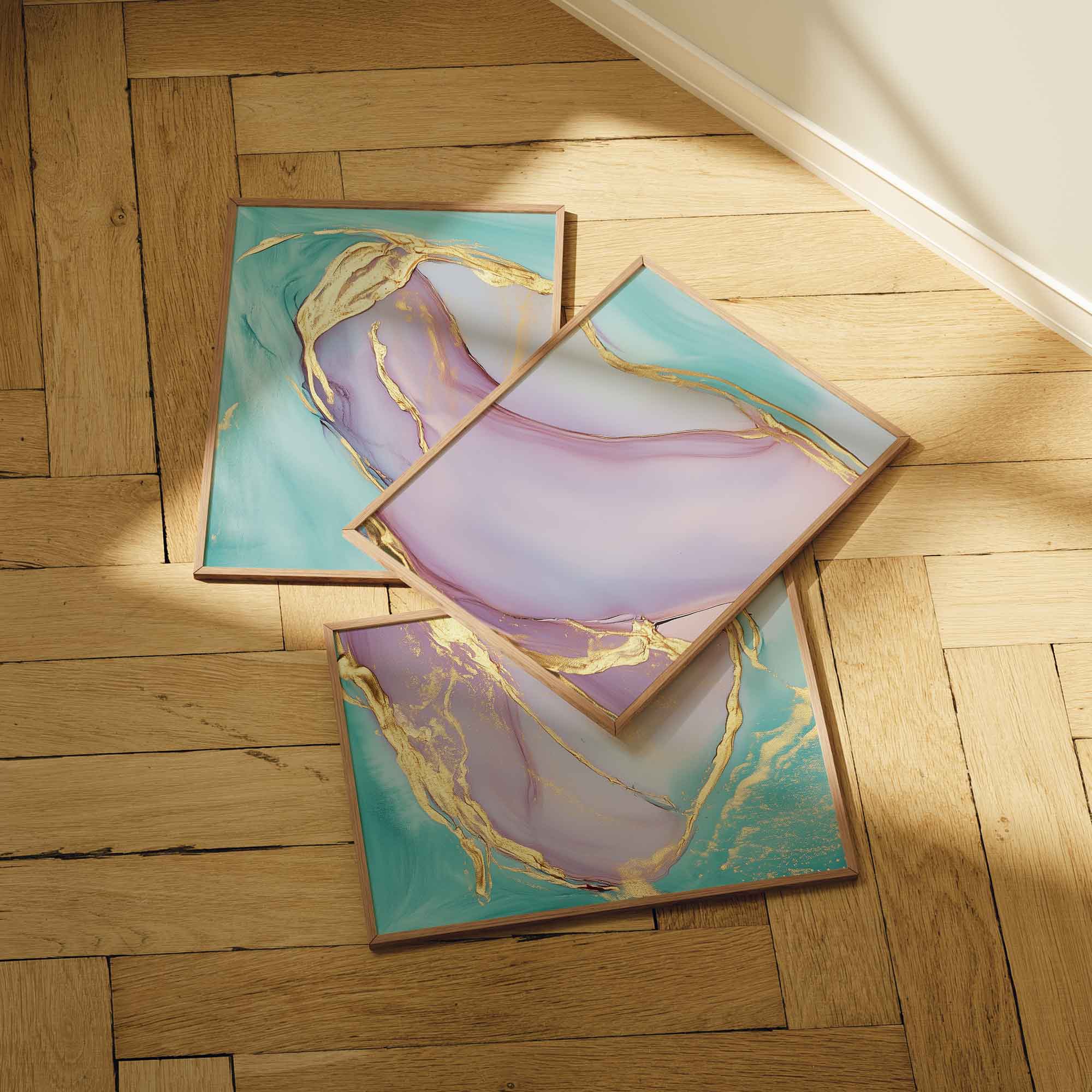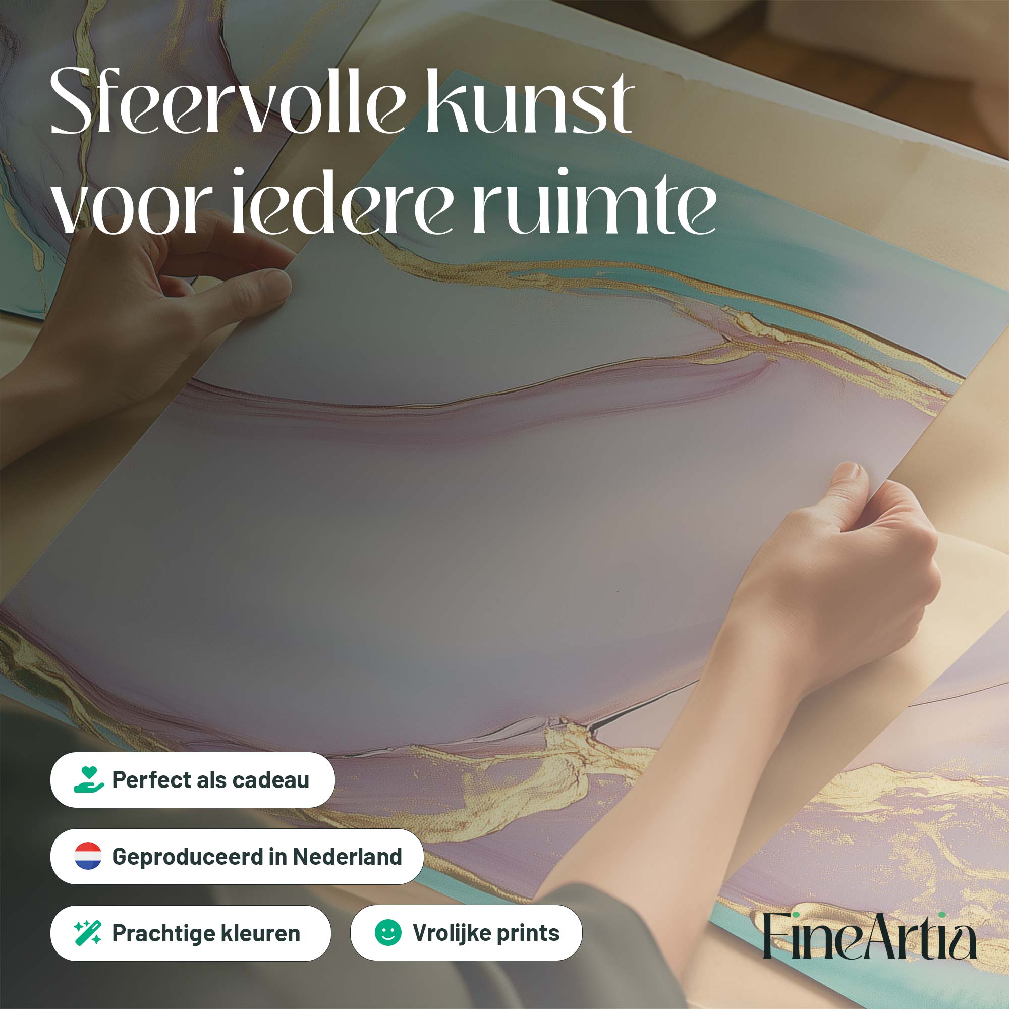 Luxe Gouden Hart in Blauw-Paarse Abstracte Sfeer