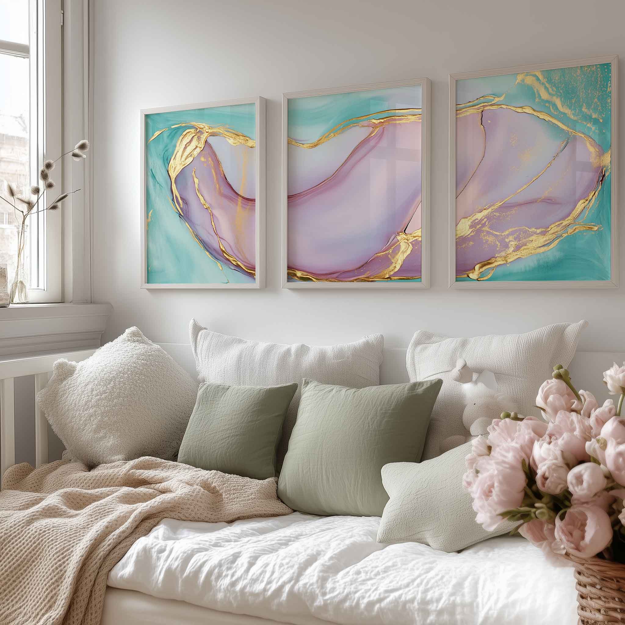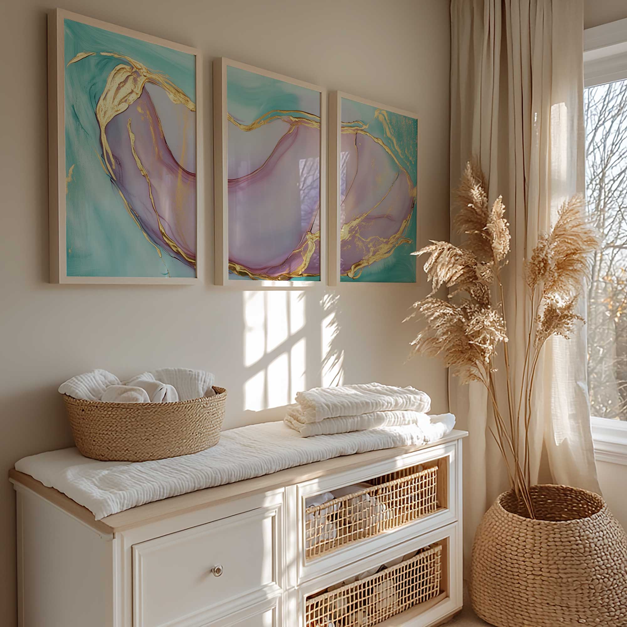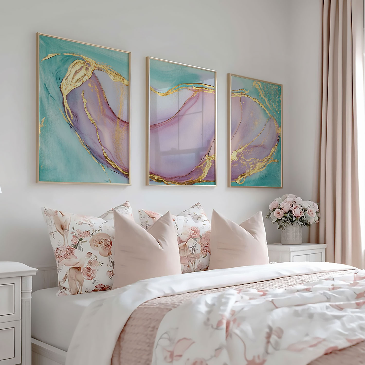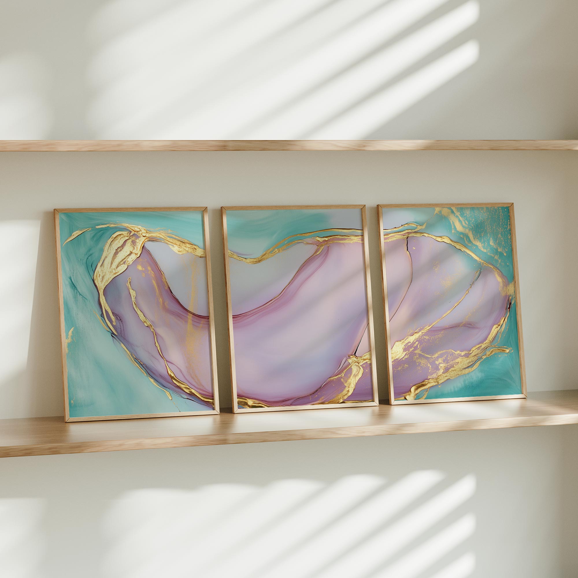 Luxe Gouden Hart in Blauw-Paarse Abstracte Sfeer