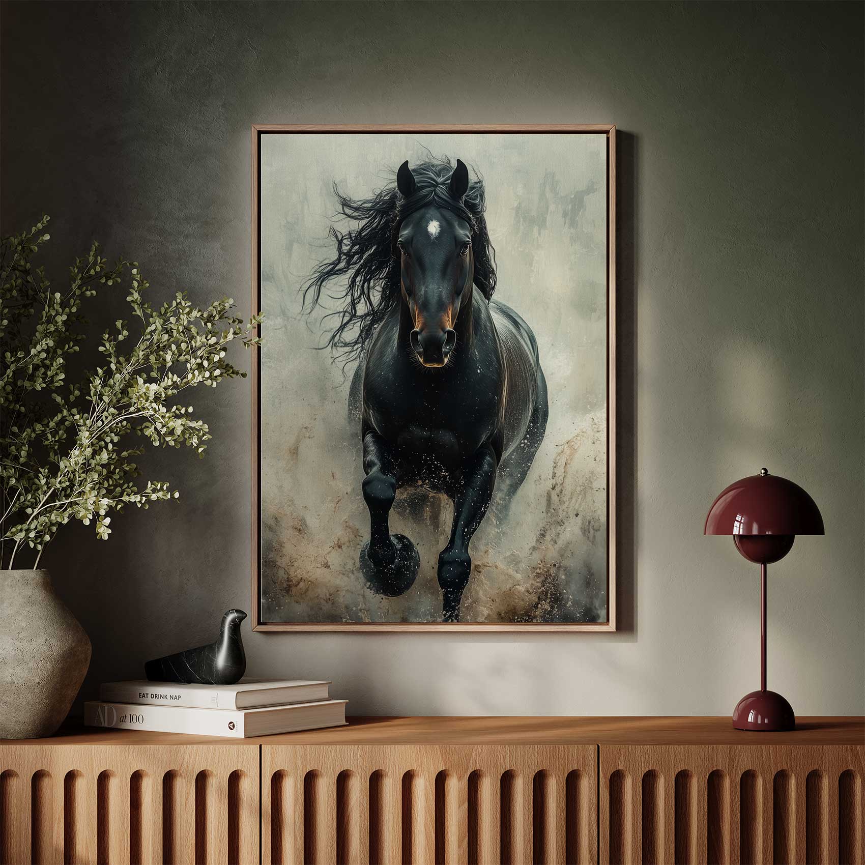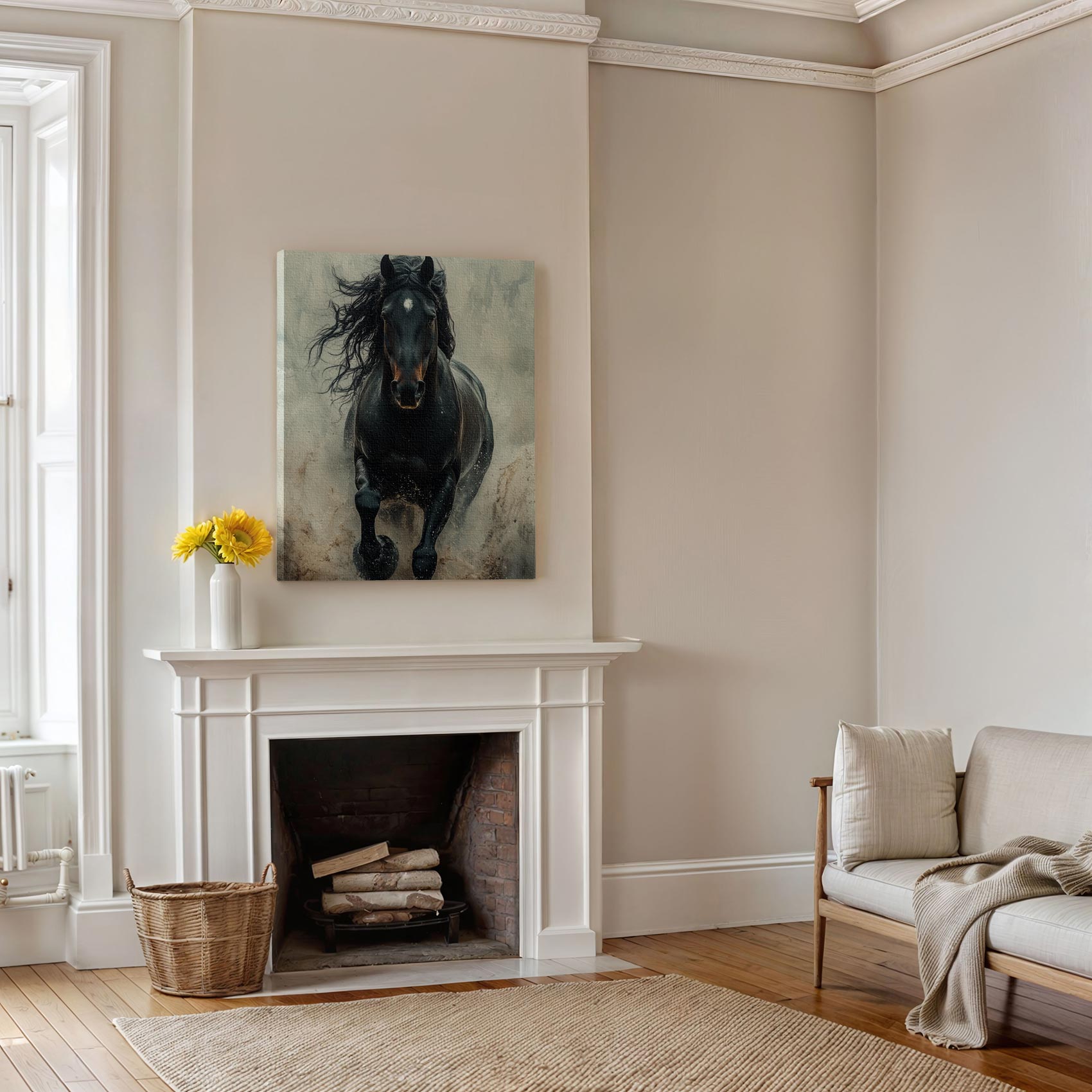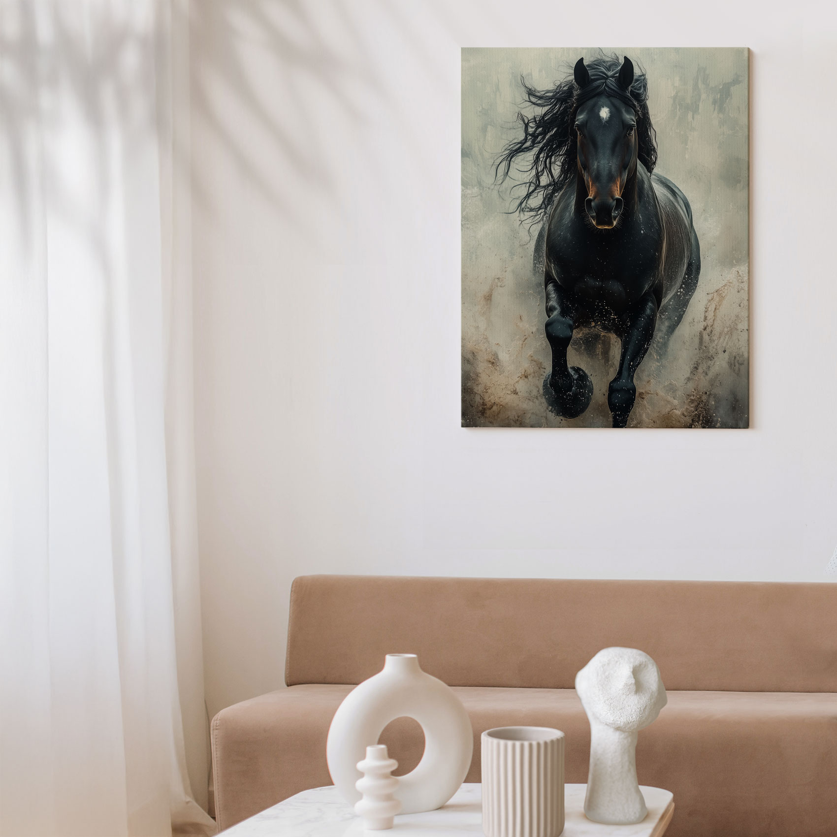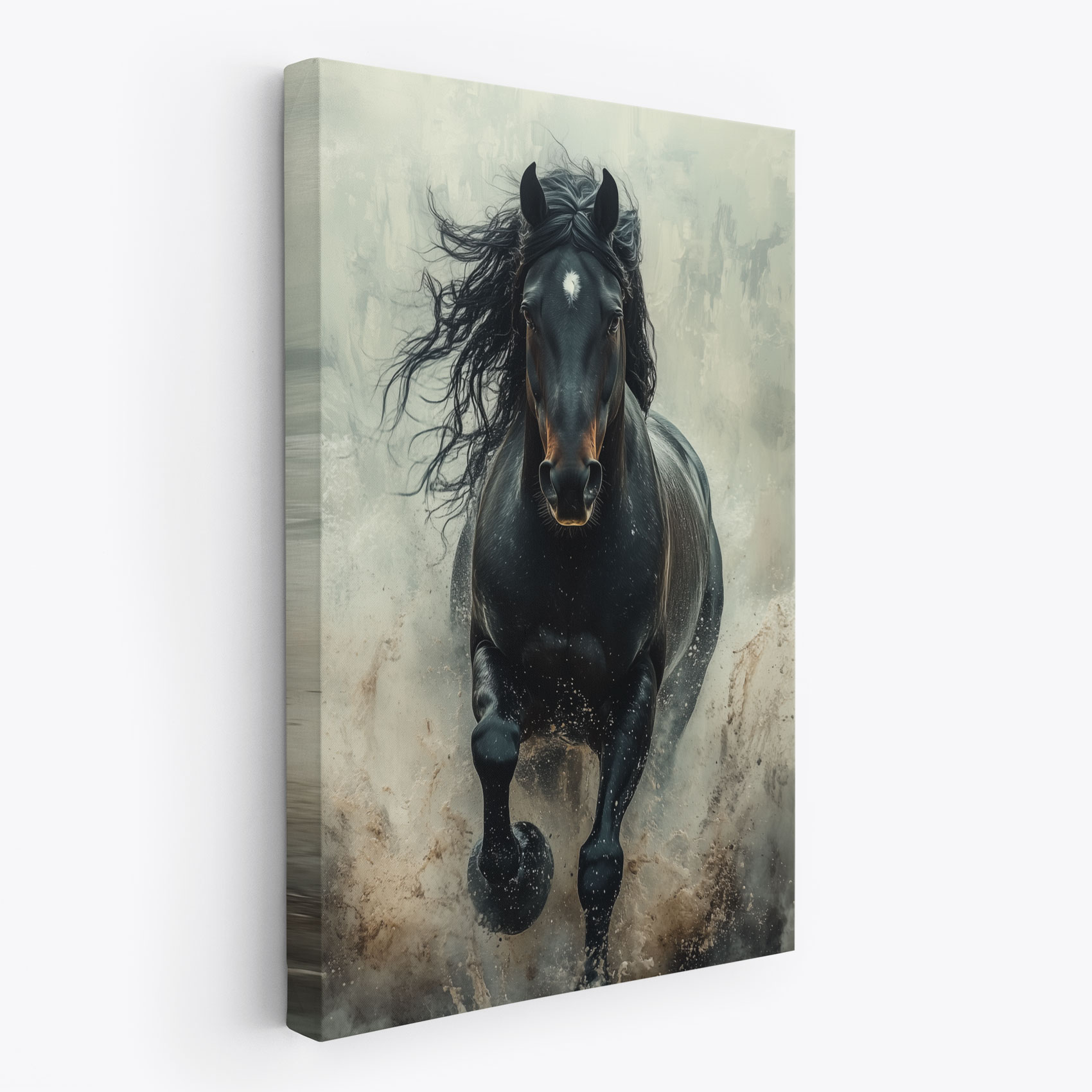 Terug naar collectie Canvas Machtige galopperende zwarte paard