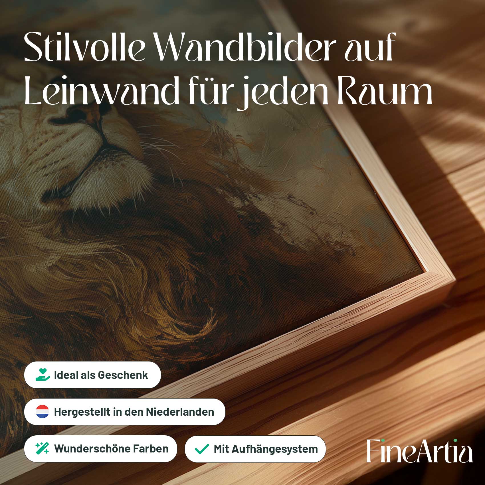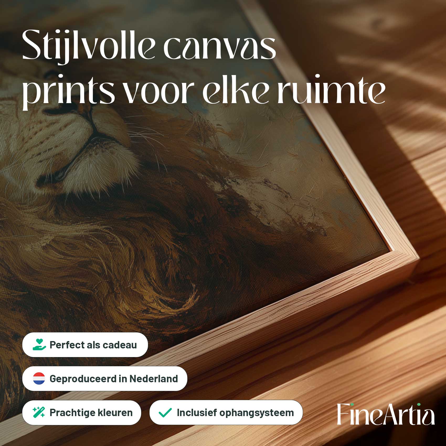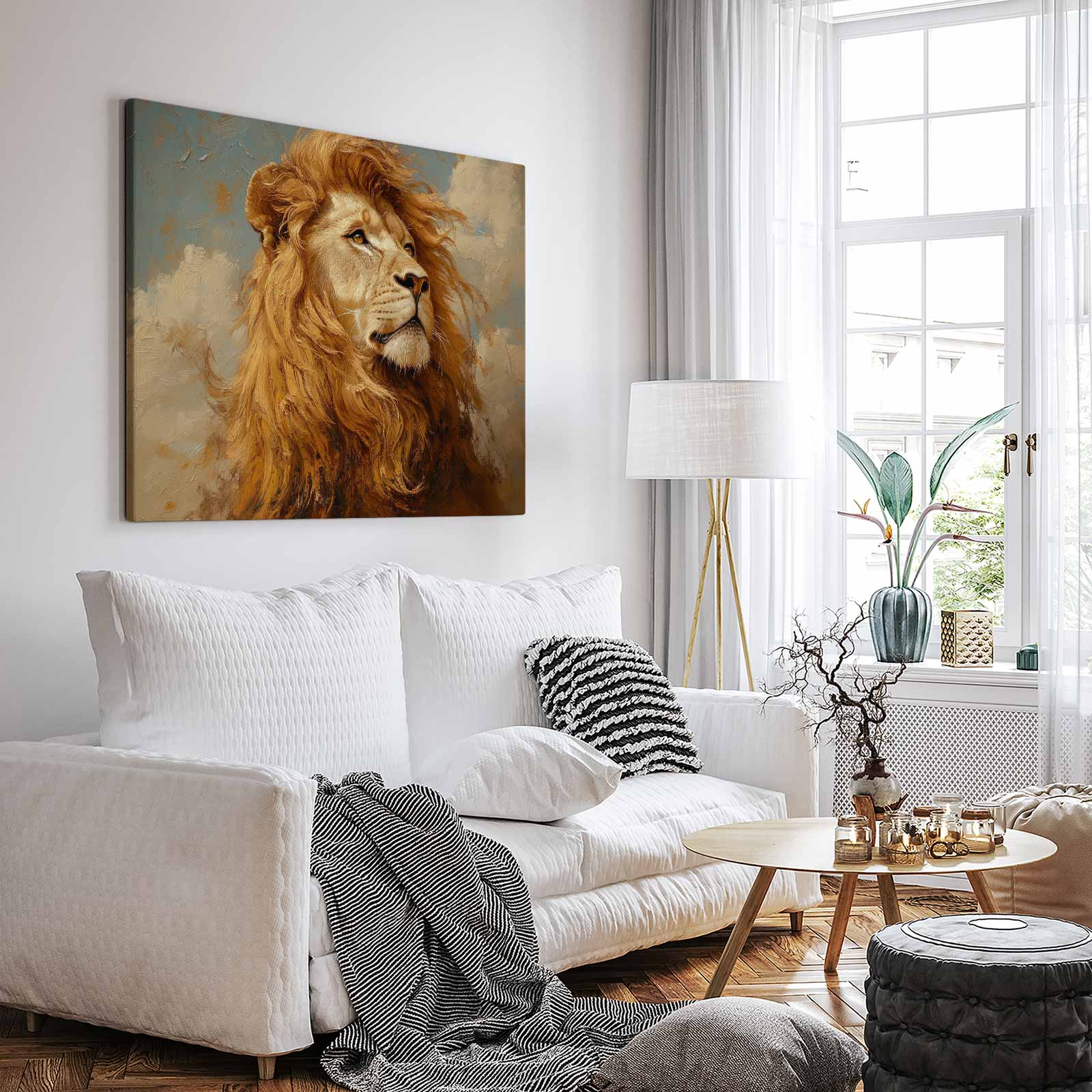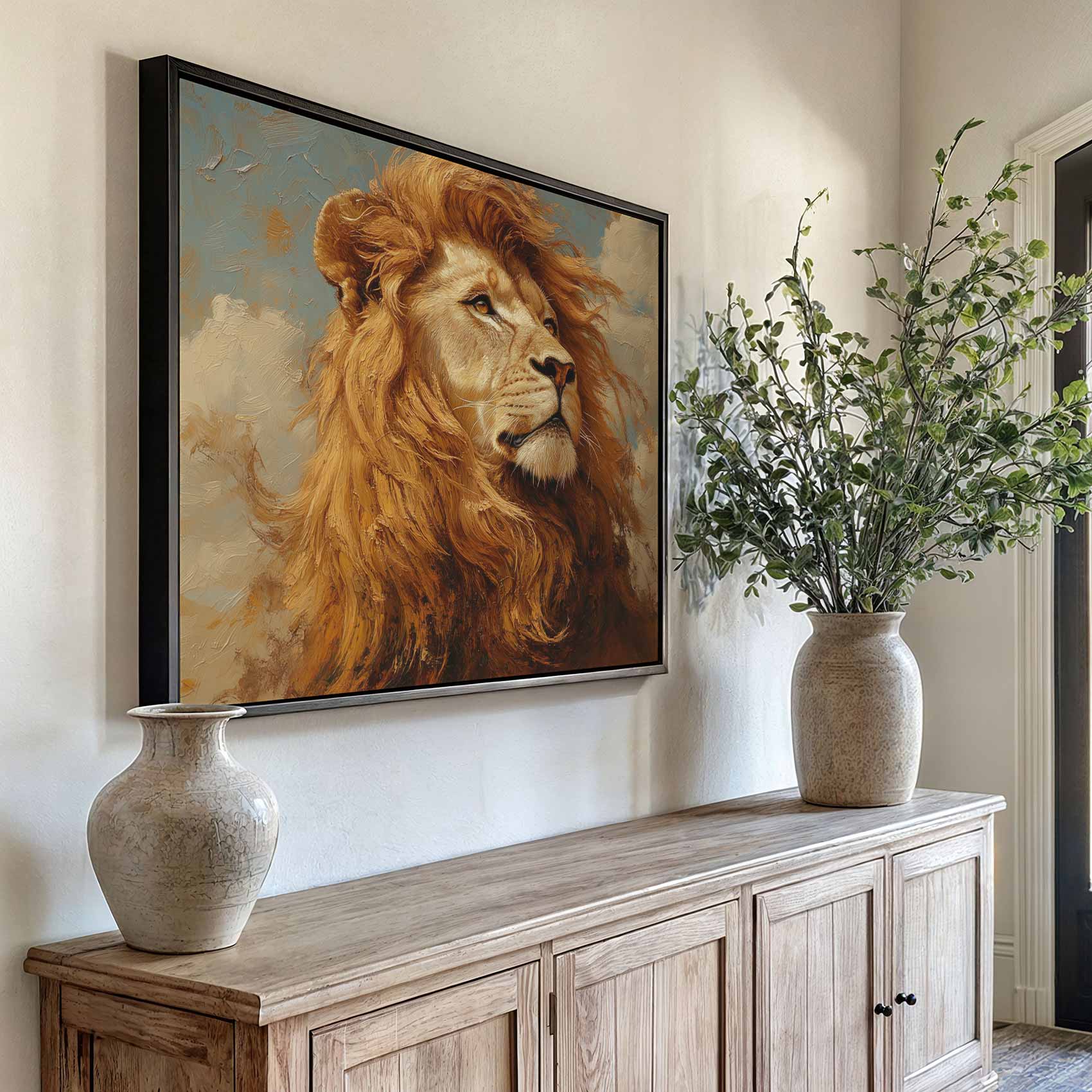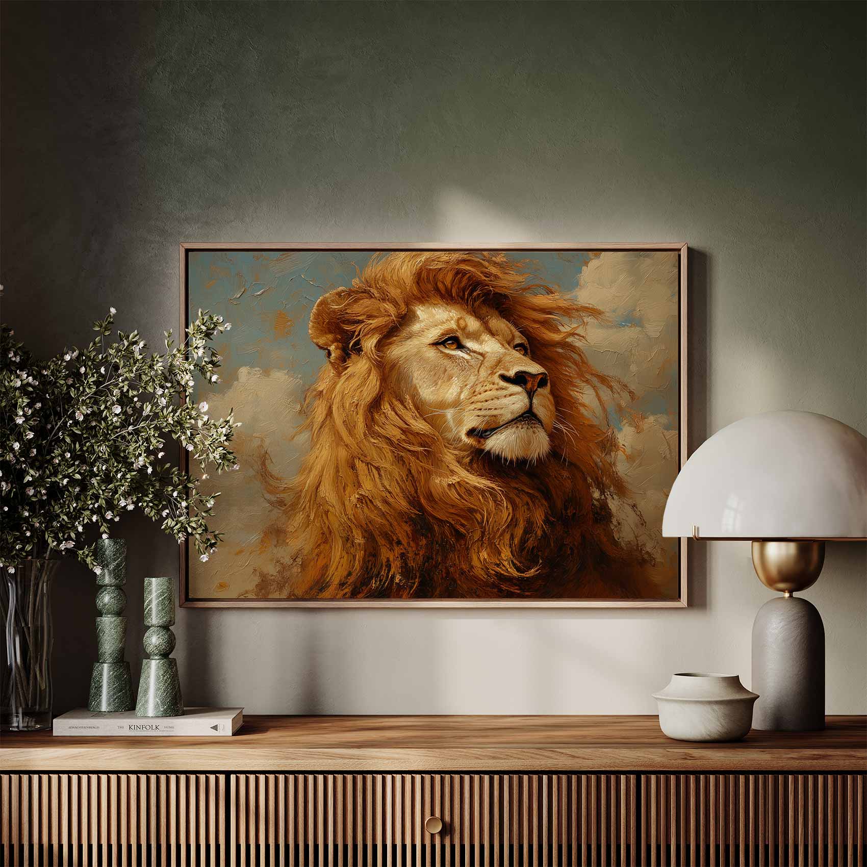 Machtige gouden leeuwschilderij