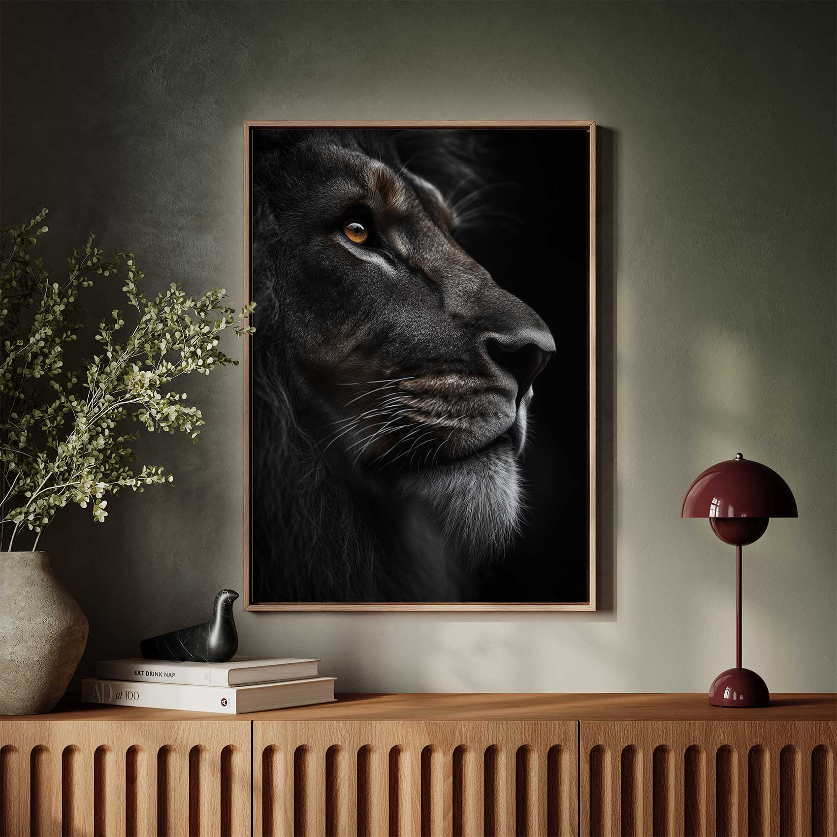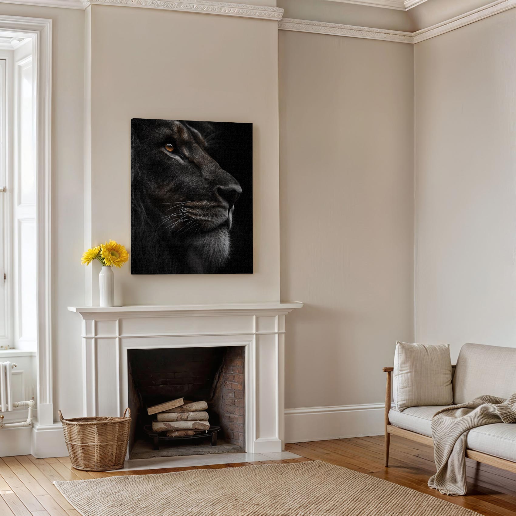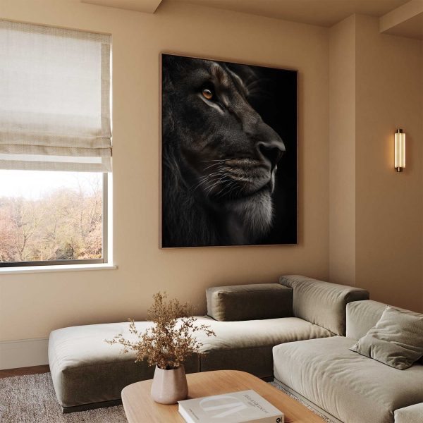 Terug naar collectie Canvas Machtige leeuwenblik close-up