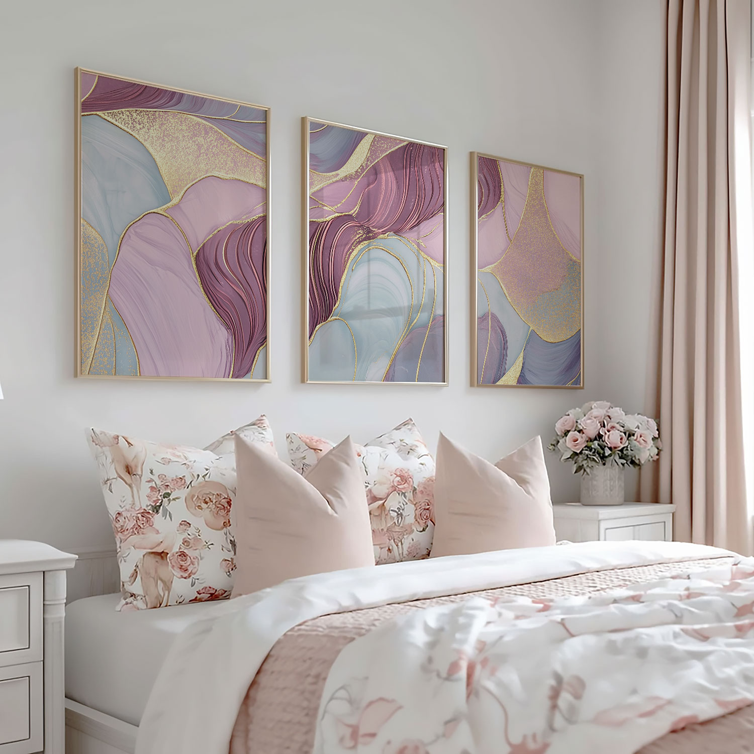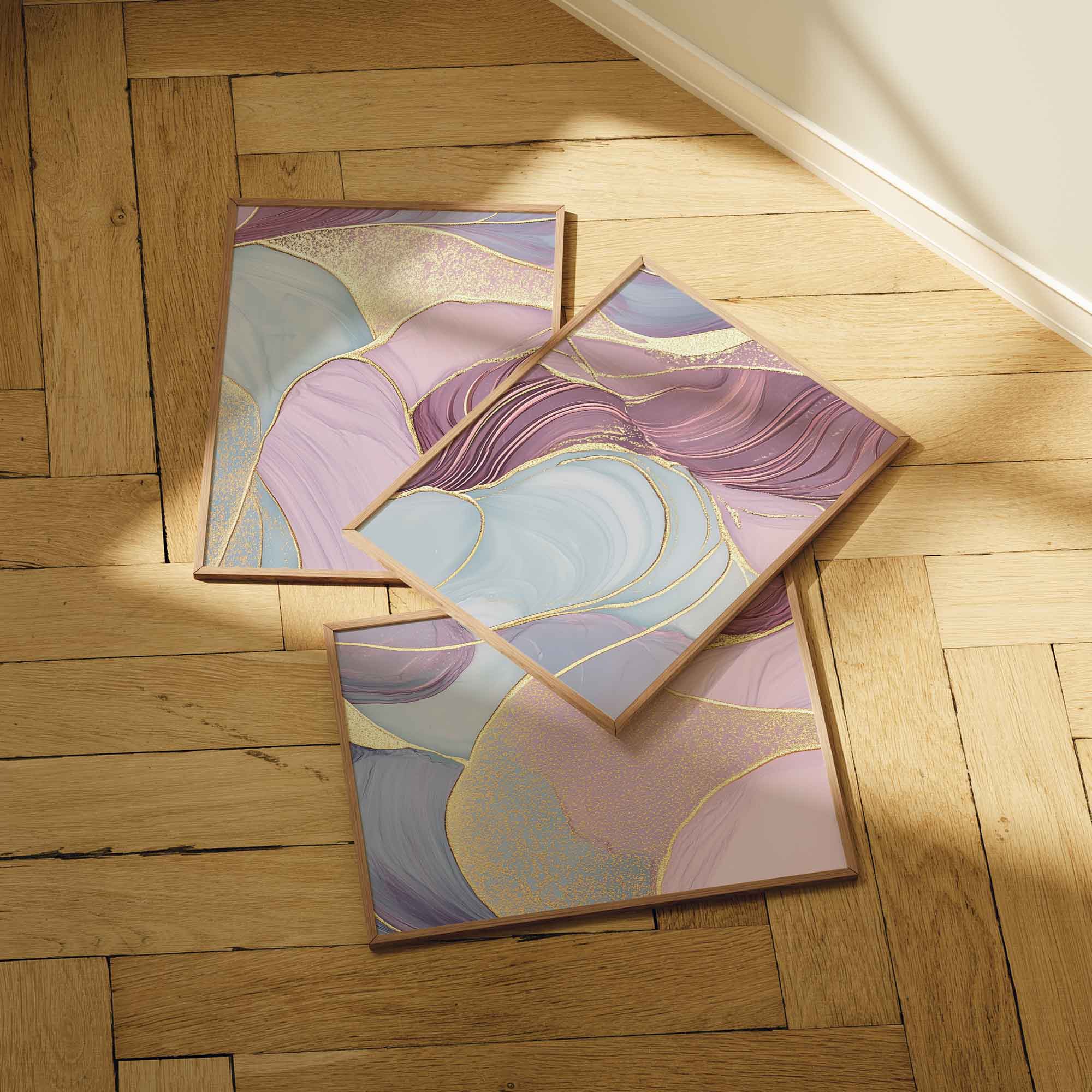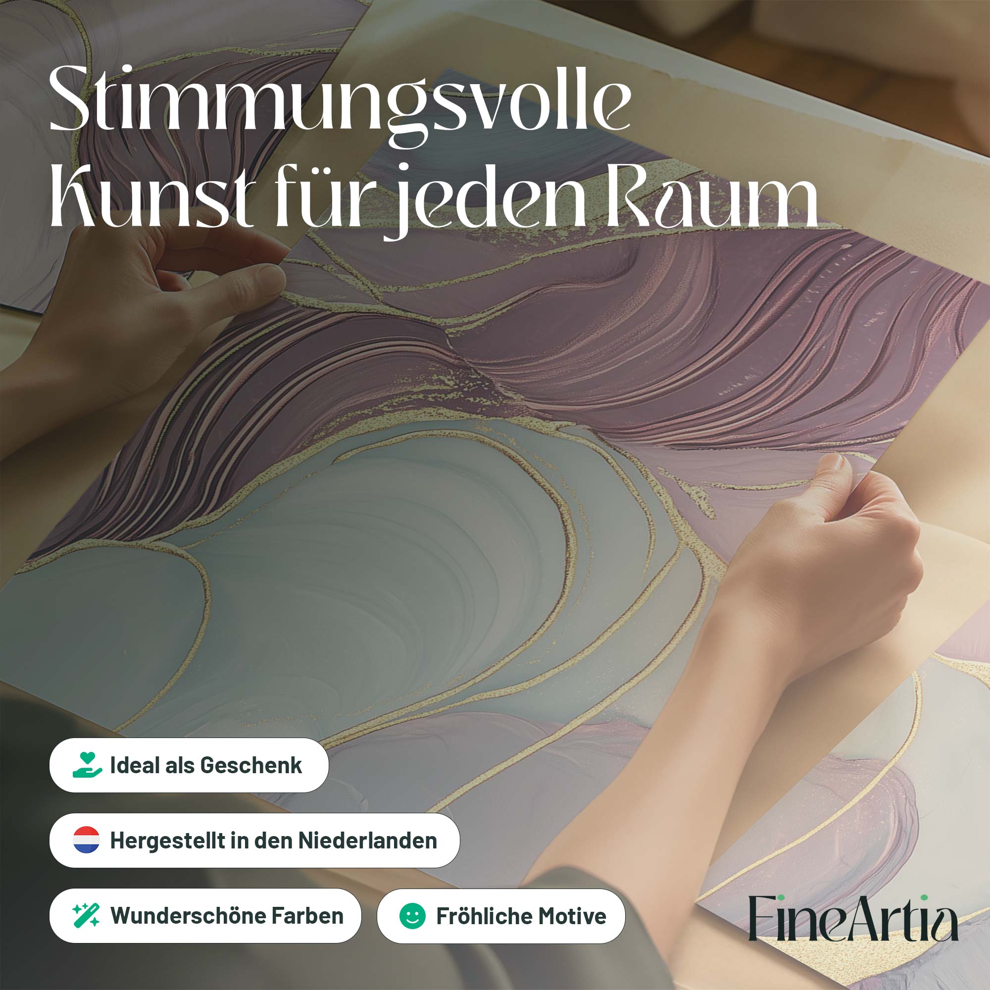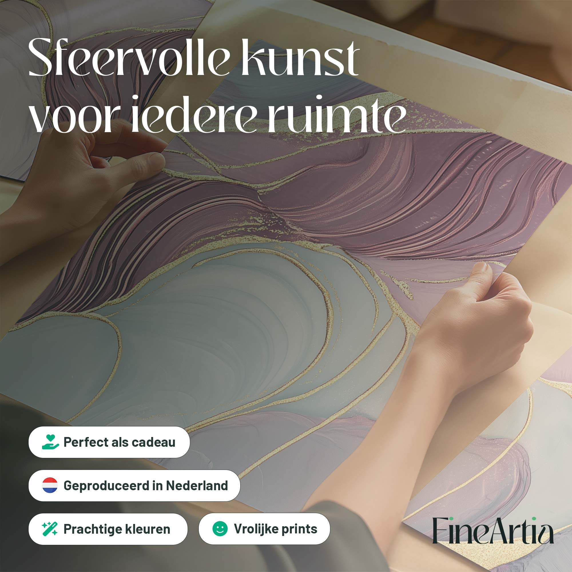 Magisch Abstract: Roze, Blauw & Paars met Gouden Elegantie