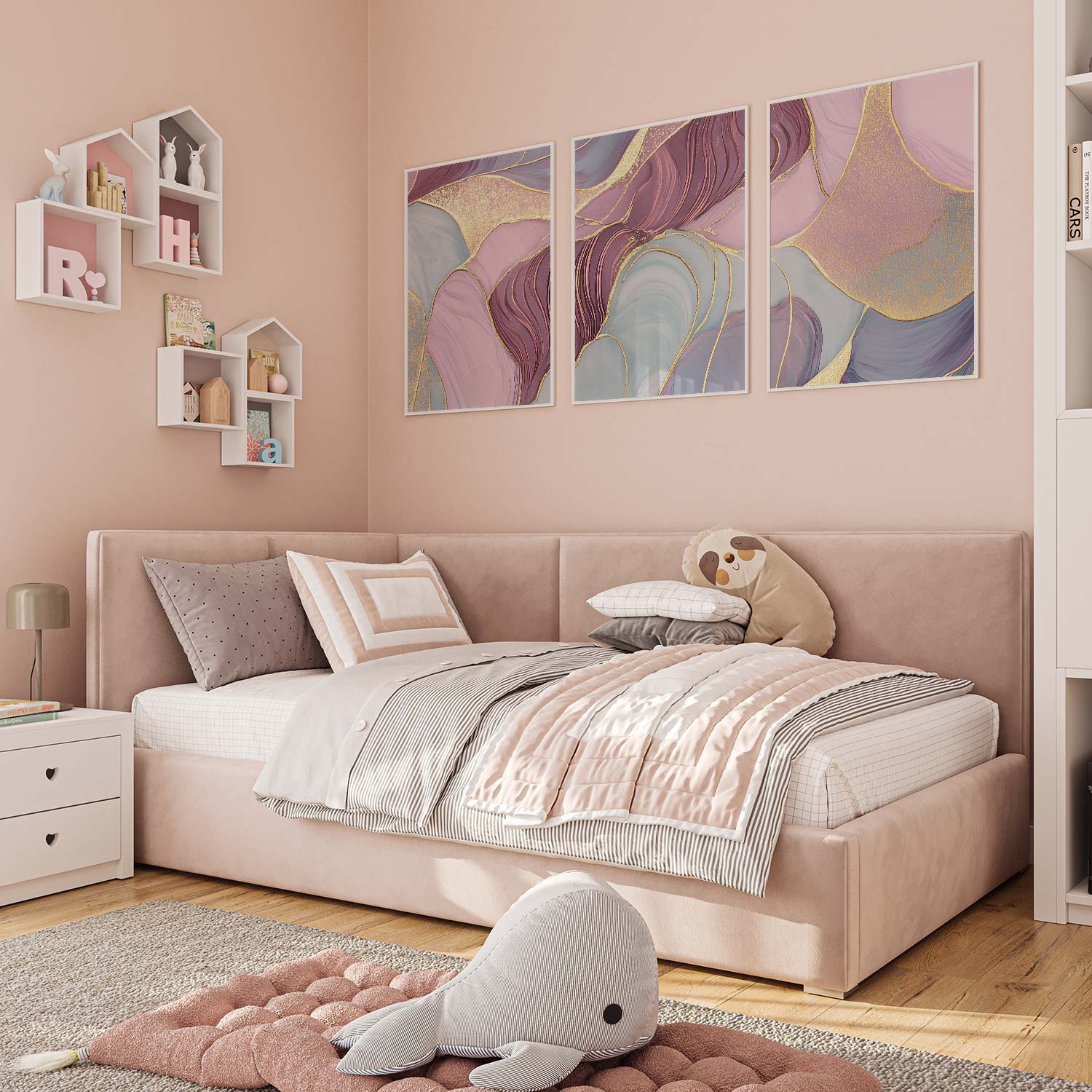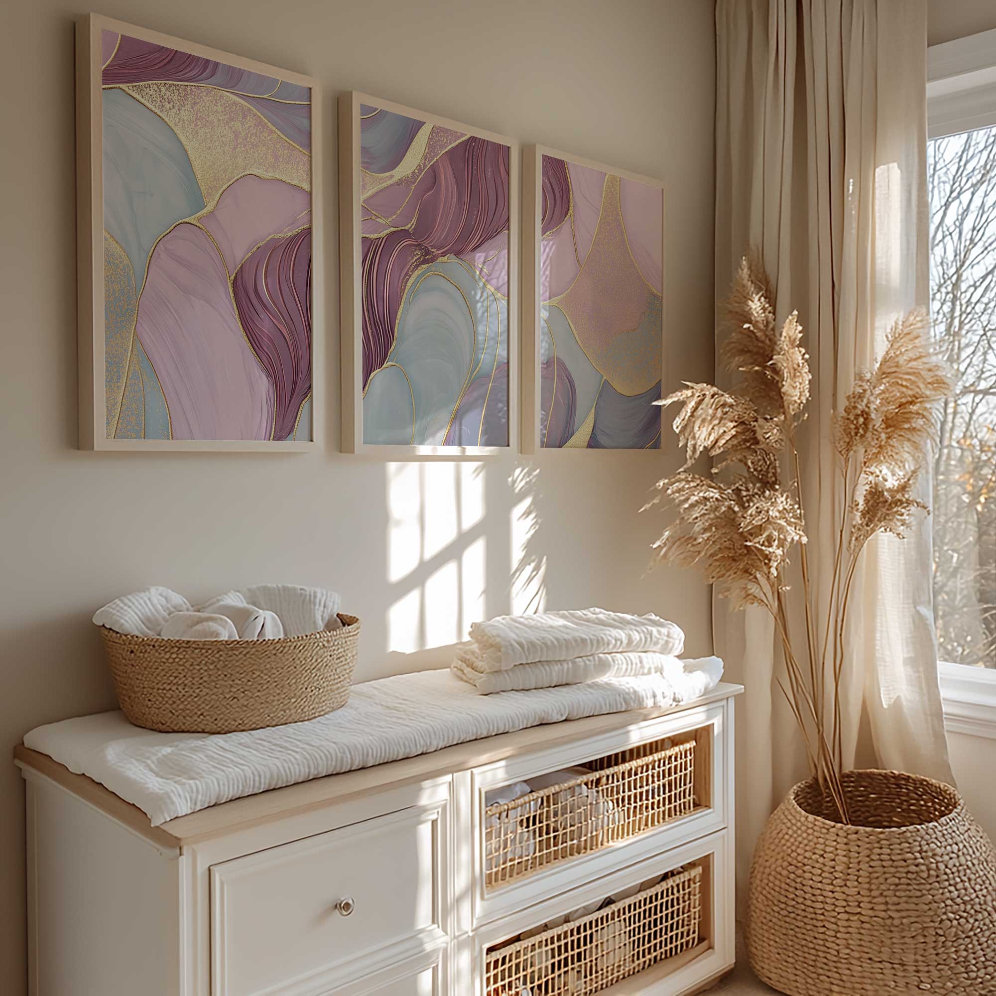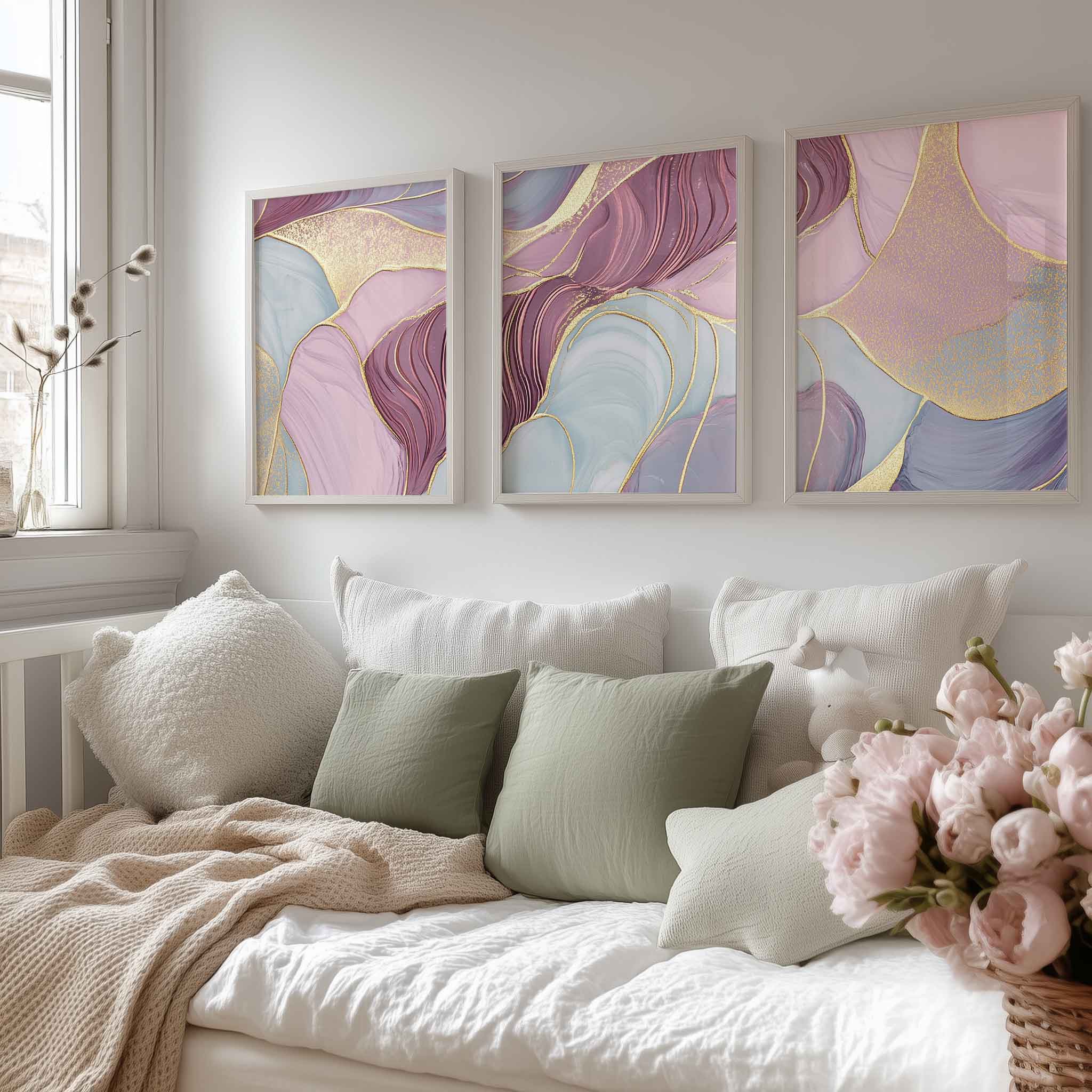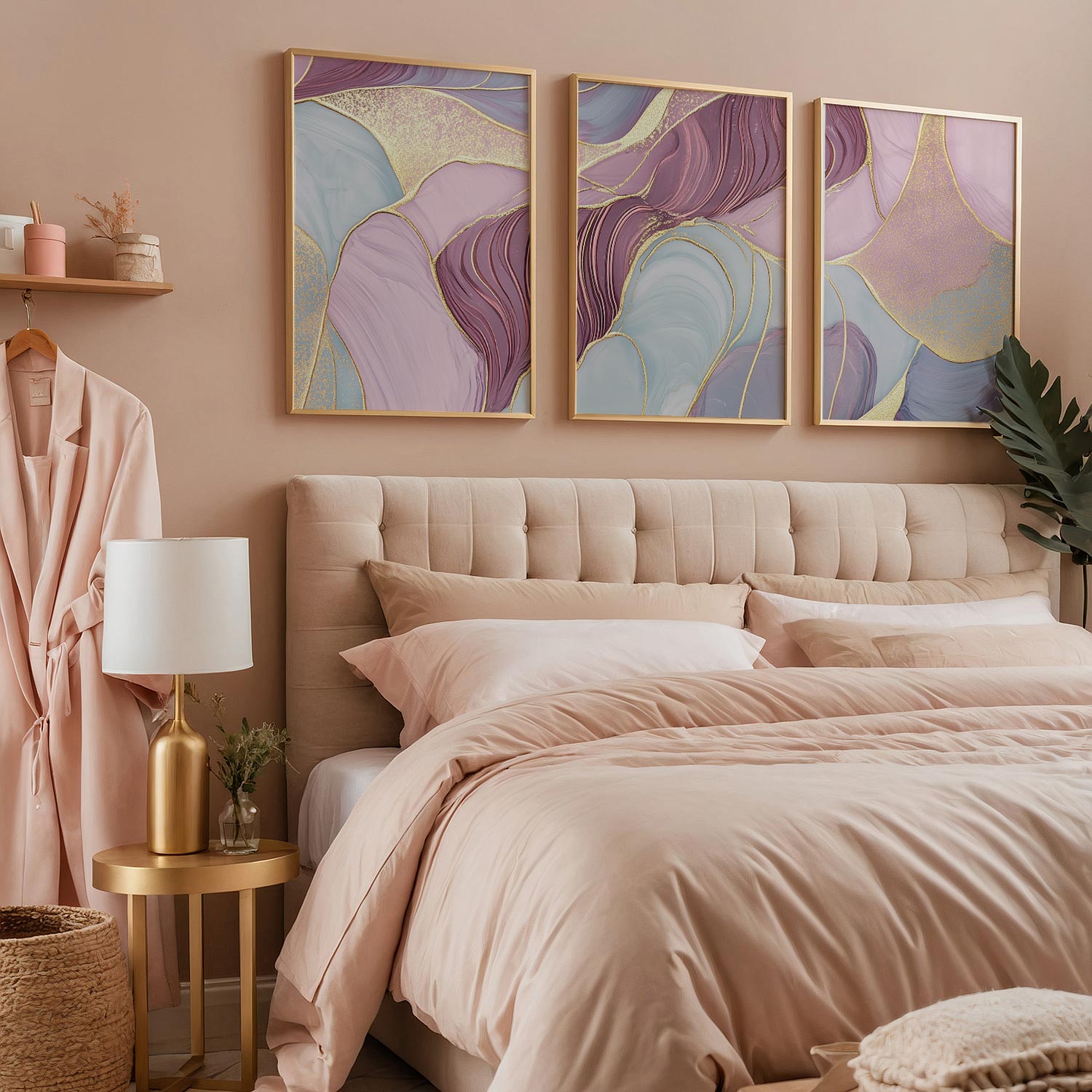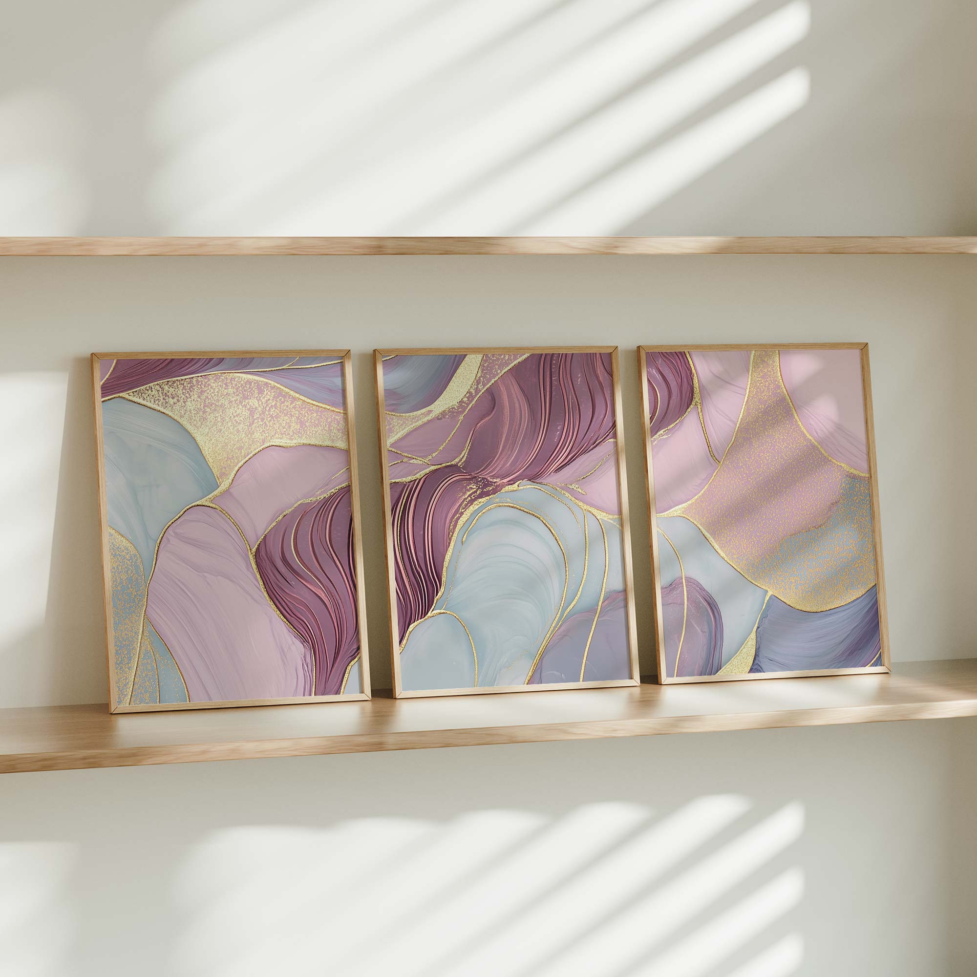 Magisch Abstract: Roze, Blauw & Paars met Gouden Elegantie