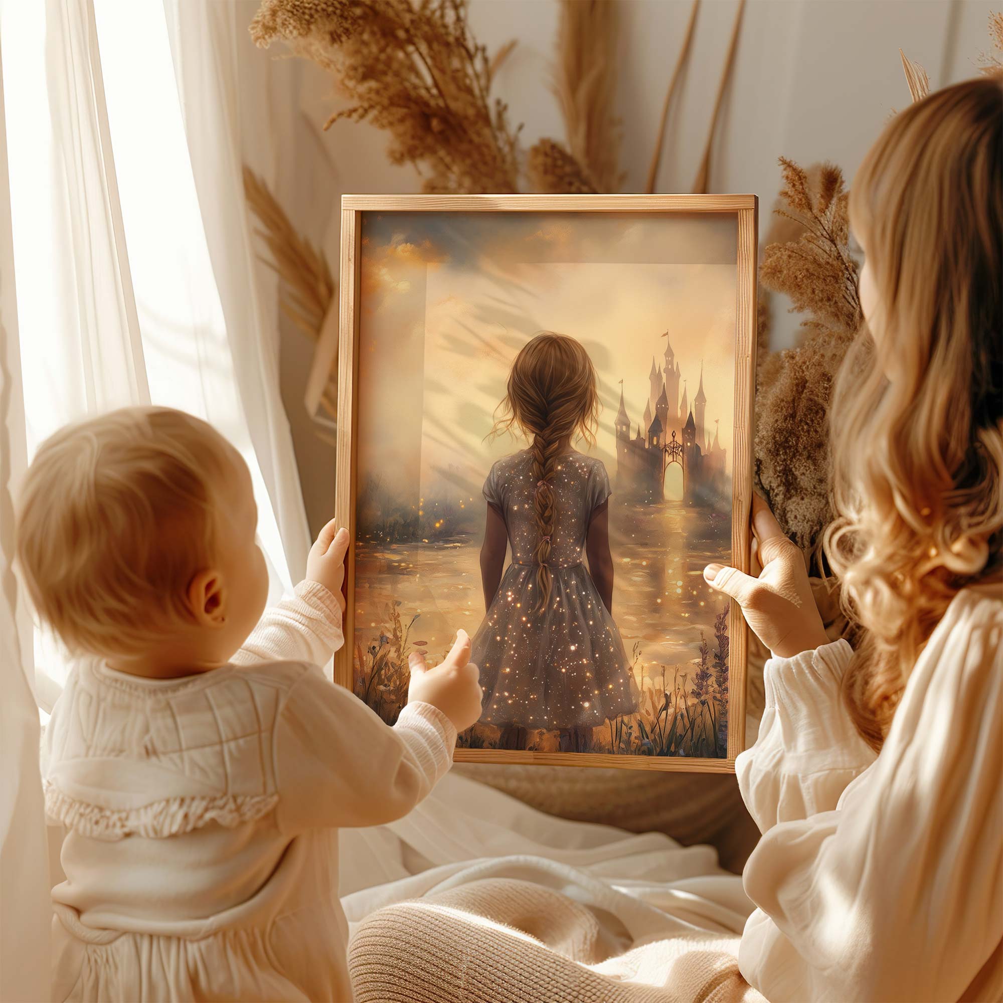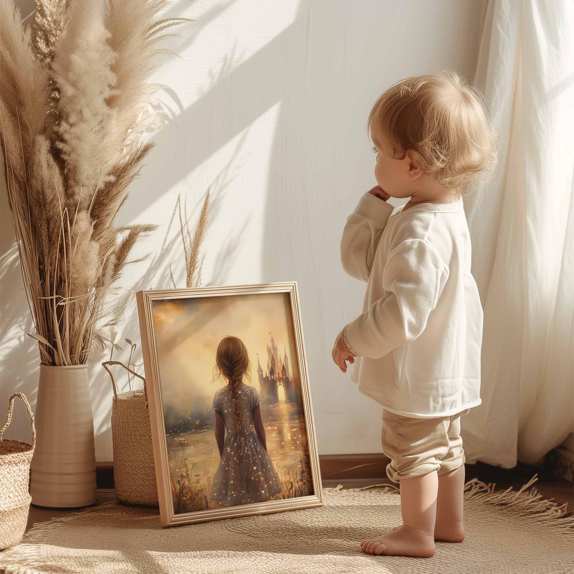 Terug naar collectie Posters Magisch Kasteel en Dromerig Meisje in Pastel