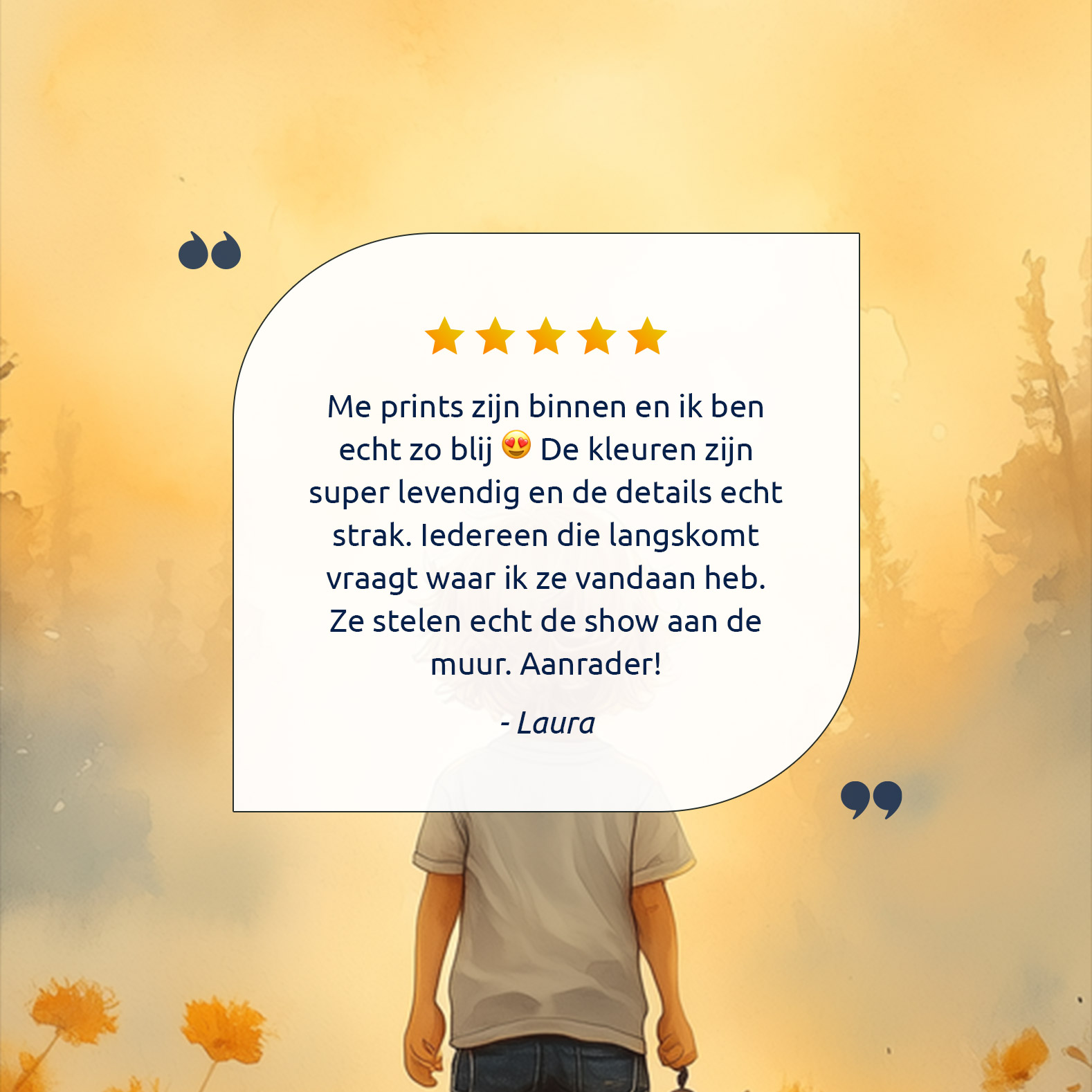 Bijvoorbeeld een vraag over (alternatieve) formaten, over zwart-wit mogelijkheden of over bestellen.