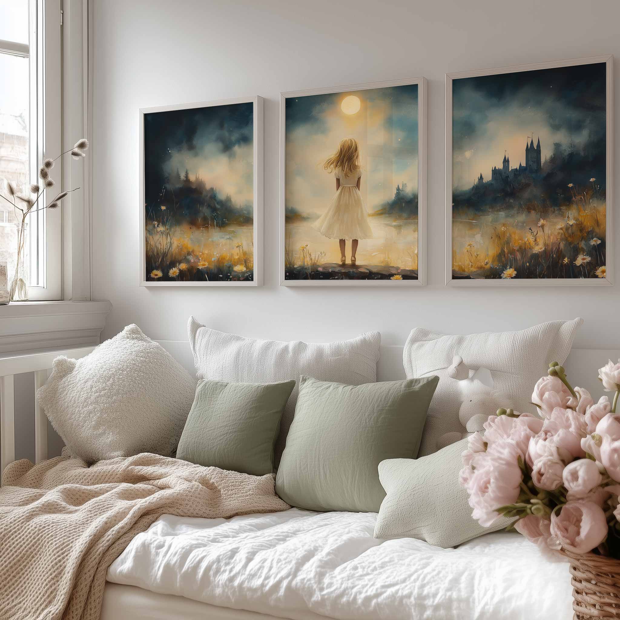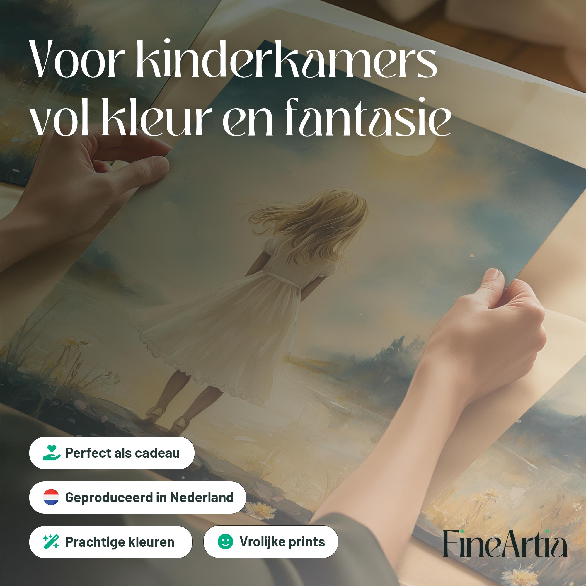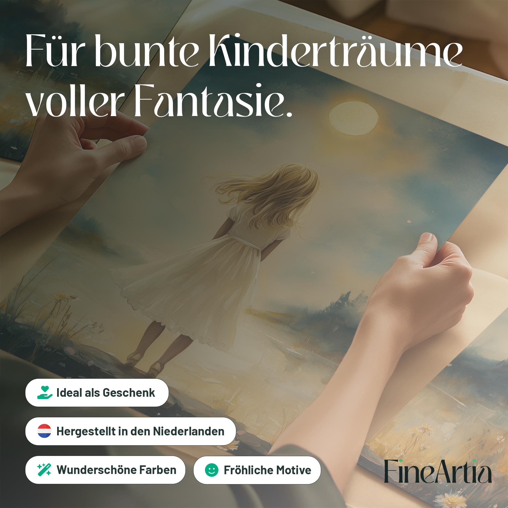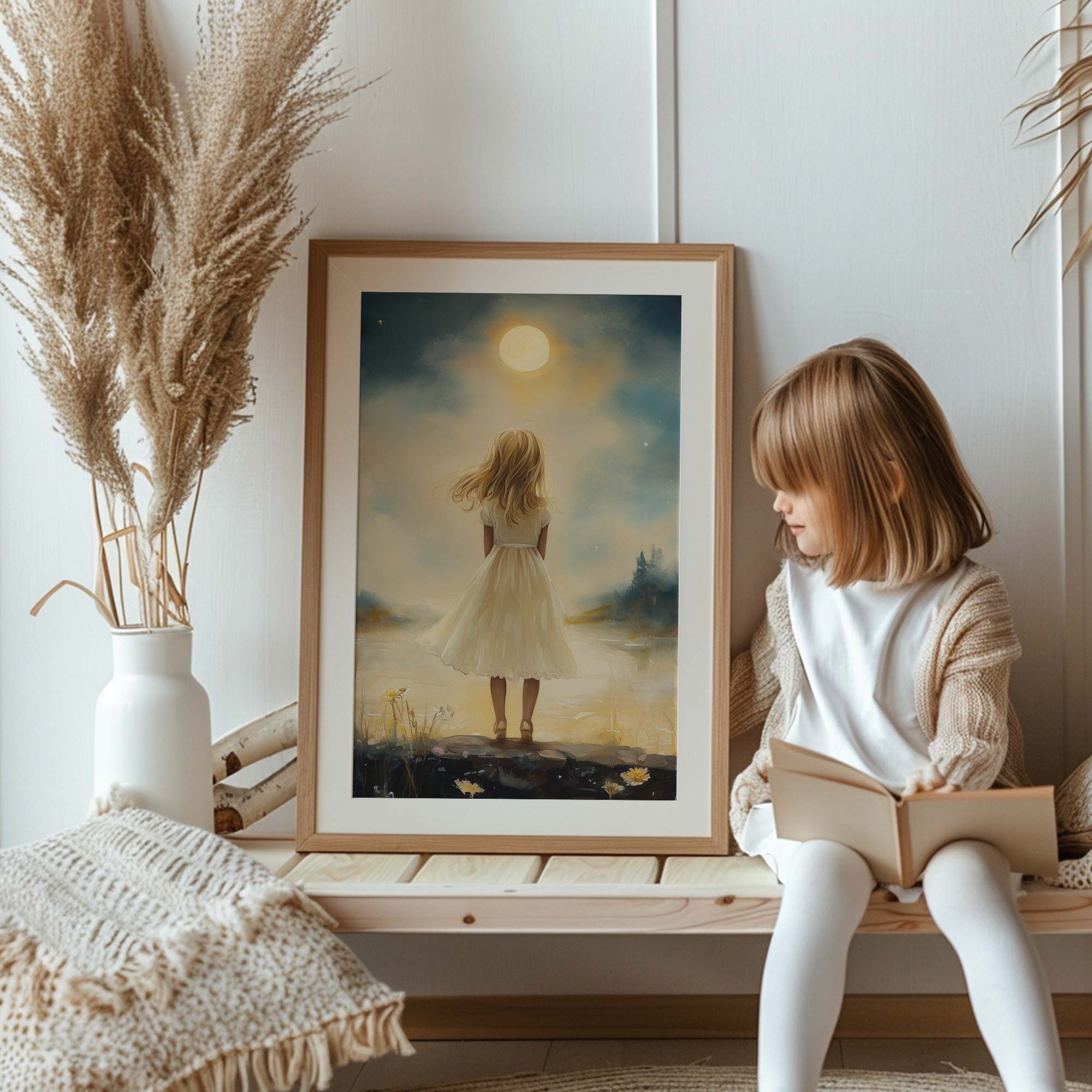 Terug naar collectie Posters Magisch Maanlicht: Meisje in Bloemenveld bij Kasteel