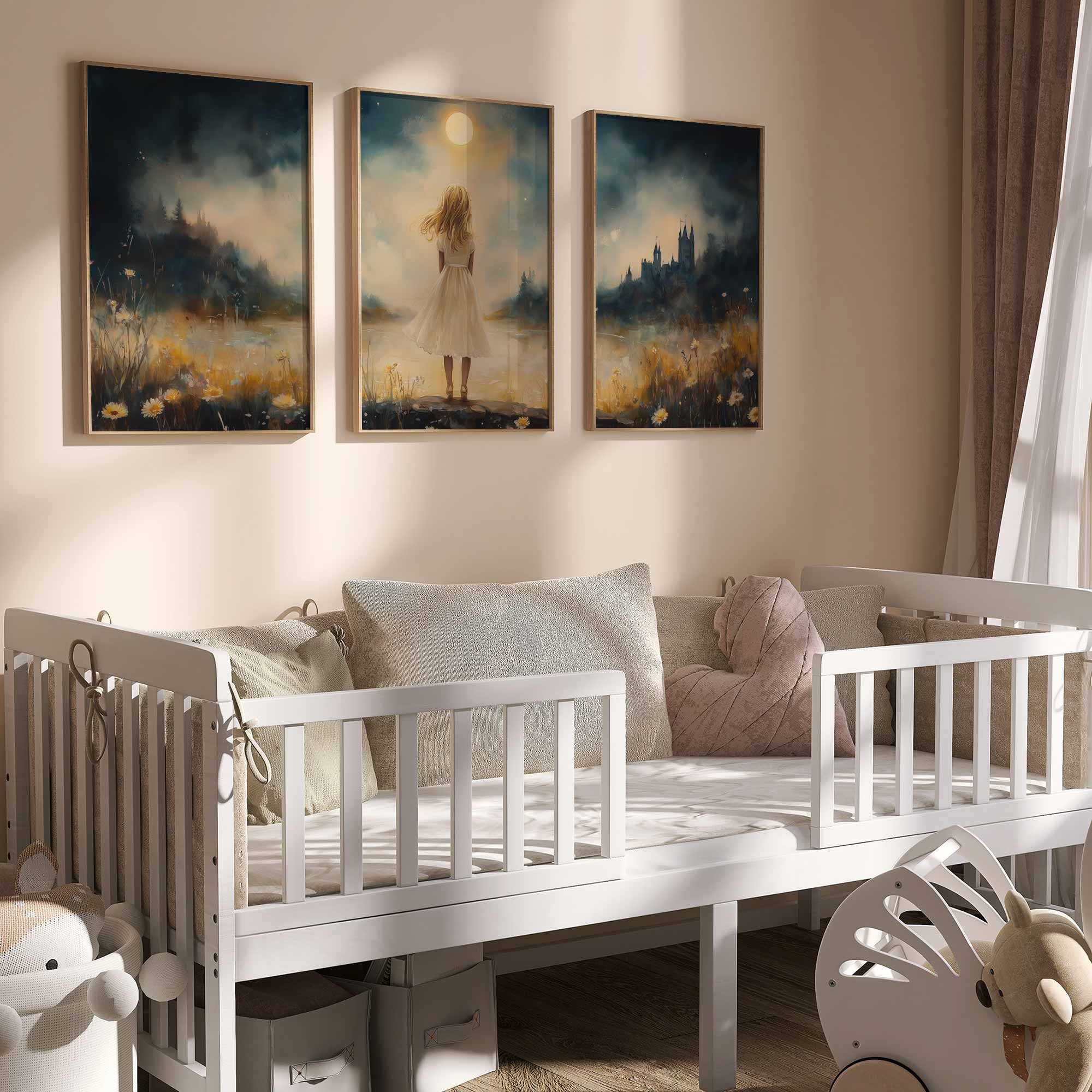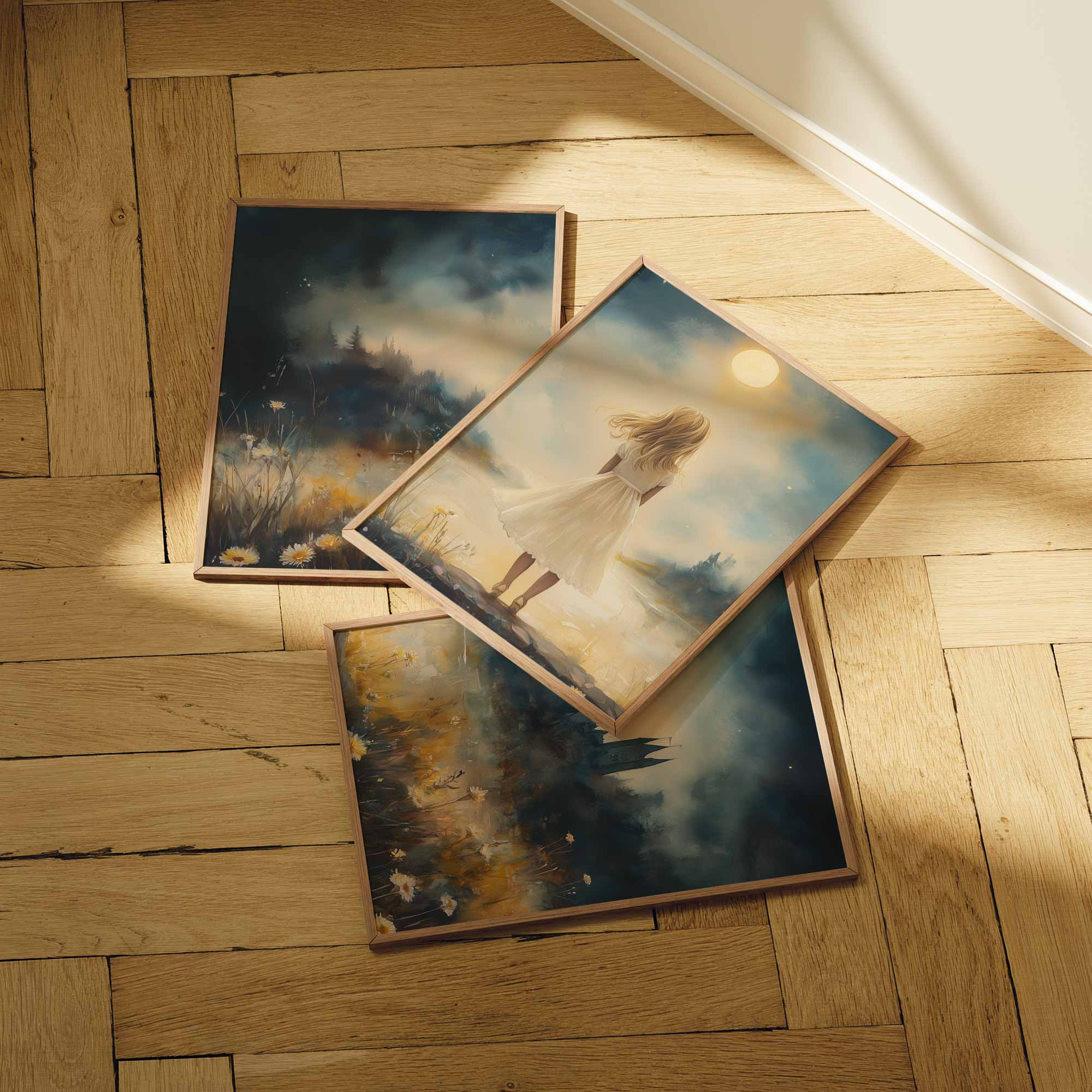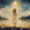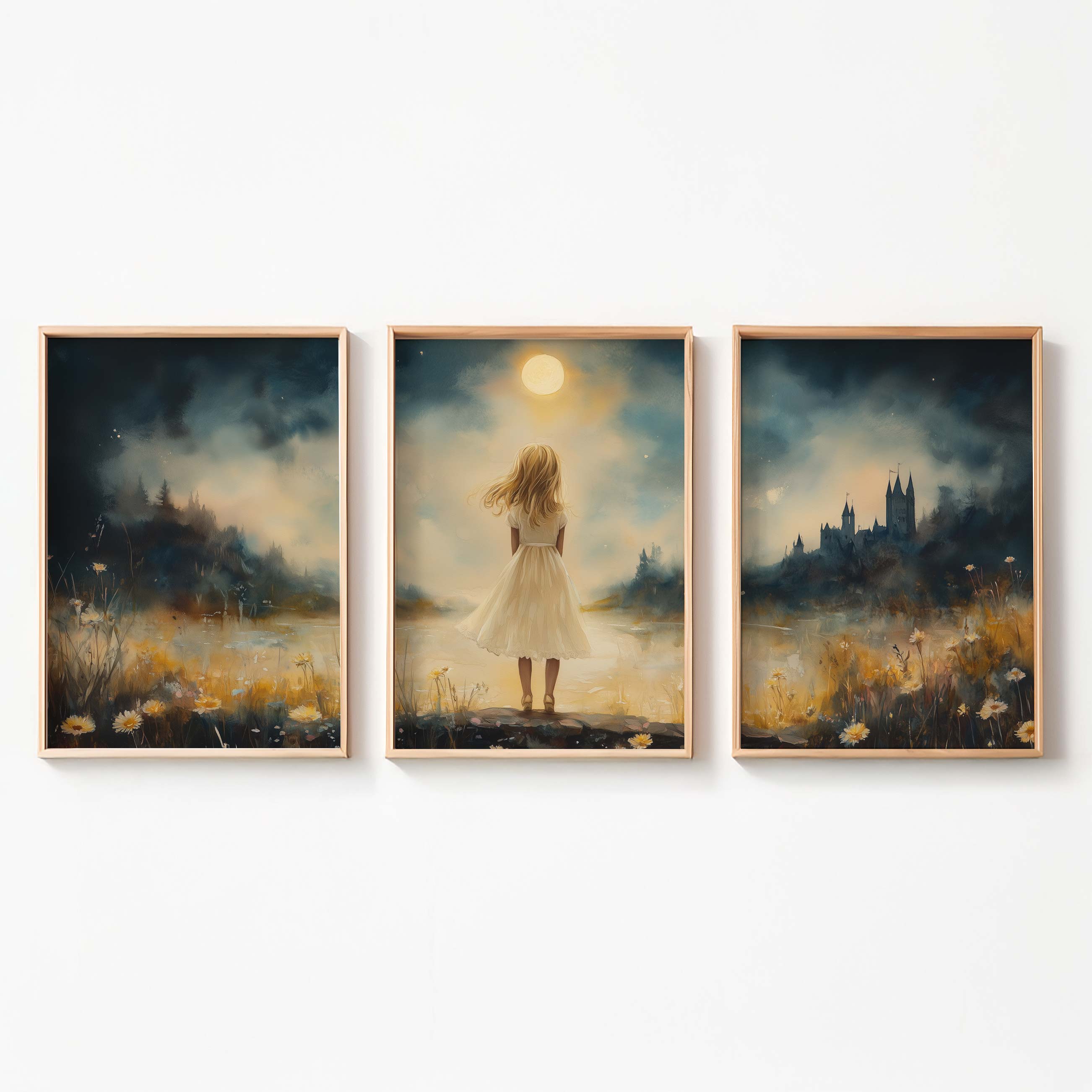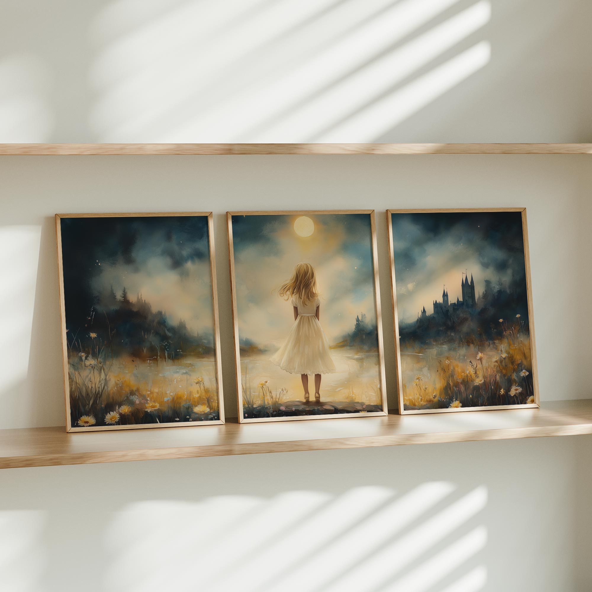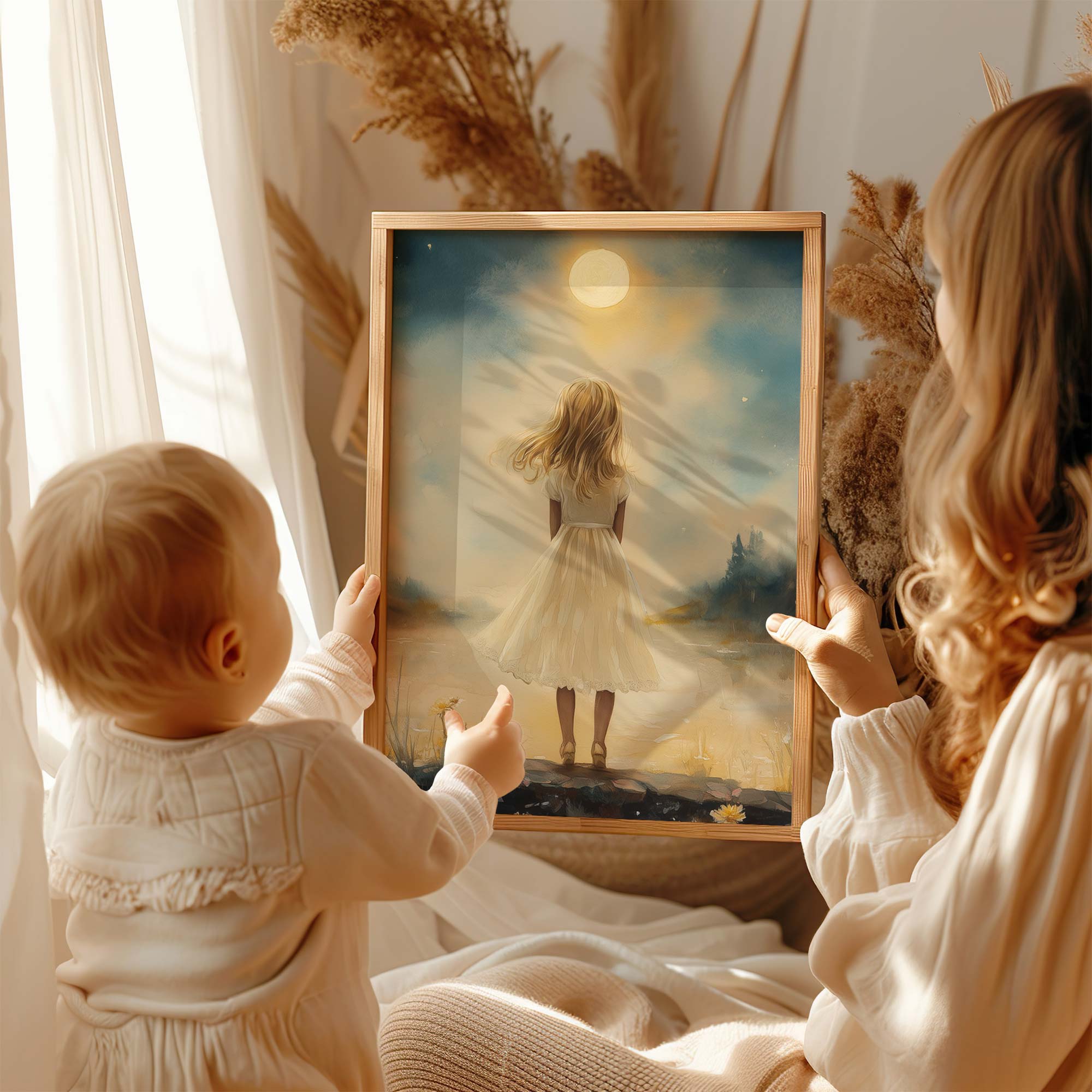 Terug naar collectie Posters Magisch Maanlicht: Meisje in Bloemenveld bij Kasteel