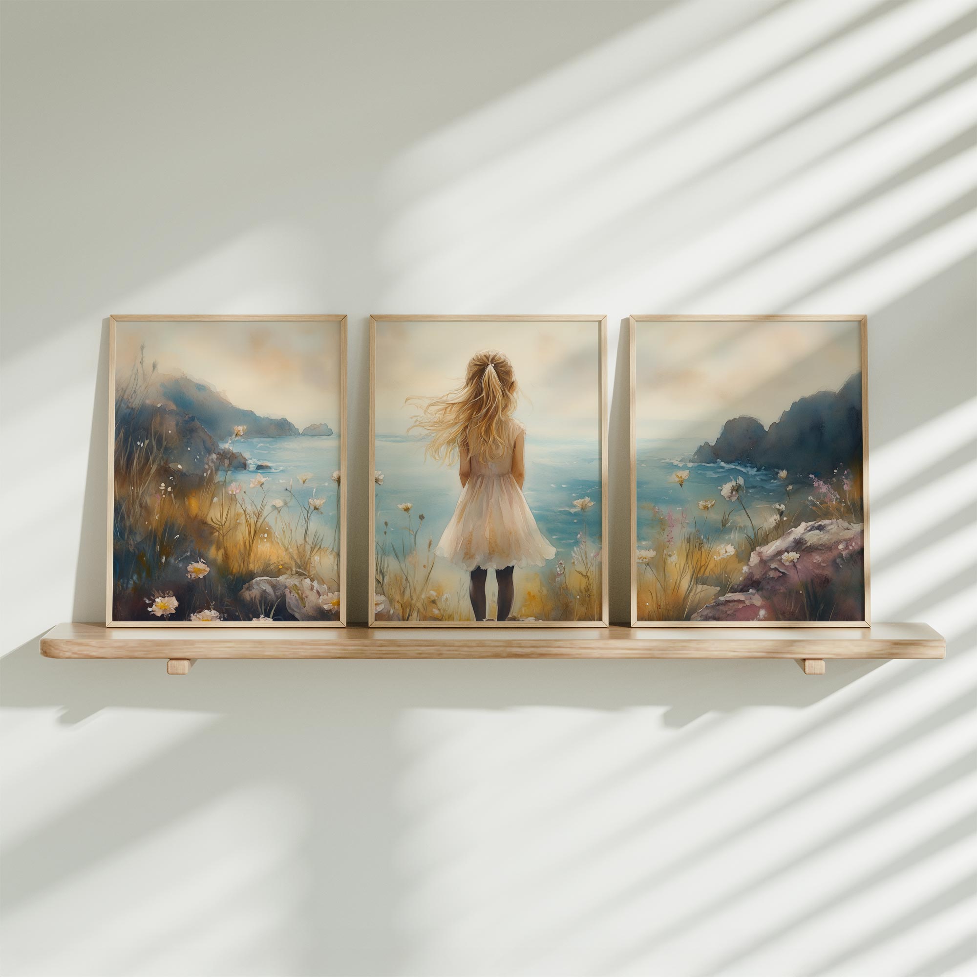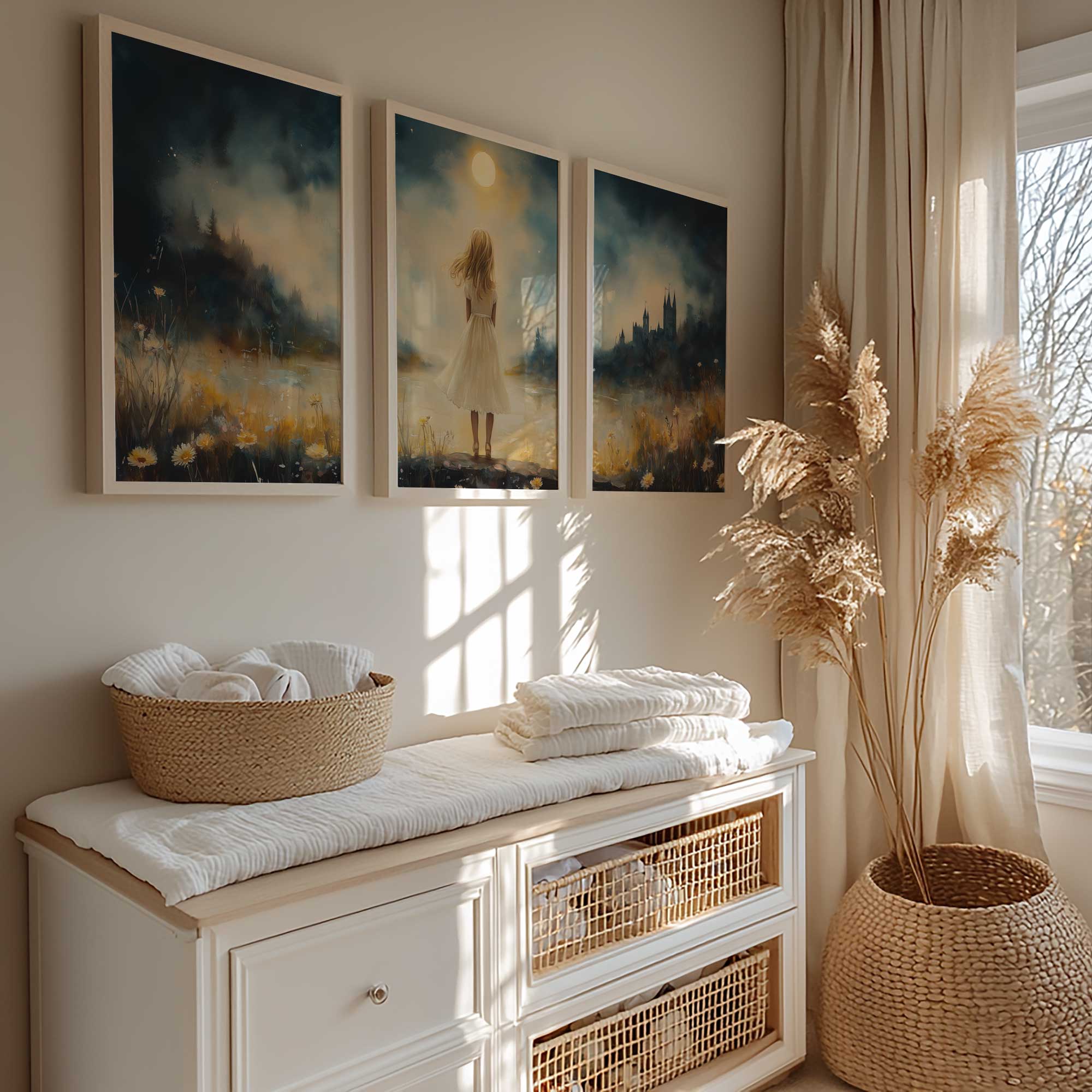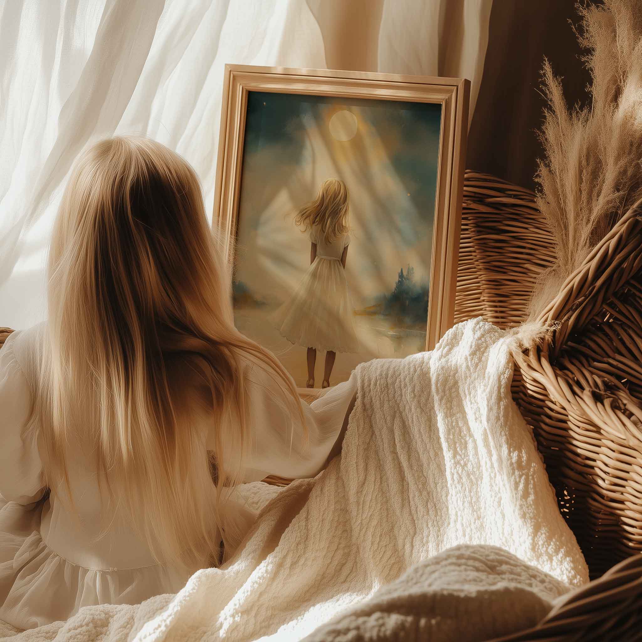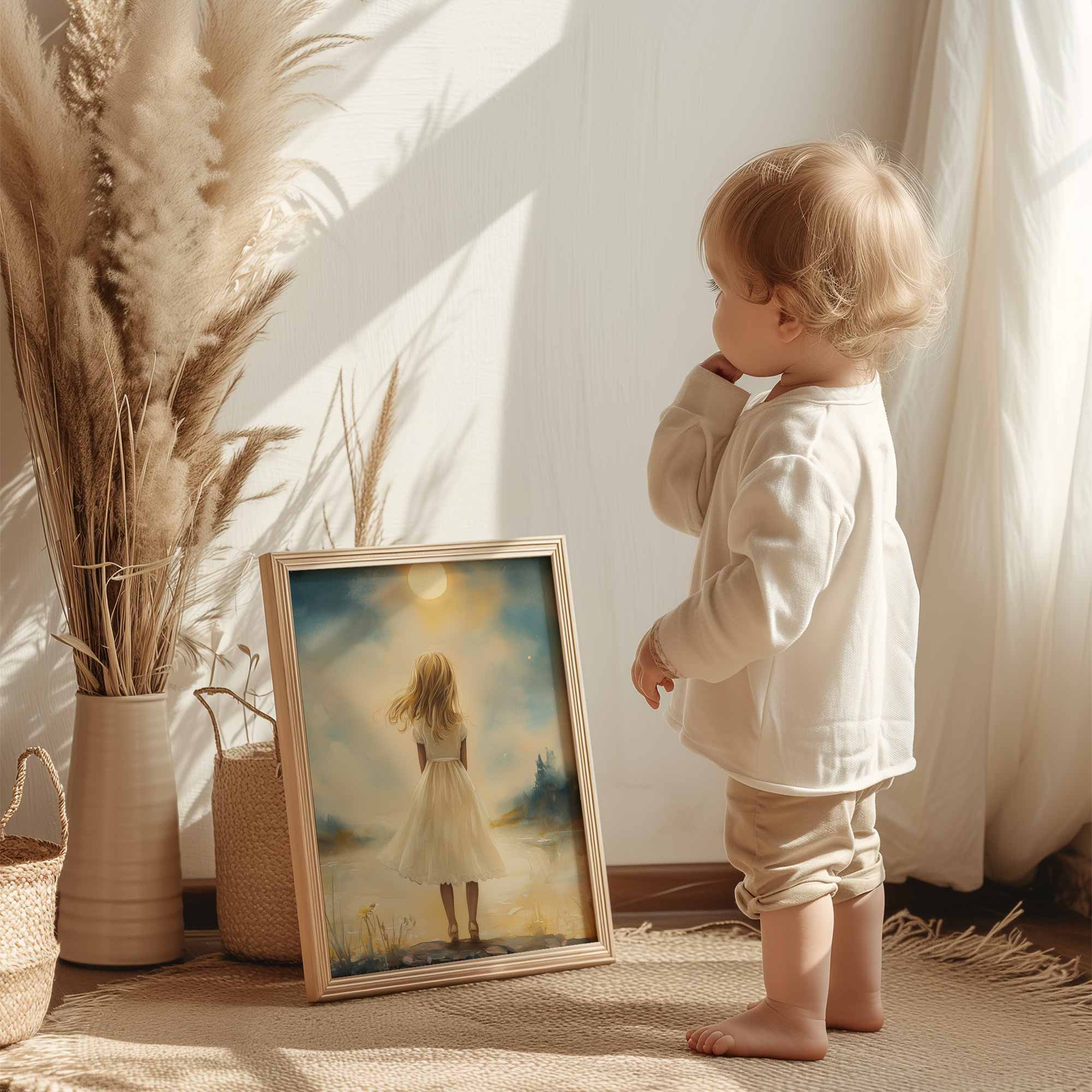 Terug naar collectie Posters Magisch Maanlicht: Meisje in Bloemenveld bij Kasteel