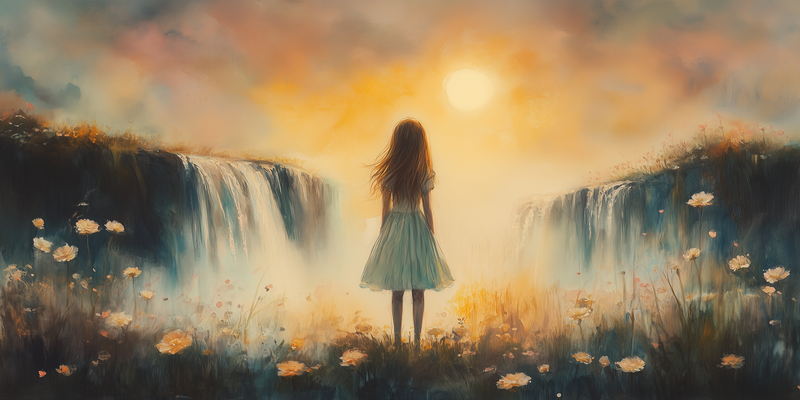 Magisch Meisje bij de Waterval – Dromerig Landschap
